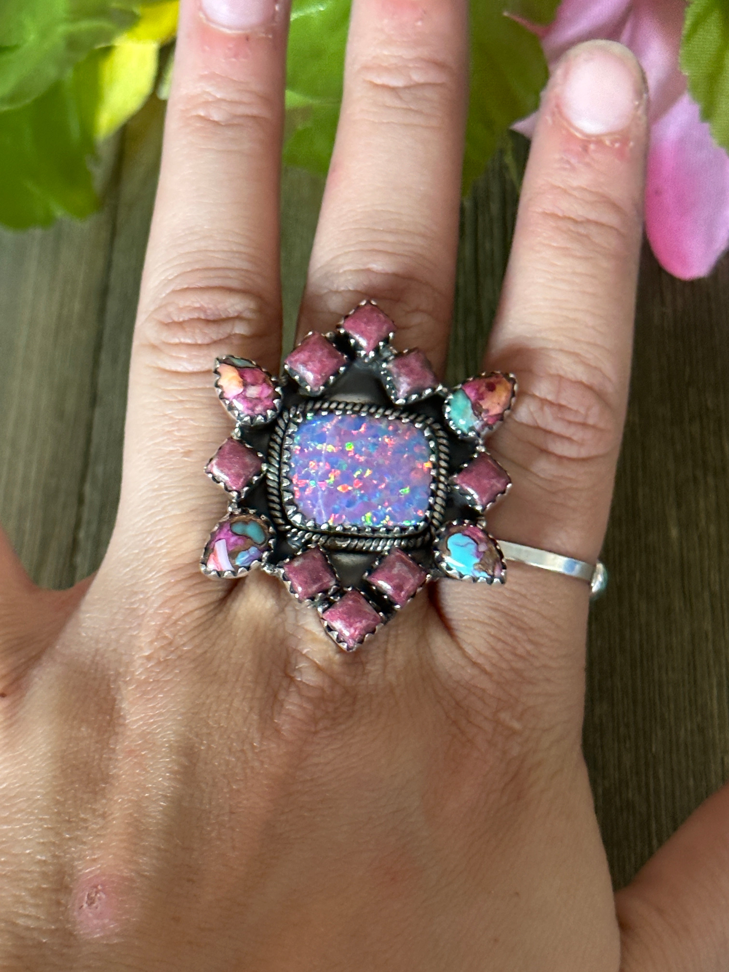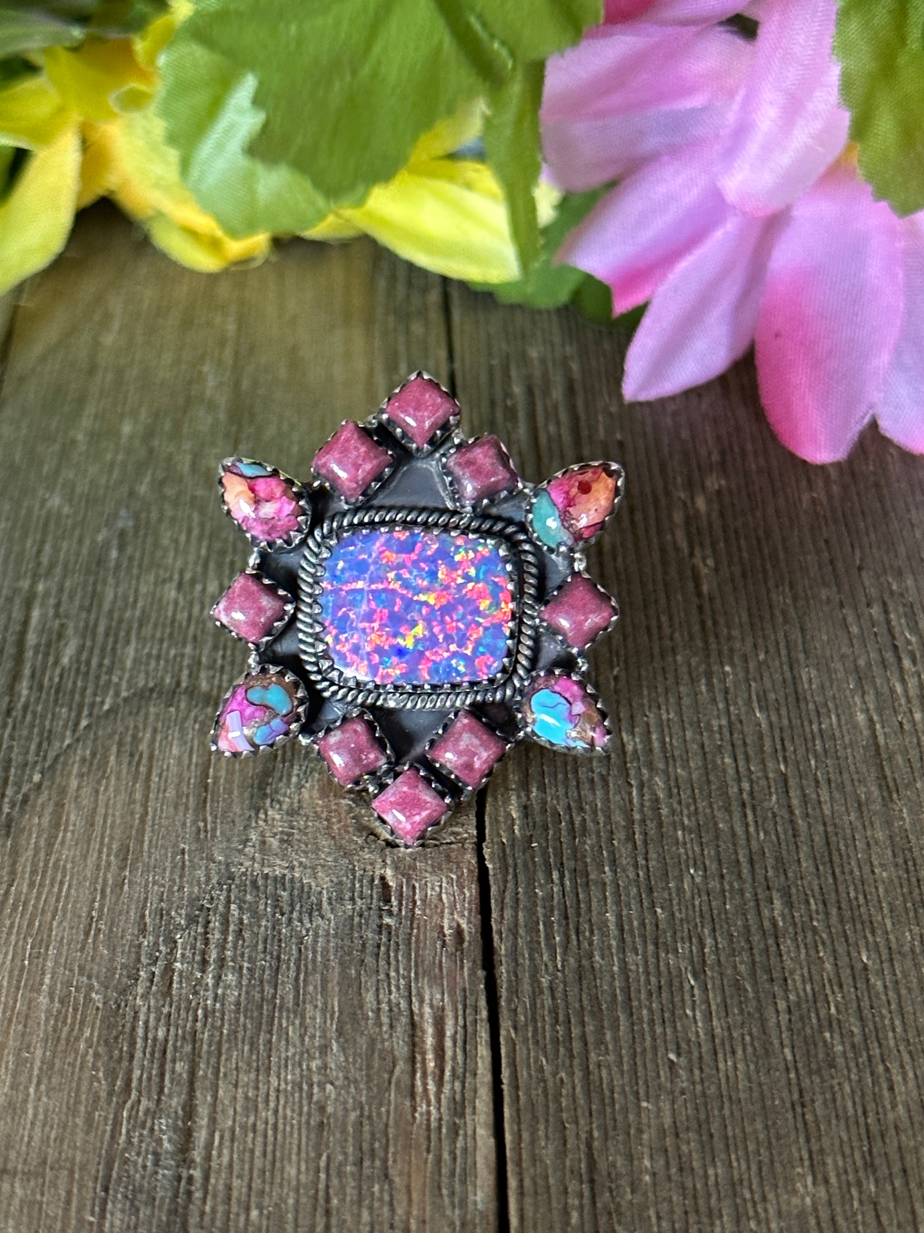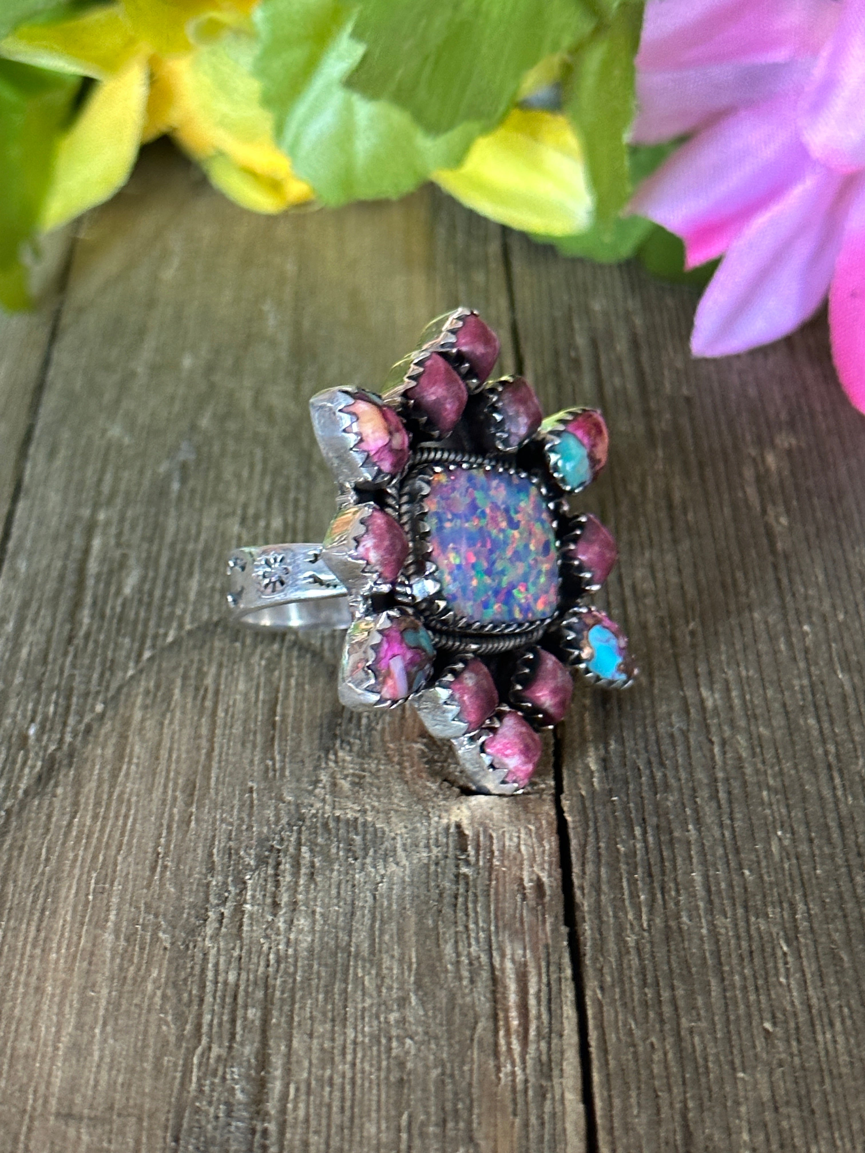 Southwest Handmade Multi Stone & Sterling Silver Adjustable Ring