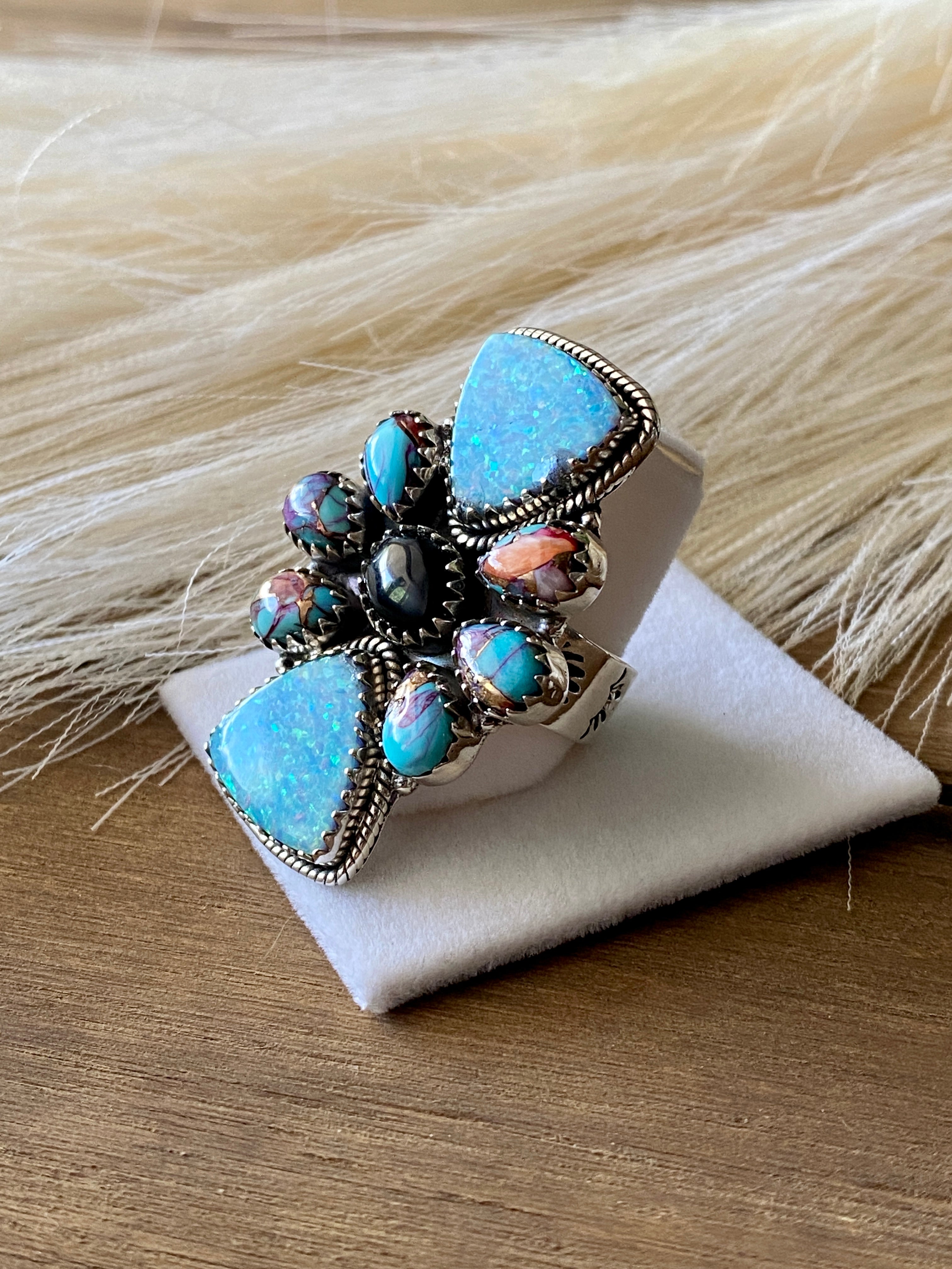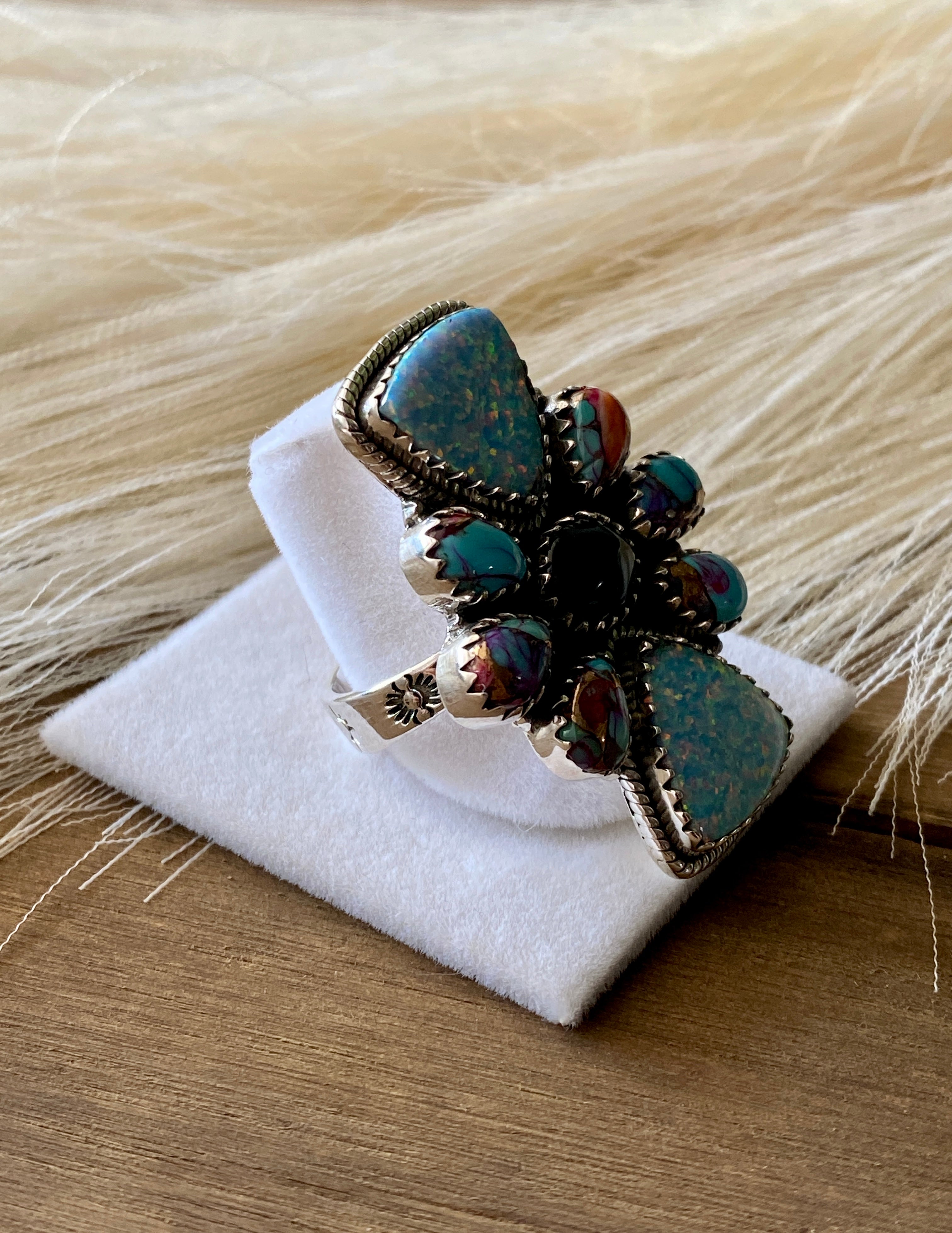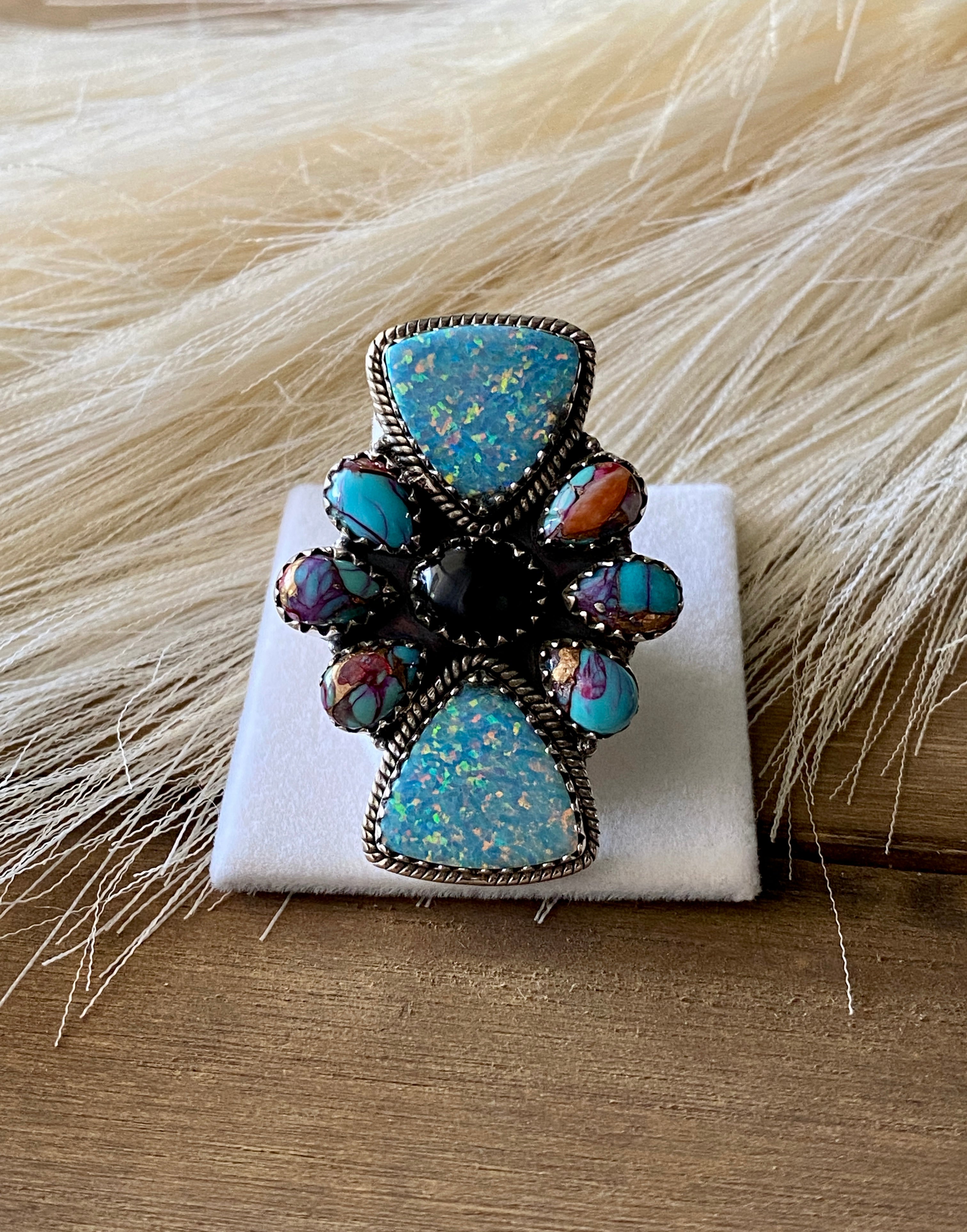 Southwest Handmade Multi Stone & Sterling Silver Adjustable Ring