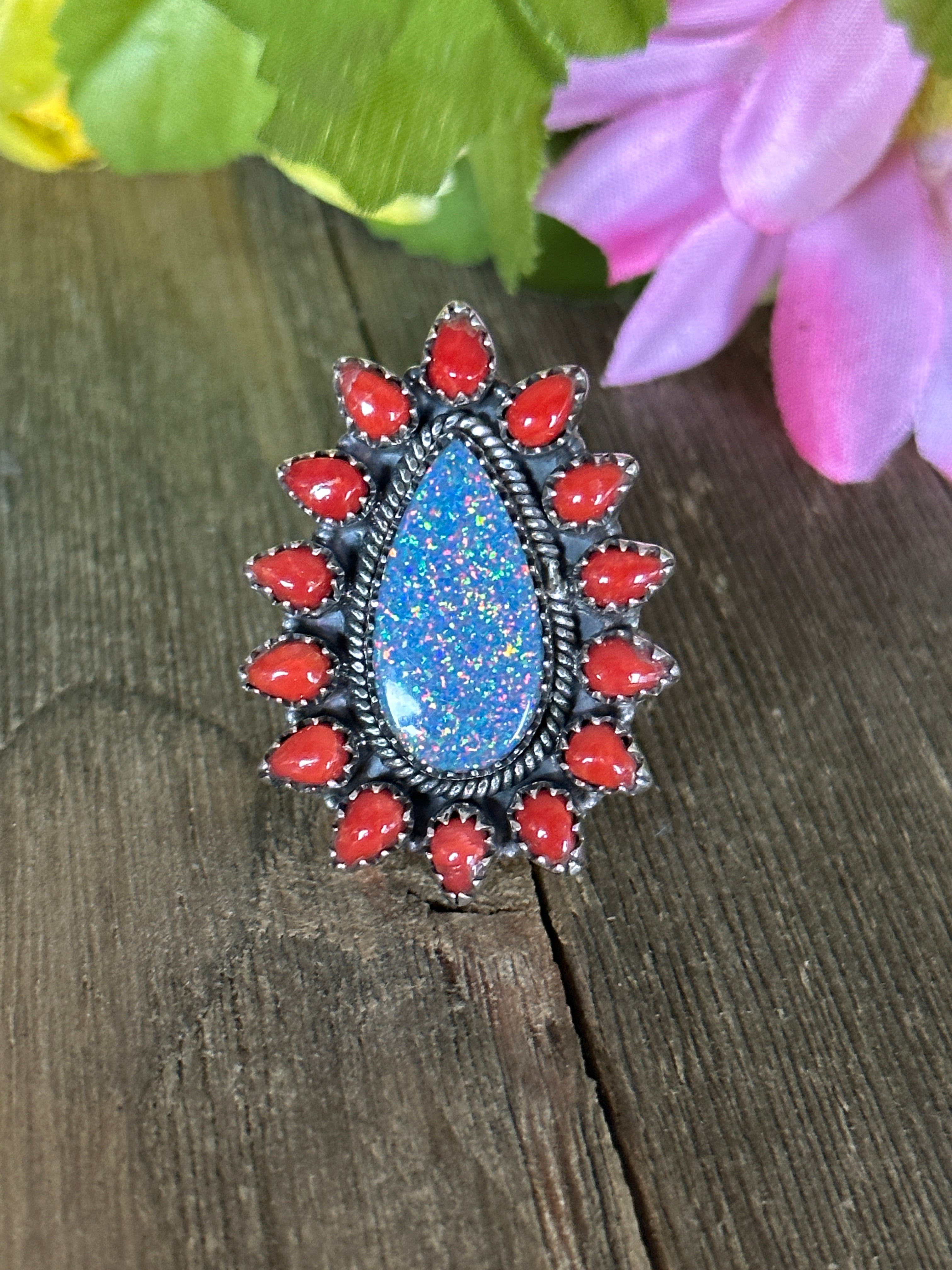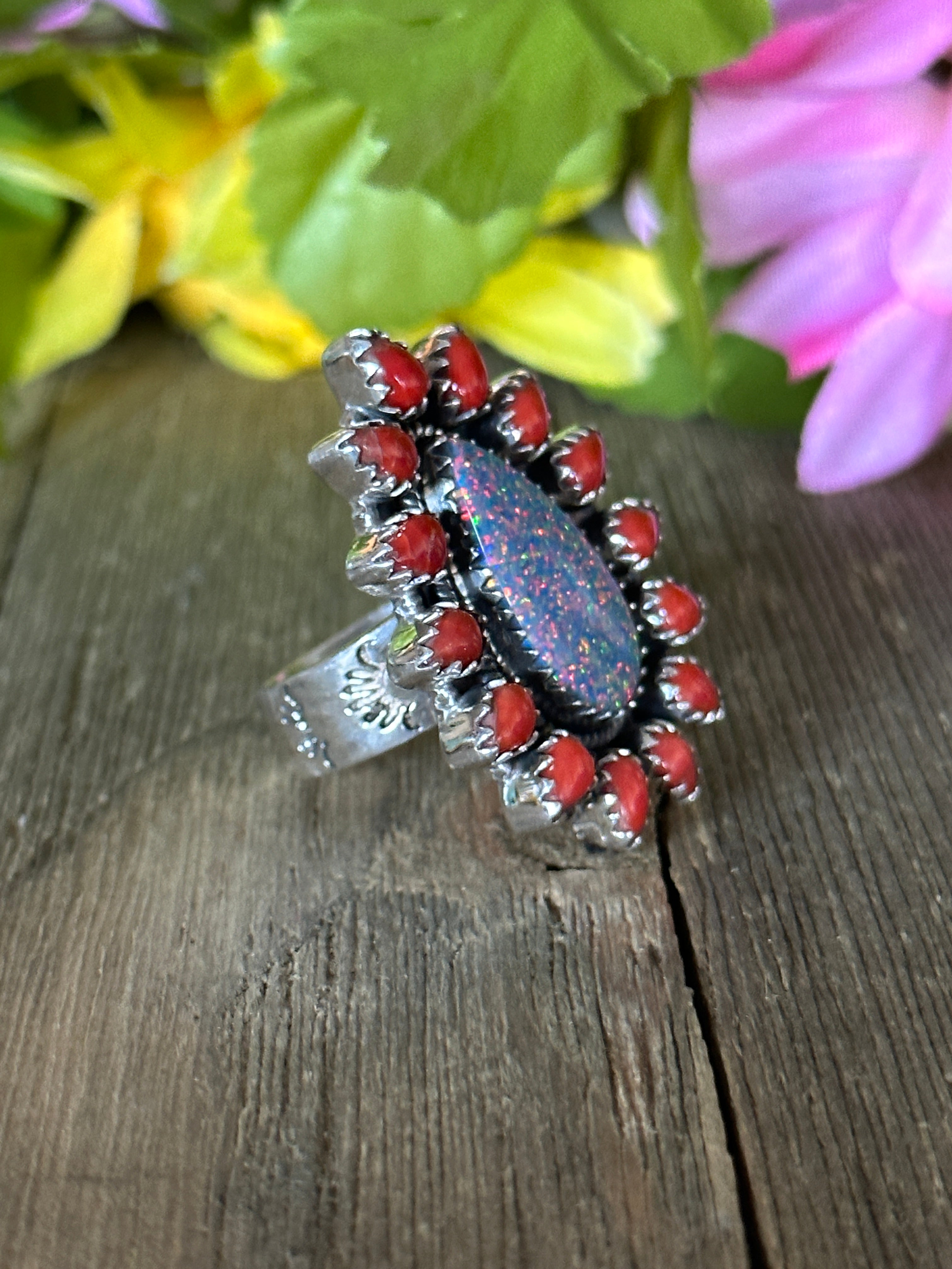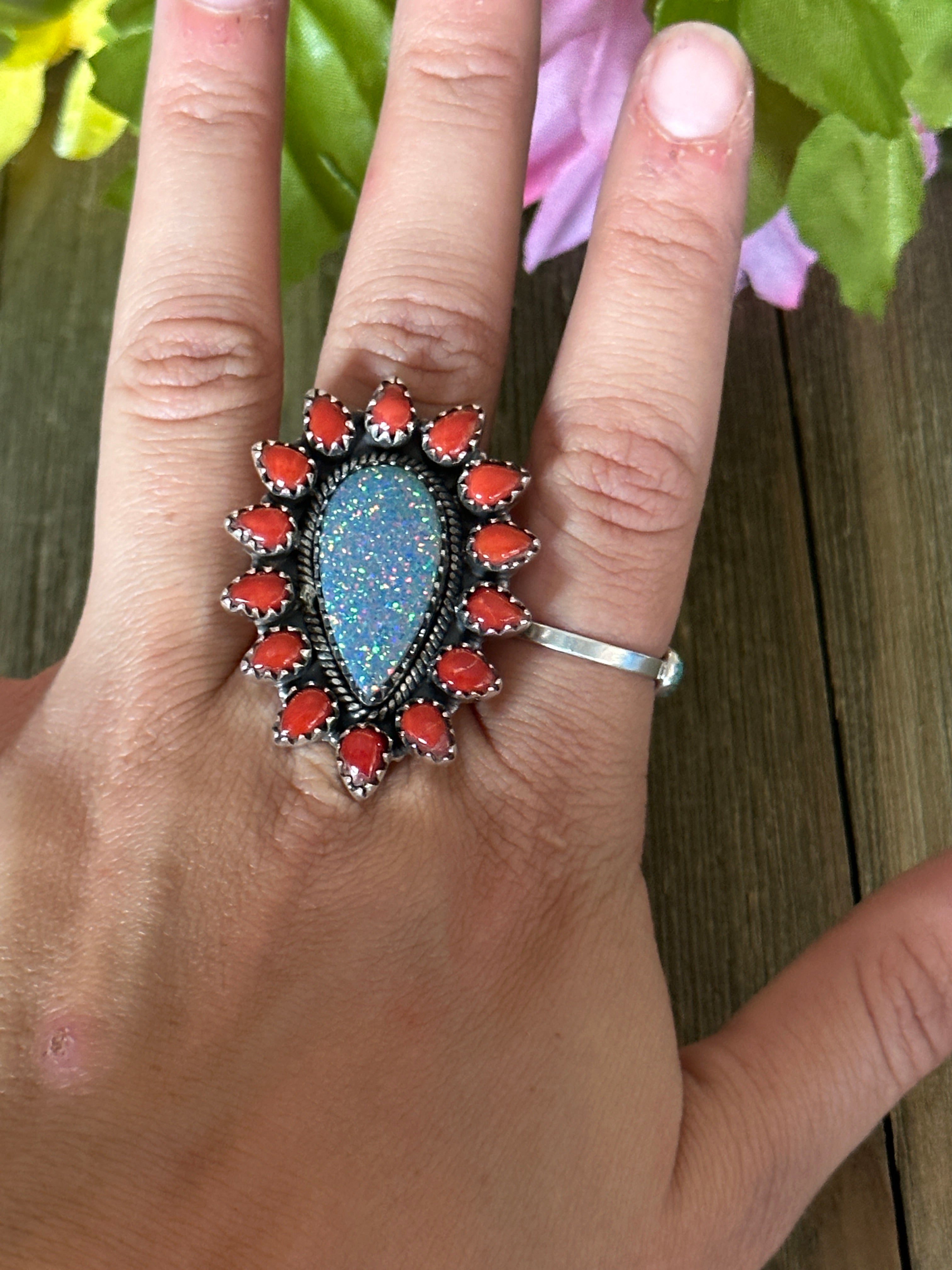 Southwest Handmade Multi Stone & Sterling Silver Adjustable Ring