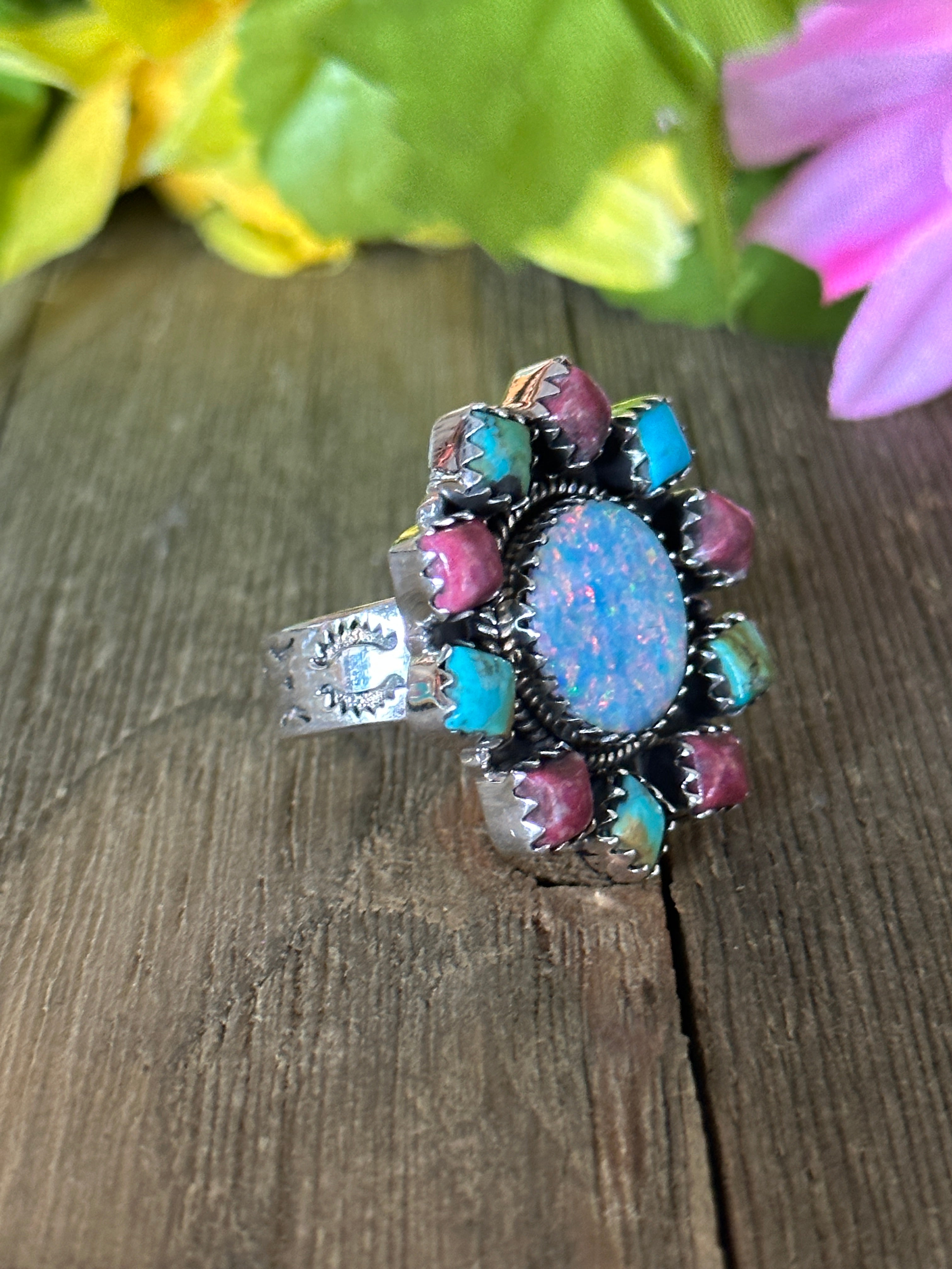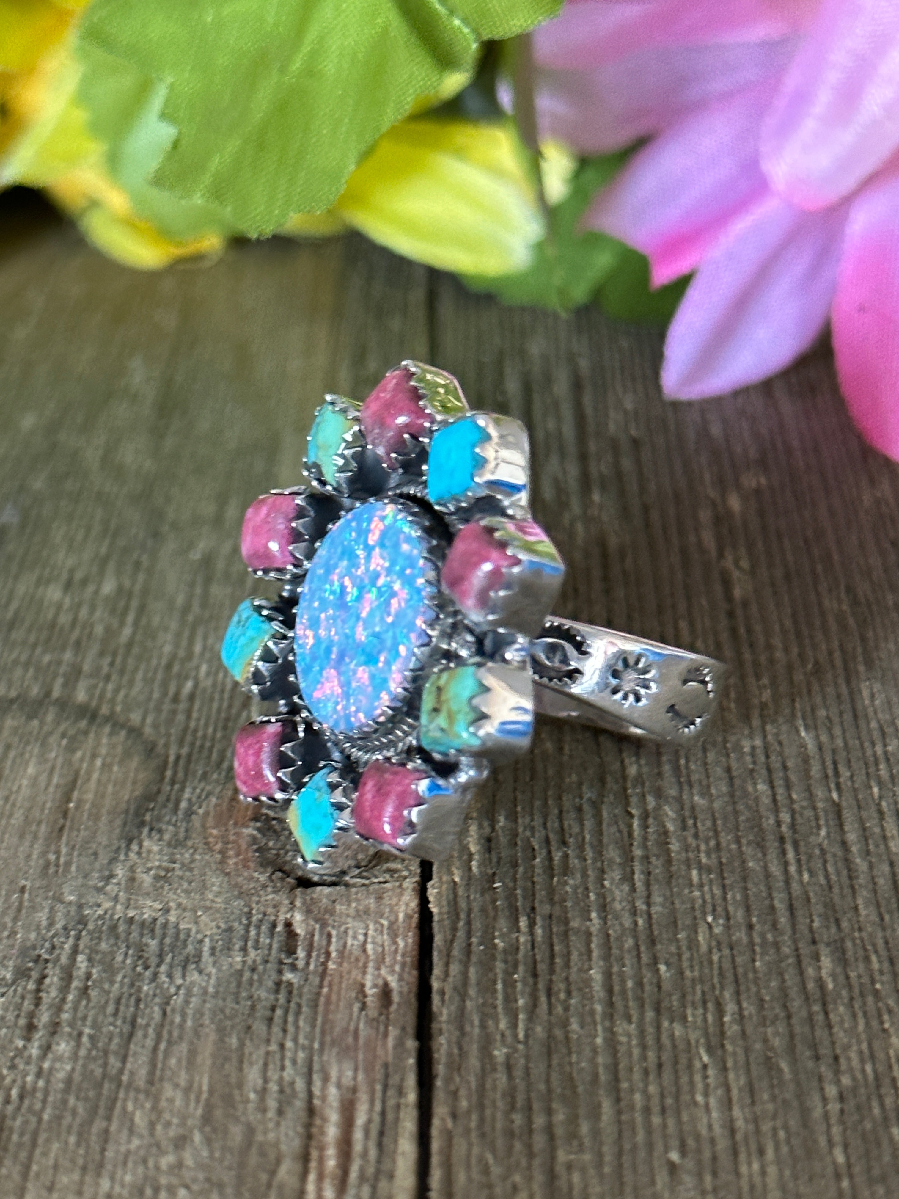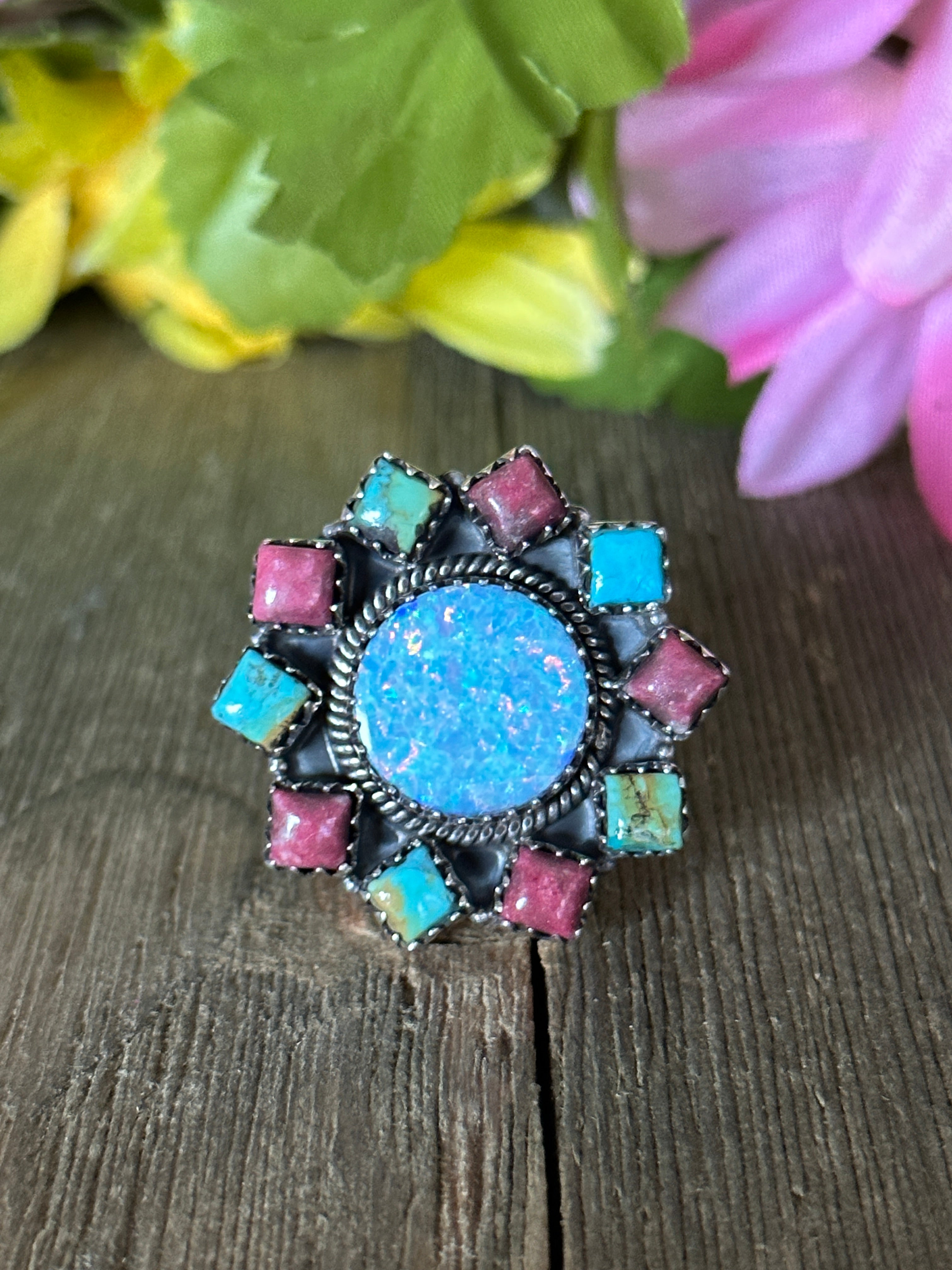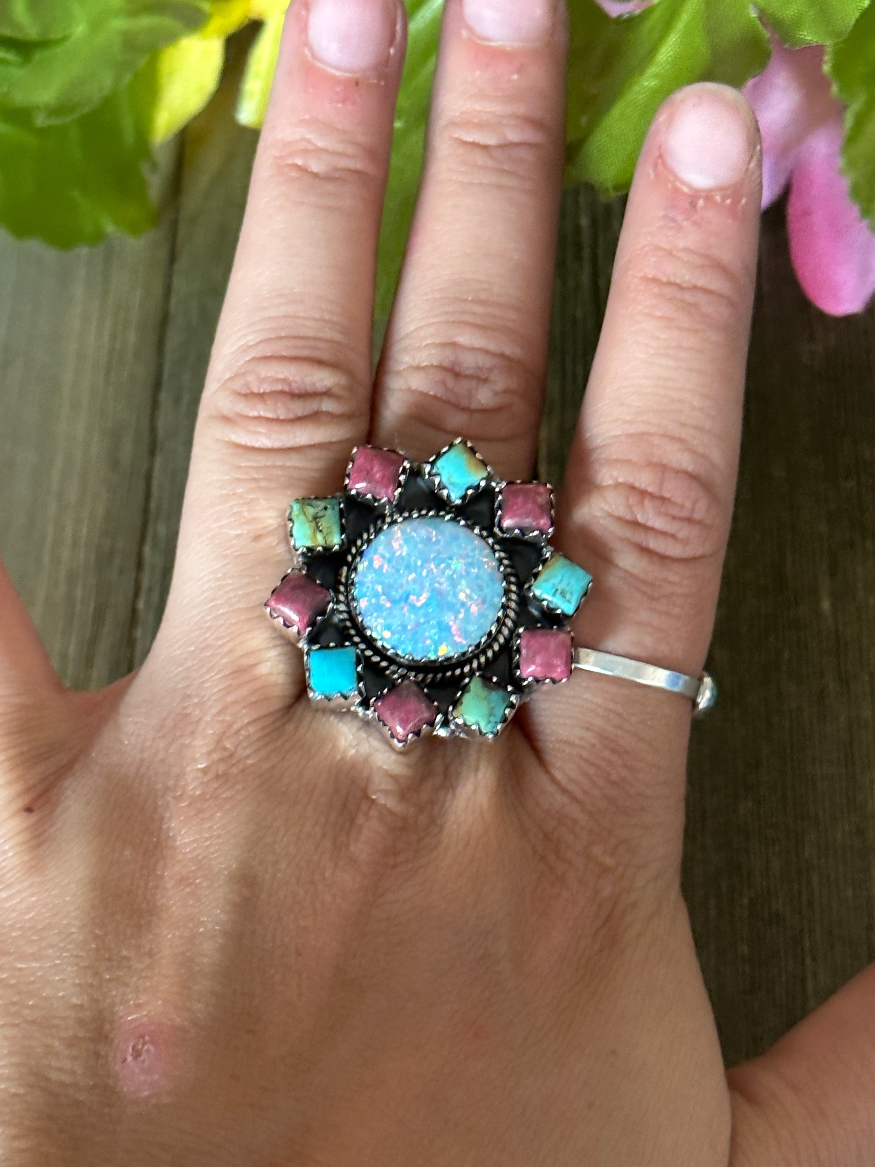 Southwest Handmade Multi Stone & Sterling Silver Adjustable Ring