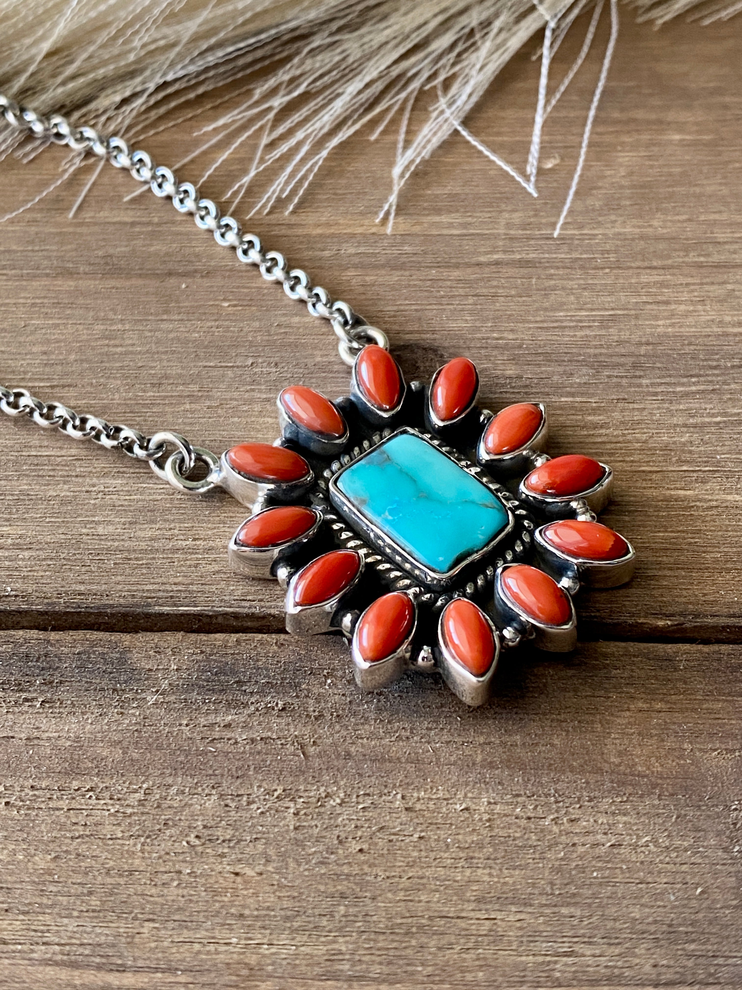 Southwest Handmade Multi Stone & Sterling Silver Cluster Necklace