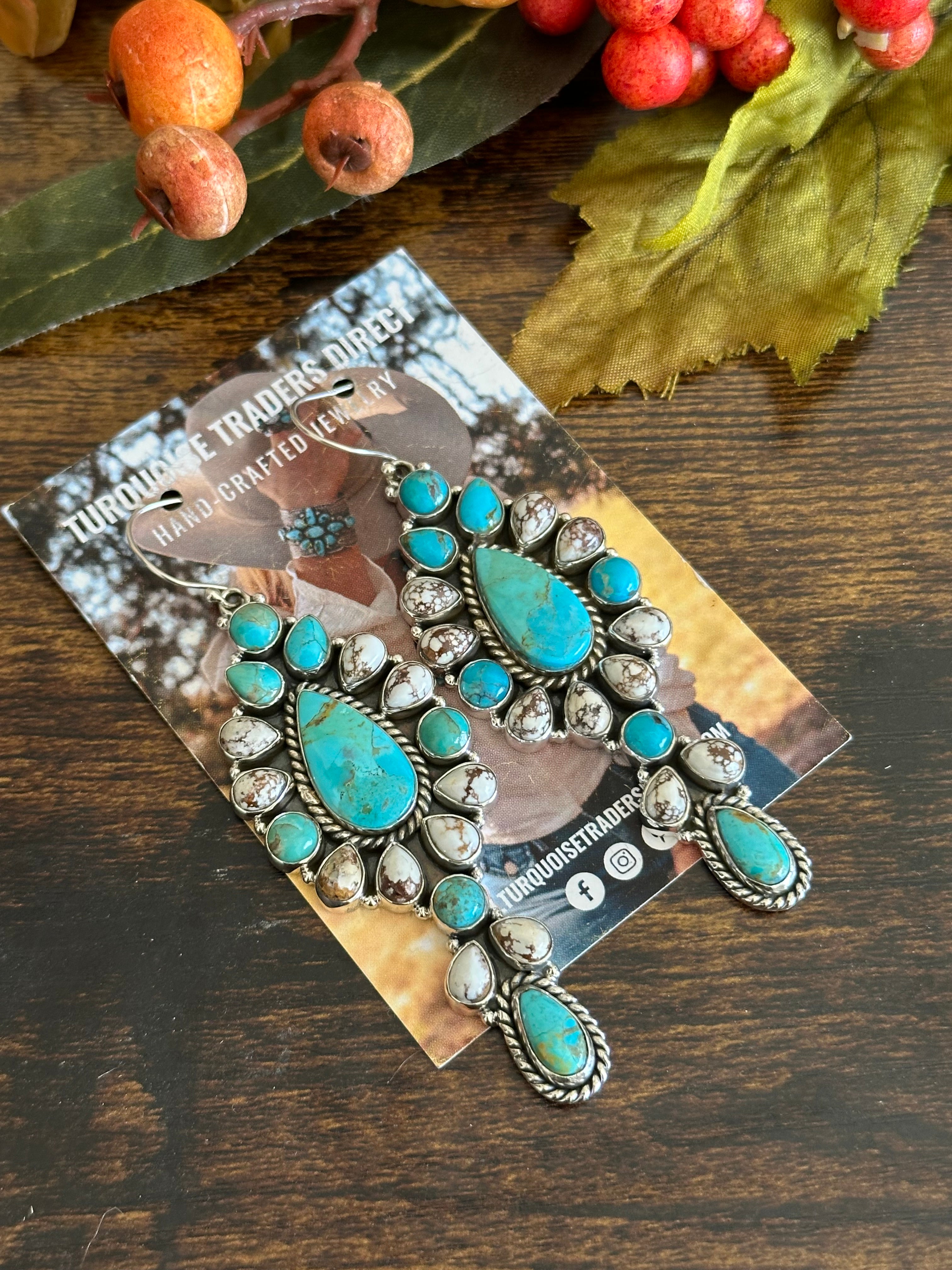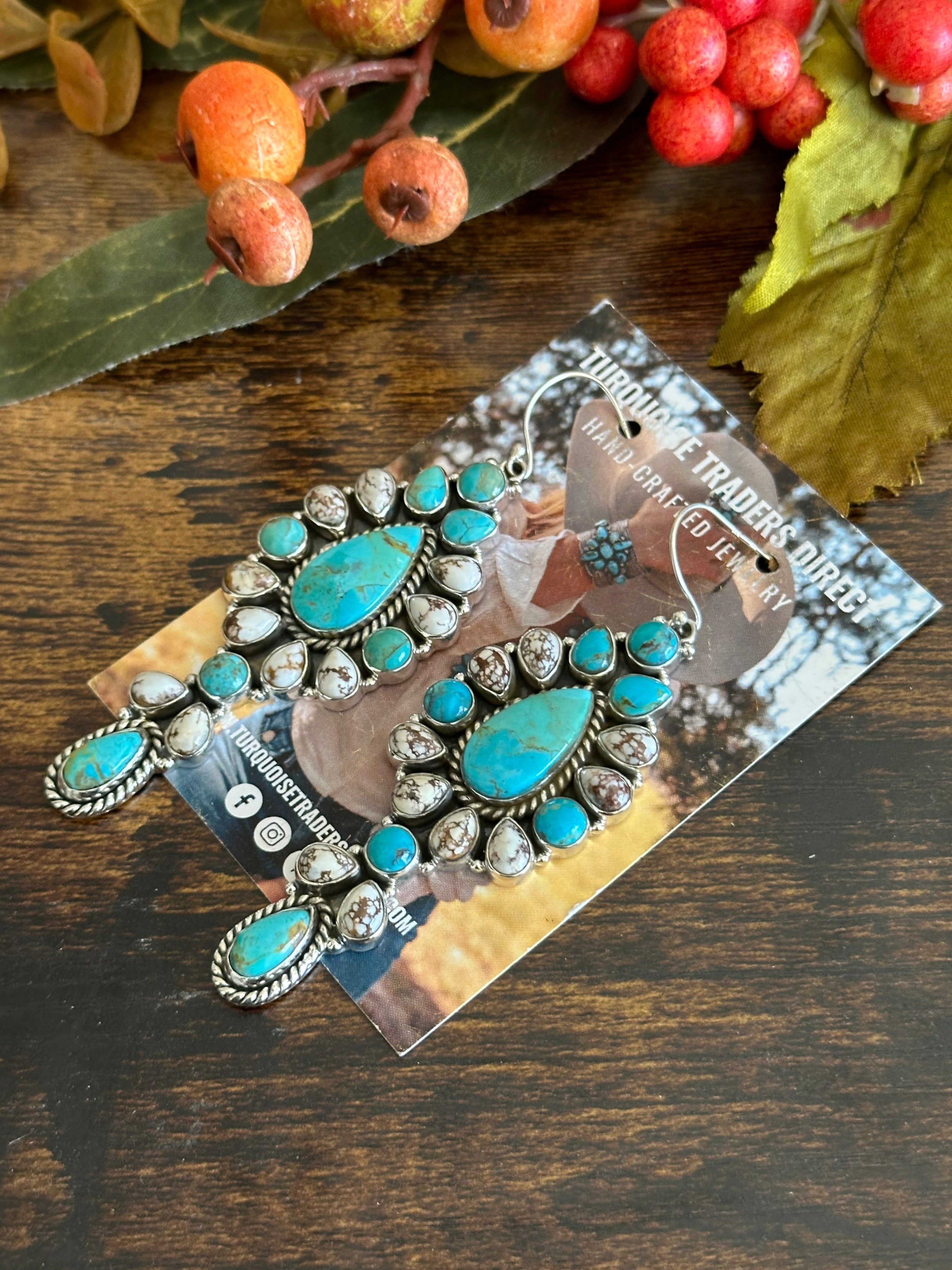 Southwest Handmade Multi Stone & Sterling Silver Dangle Cluster Earrings