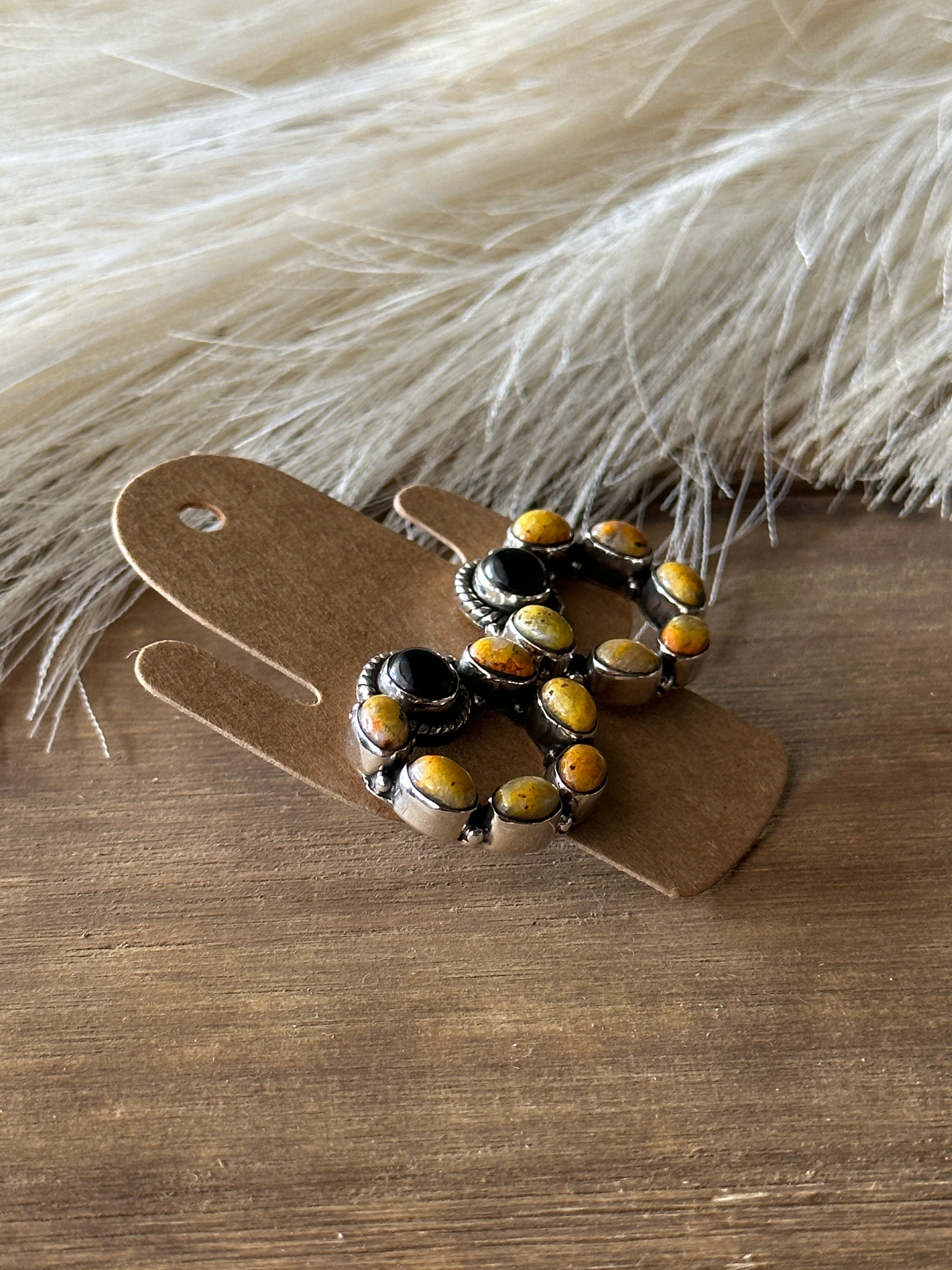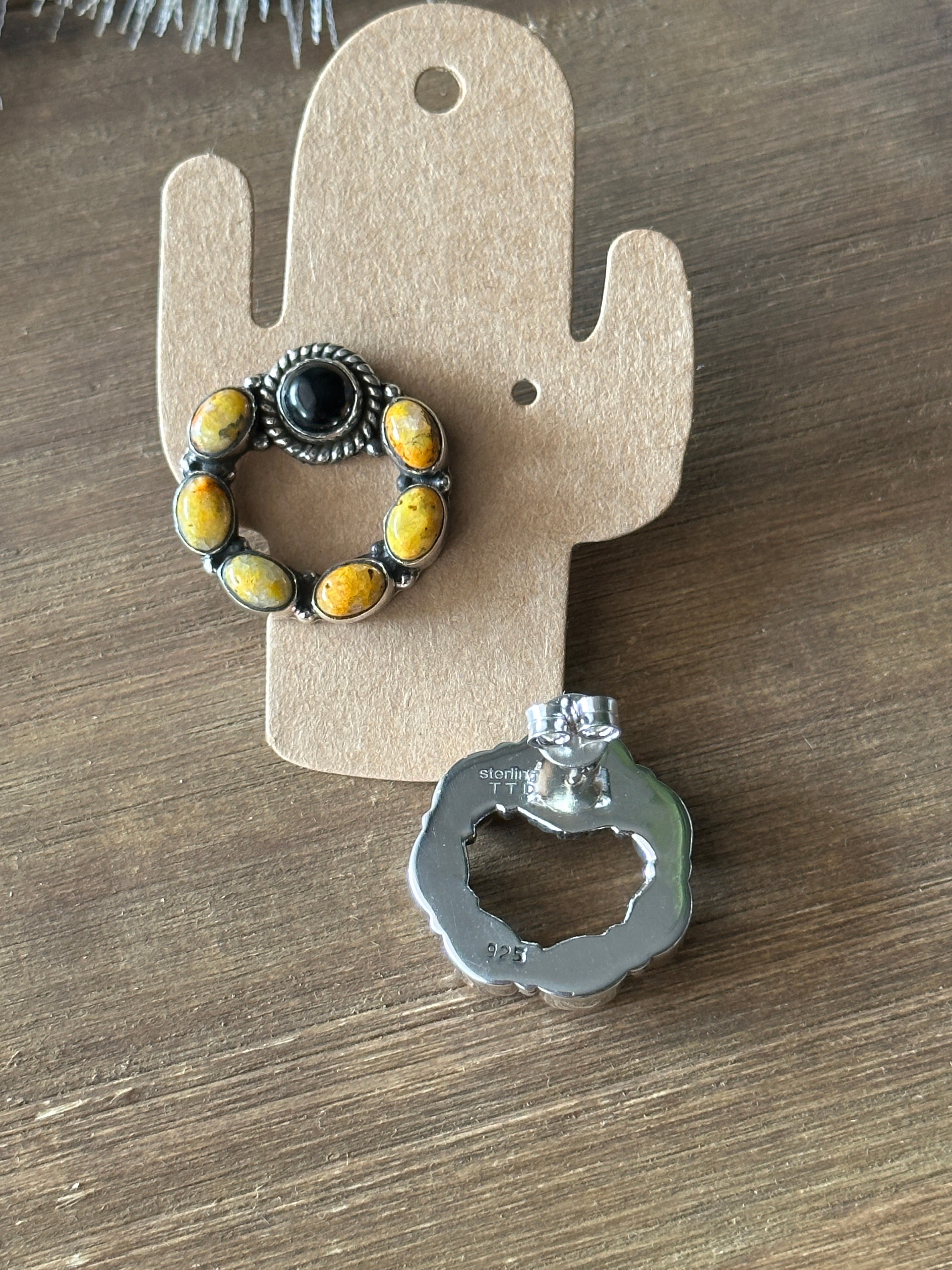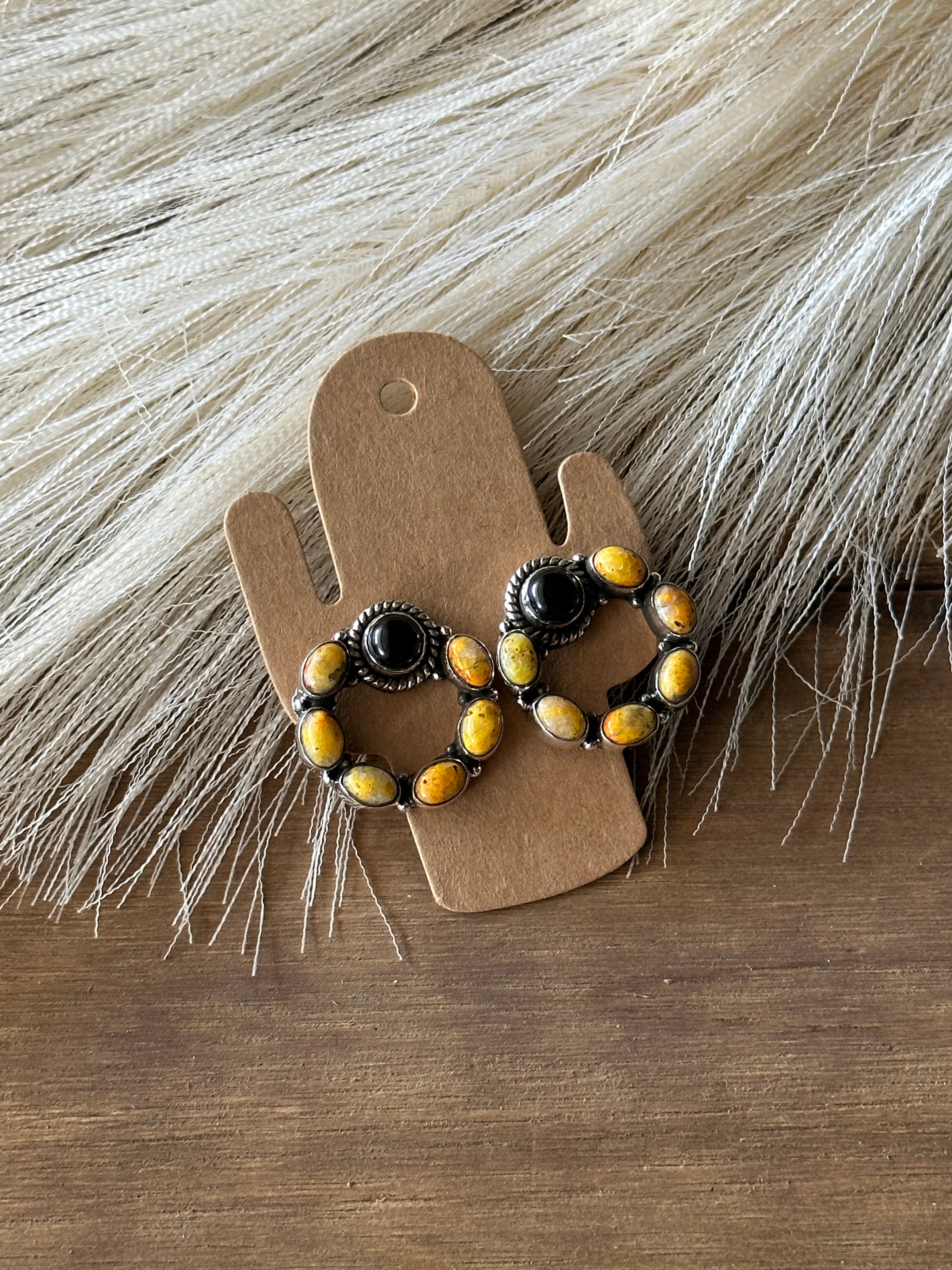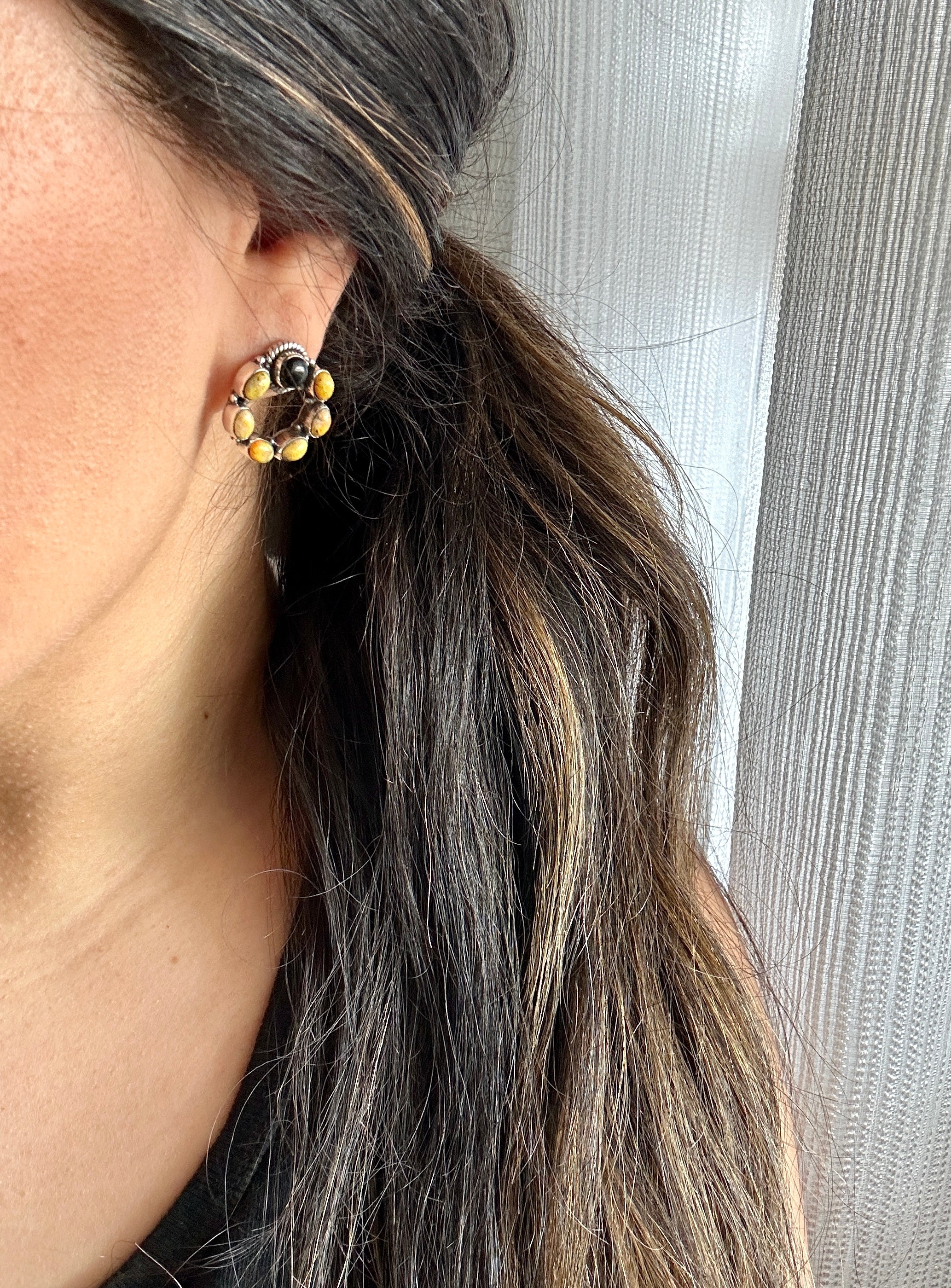 Beautiful post cluster earrings. Southwest Handmade Multi Stone & Sterling Silver Post Earrings. It measures just under 1 inch round. Signed by the artist and stamped sterling silver.
