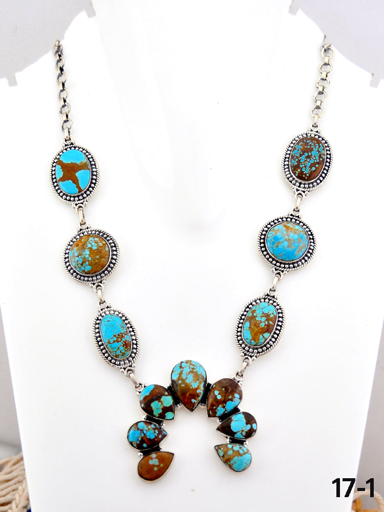 Southwest Handmade Number 8 Turquoise & Sterling Silver Necklace