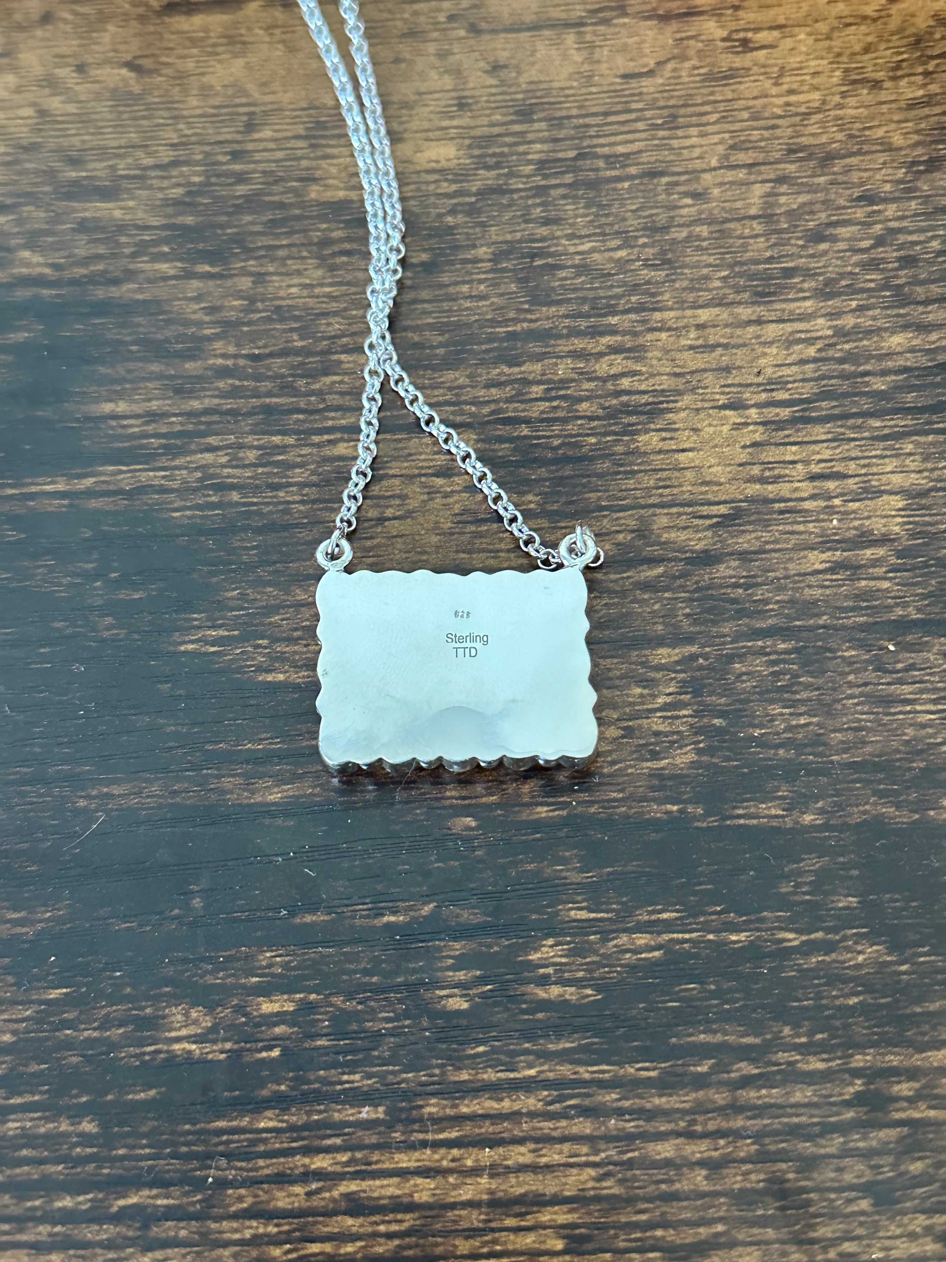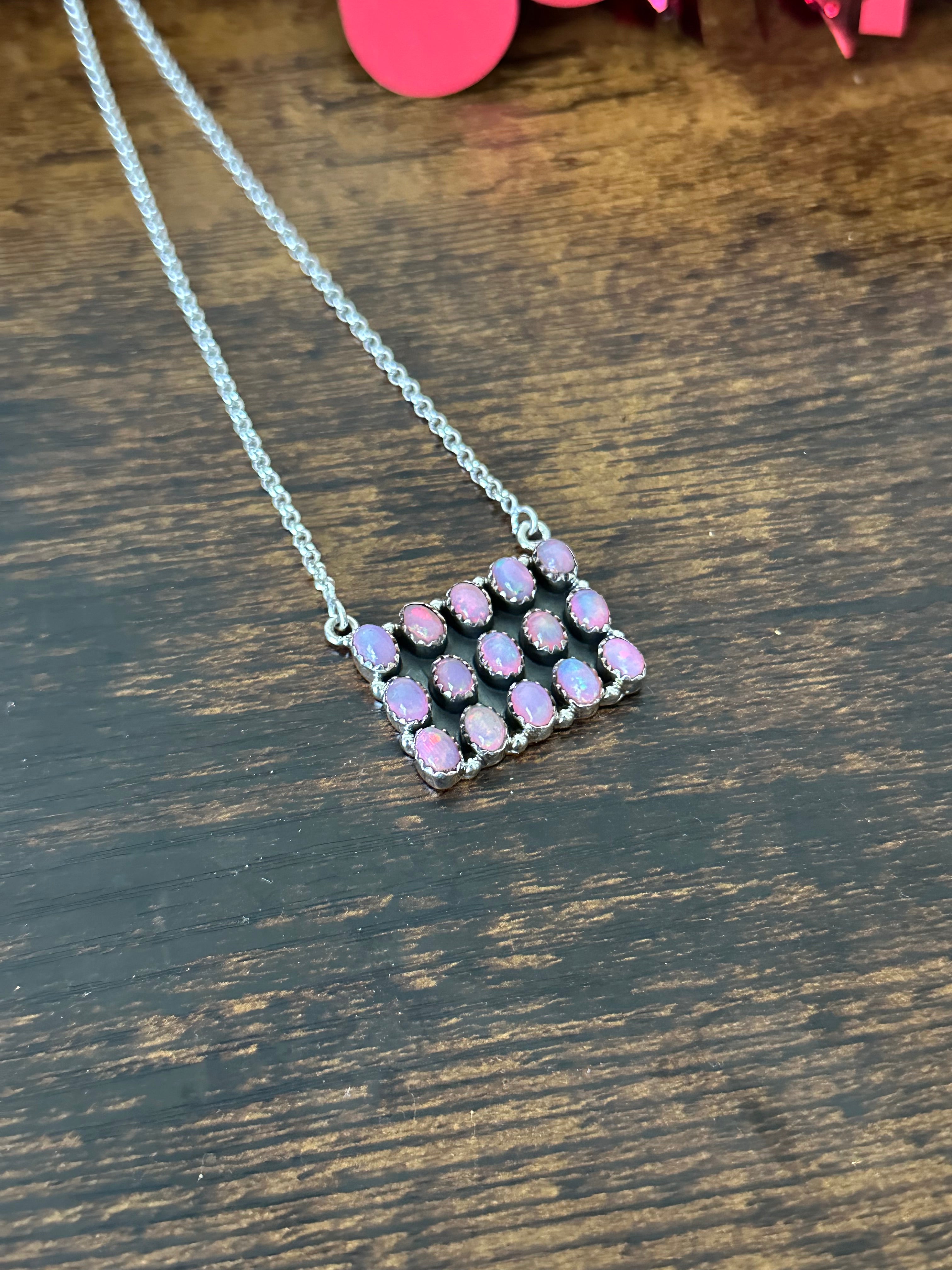 Beautiful necklace. Southwest Handmade Opal (Man Made) & Sterling Silver Cluster Necklace. It measures 21 inches long with hang while the chain by itself measures 19 inches long but can be adjusted down. Signed by the artist and stamped sterling silver.