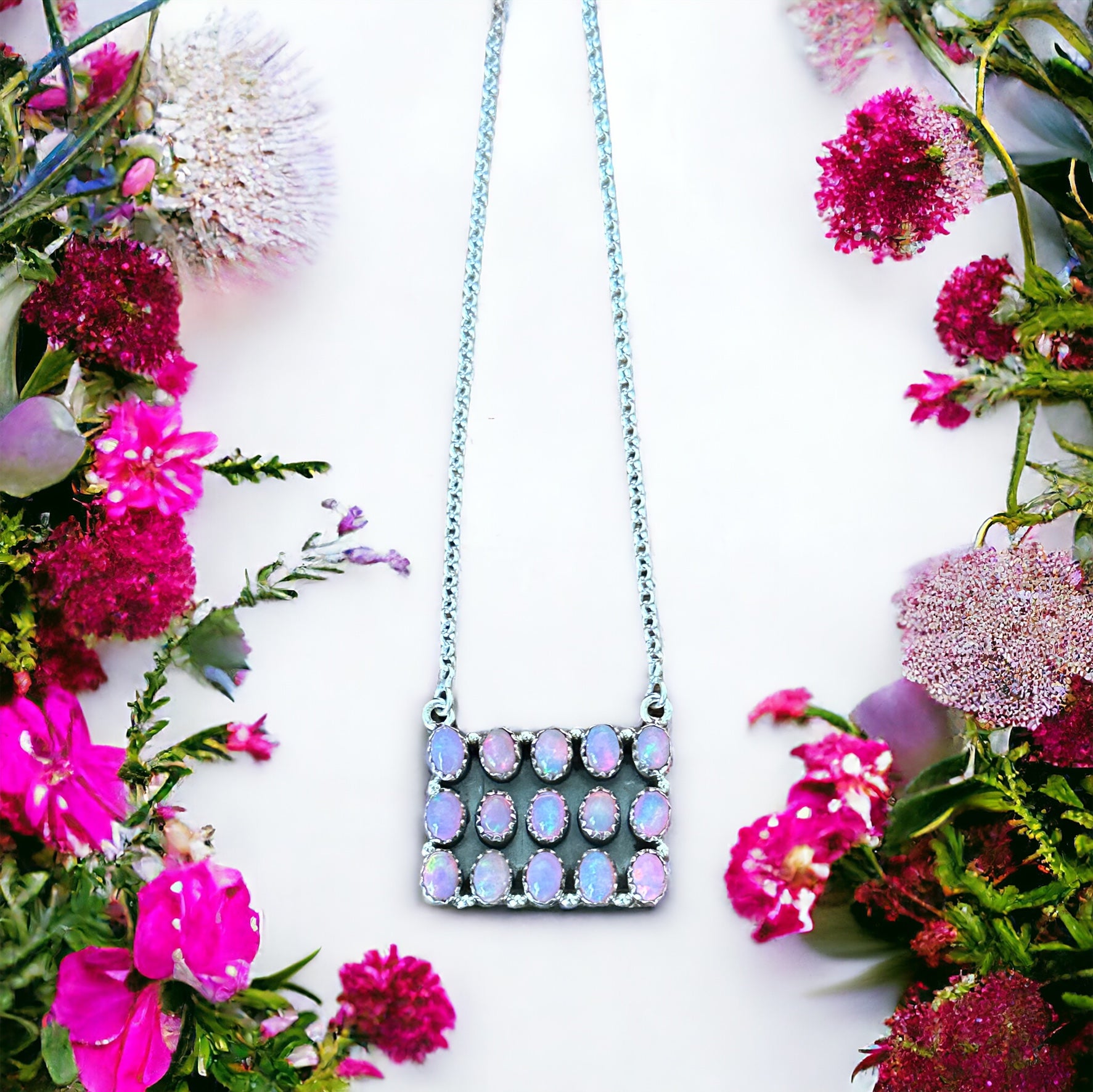 Southwest Handmade Opal & Sterling Silver Cluster Necklace