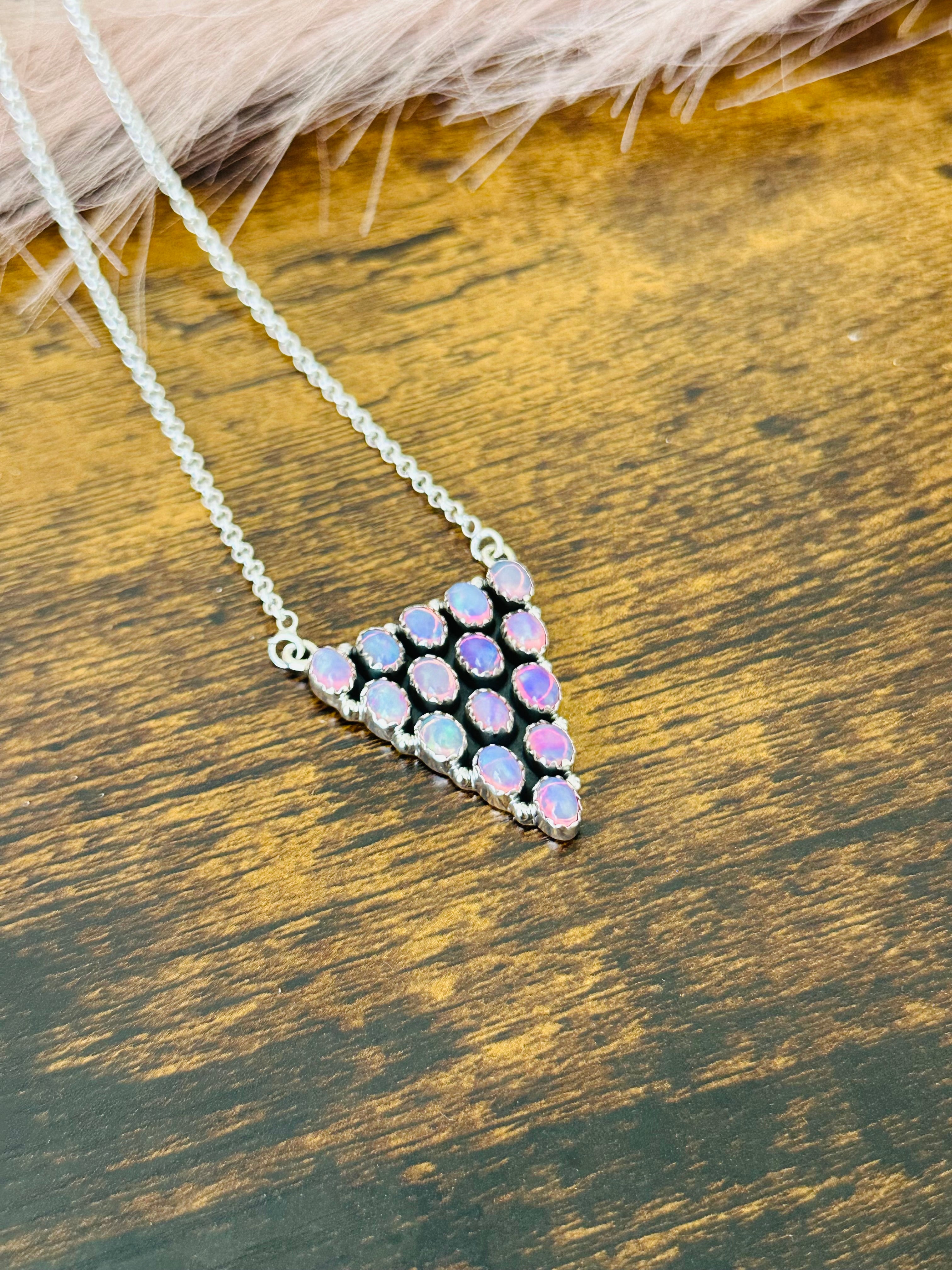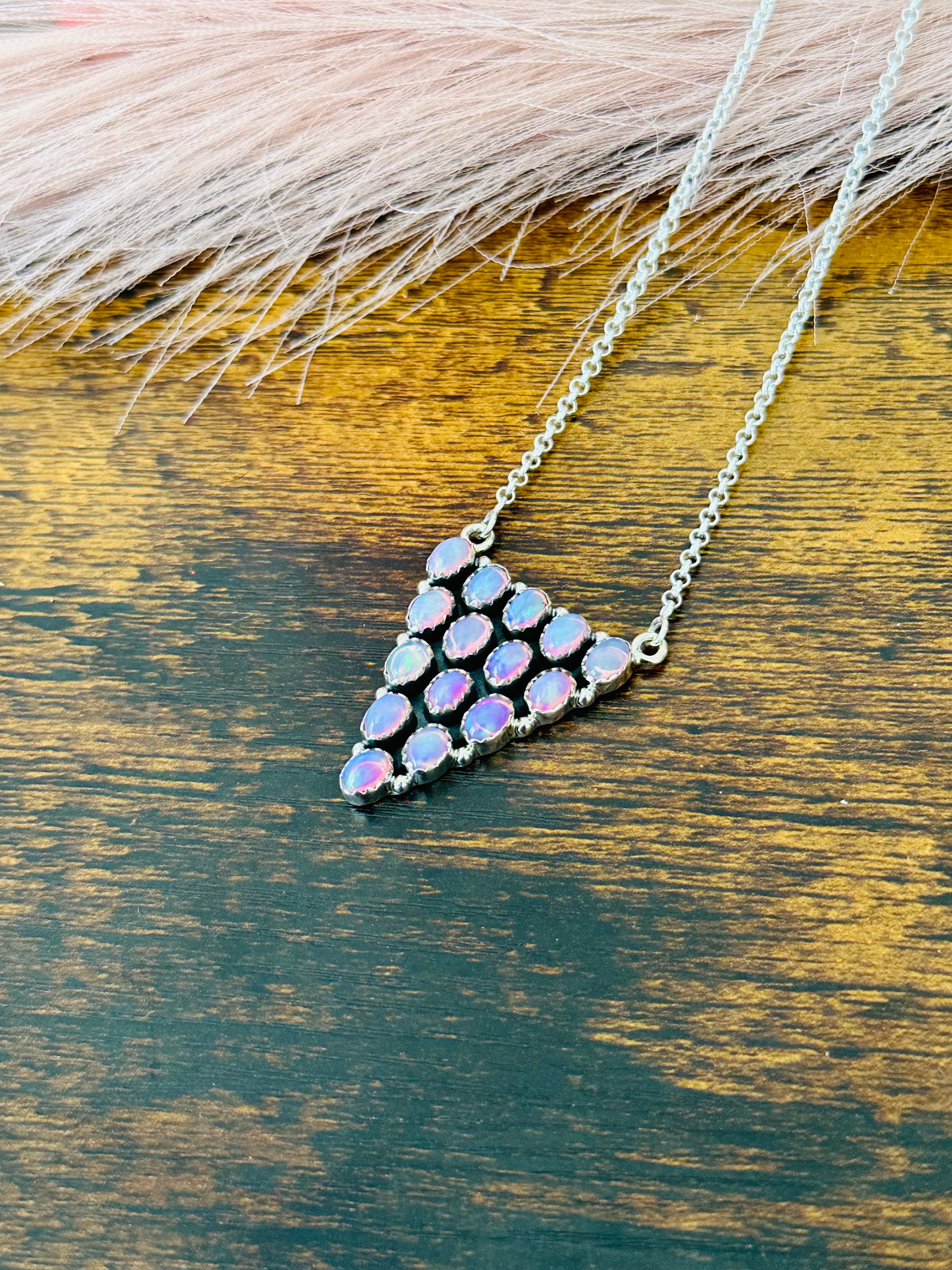Southwest Handmade Opal & Sterling Silver Cluster Necklace