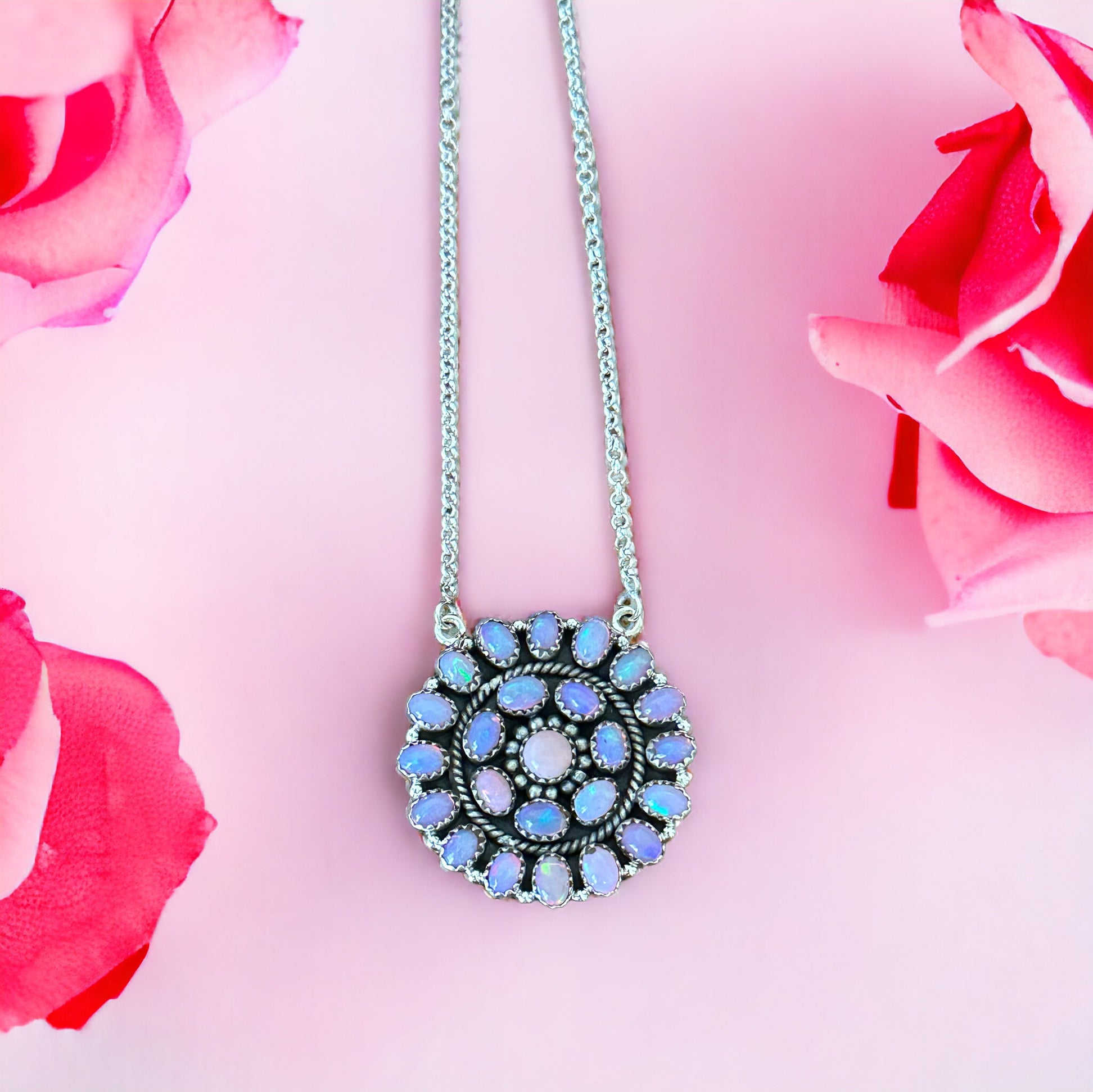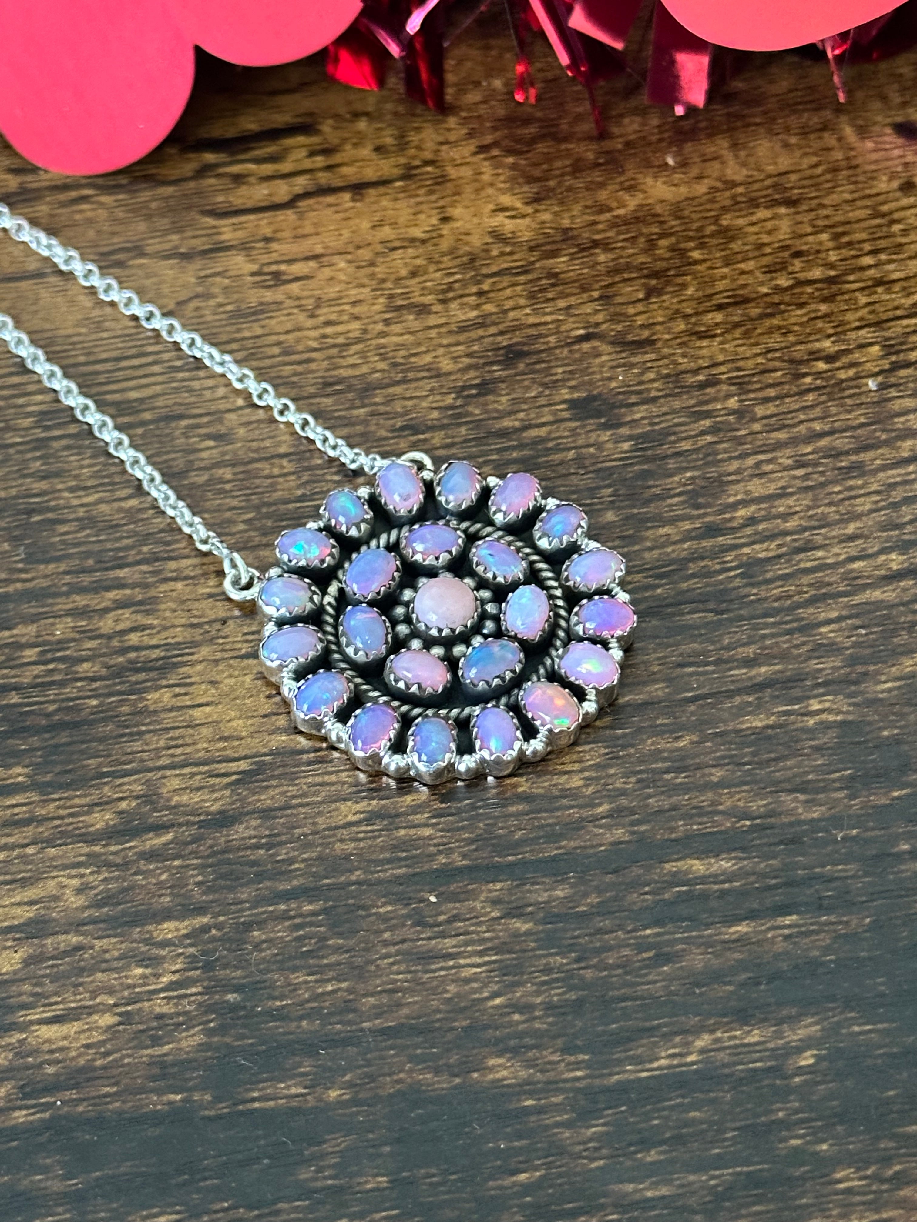 Southwest Handmade Opal & Sterling Silver Cluster Necklace