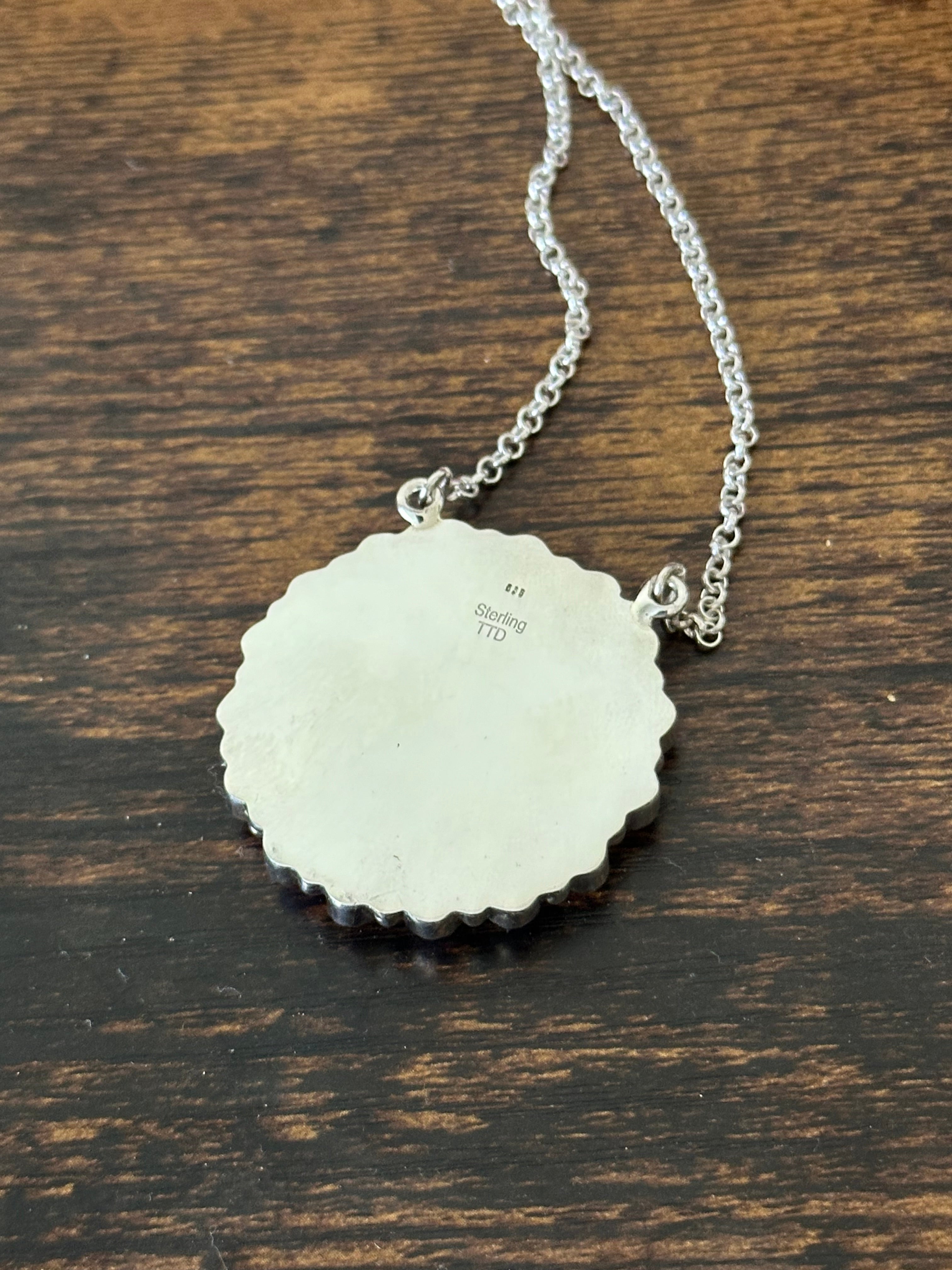 Beautiful necklace. Southwest Handmade Opal (Man Made) & Sterling Silver Cluster Necklace. It measures 22 inches long with hang while the chain by itself measures 19 inches long but can be adjusted down. Signed by the artist and stamped sterling silver.