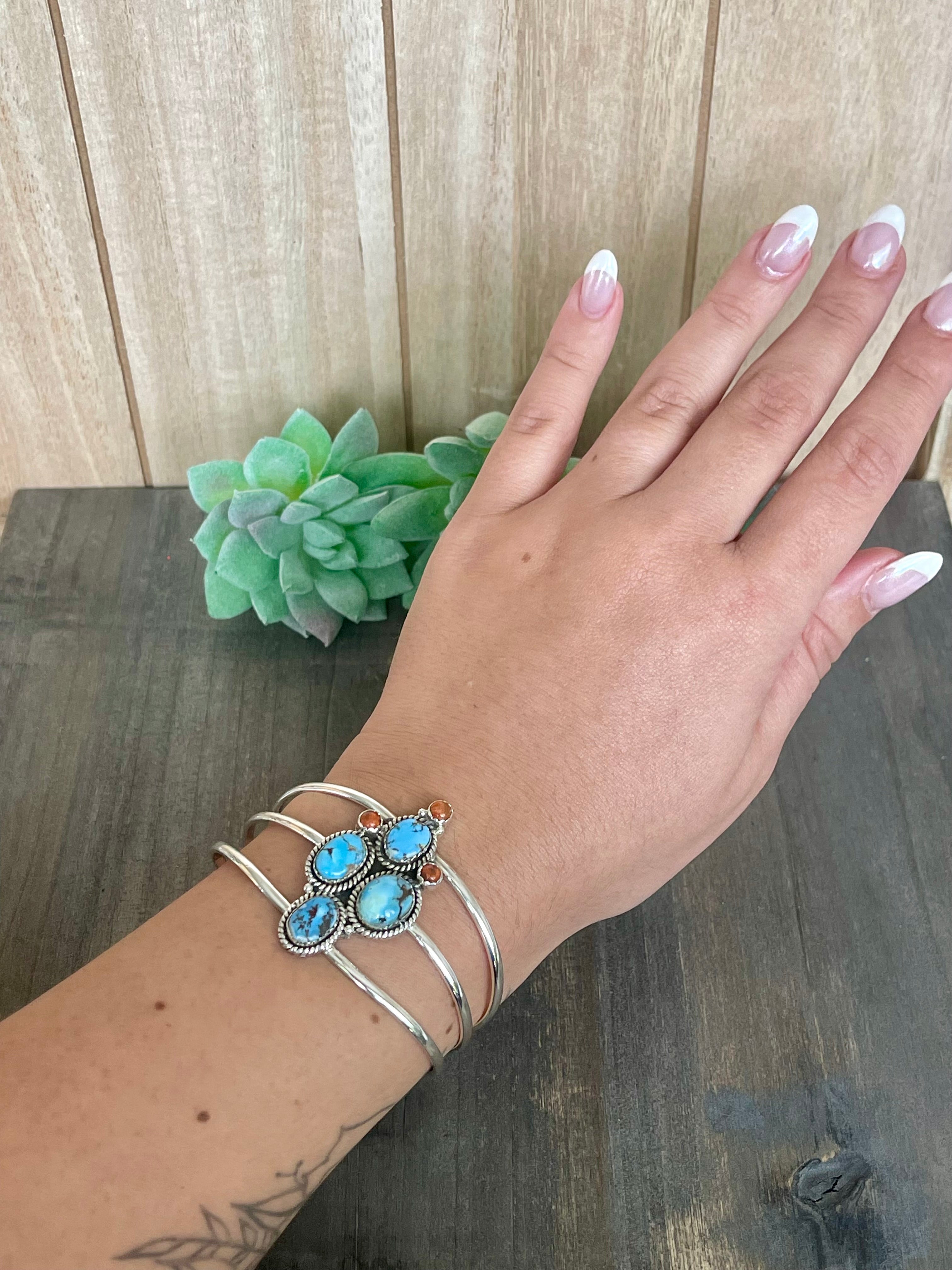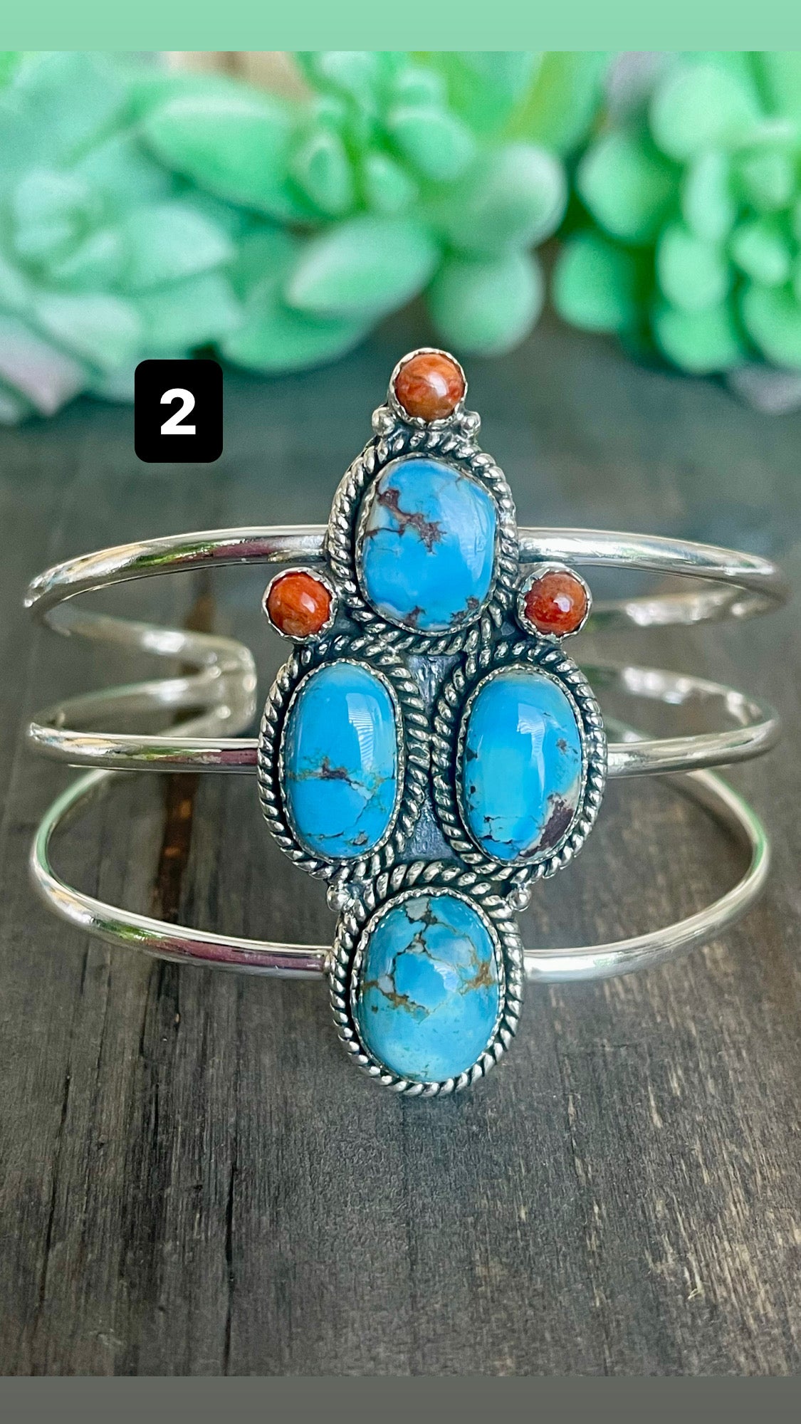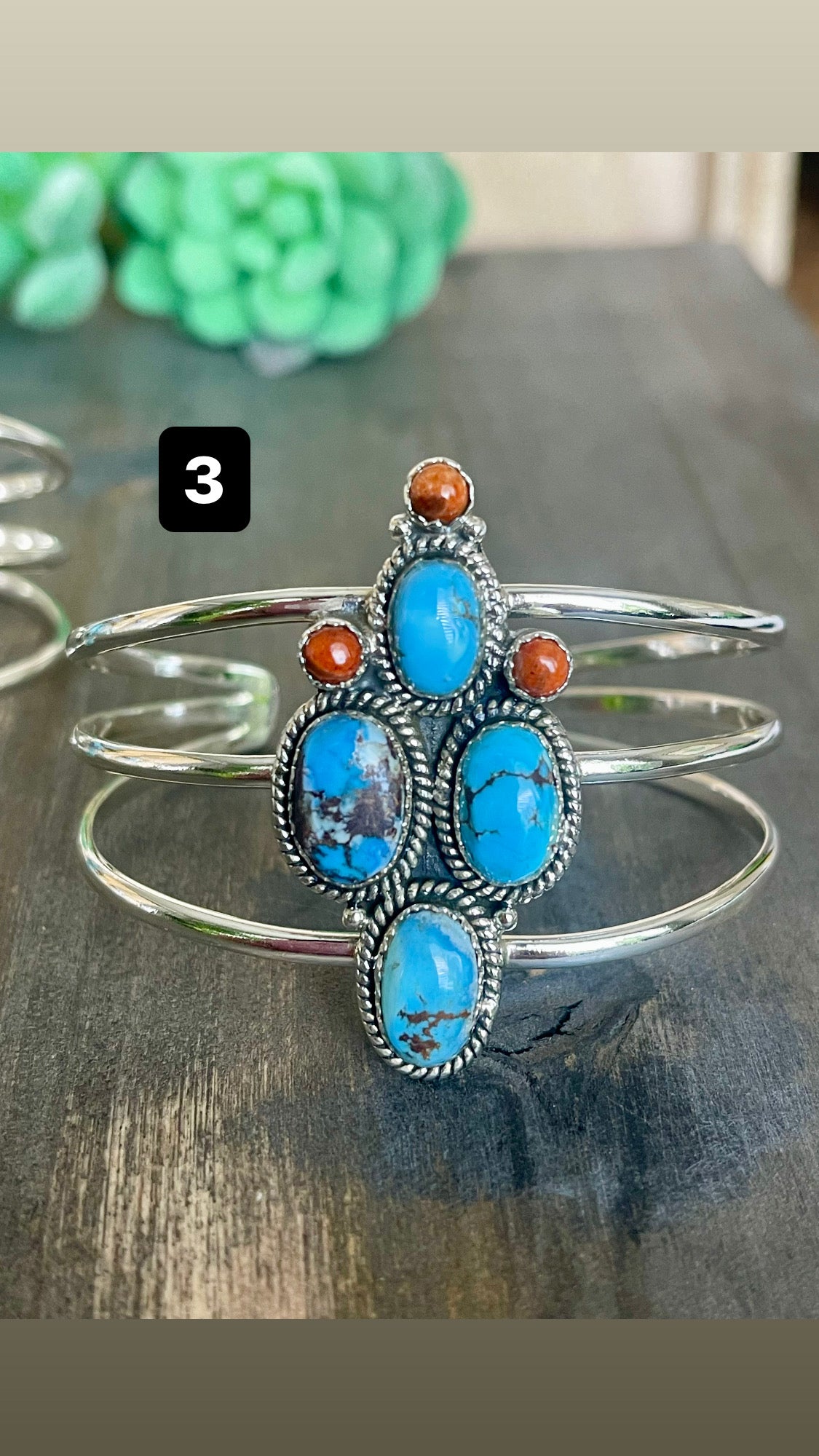Southwest Handmade Multi Stone & Sterling Silver Cuff Bracelet