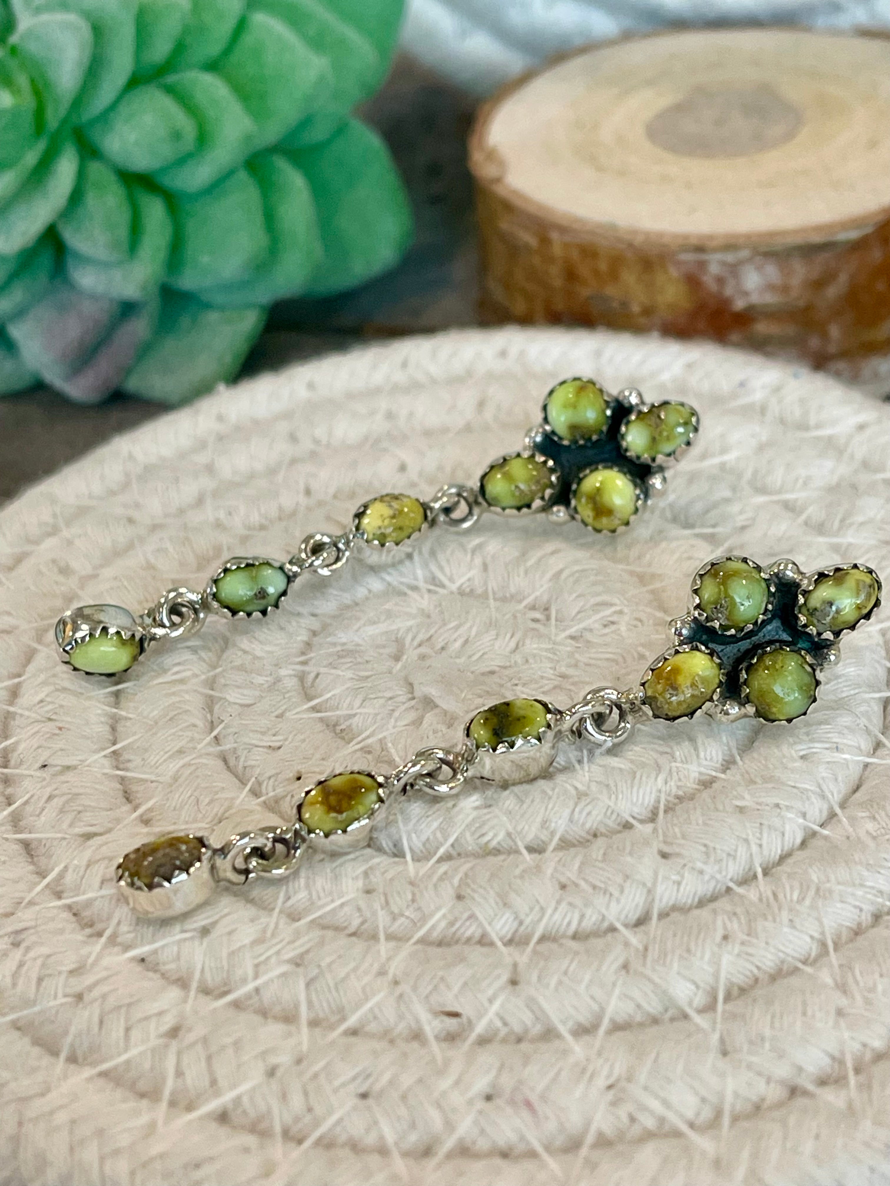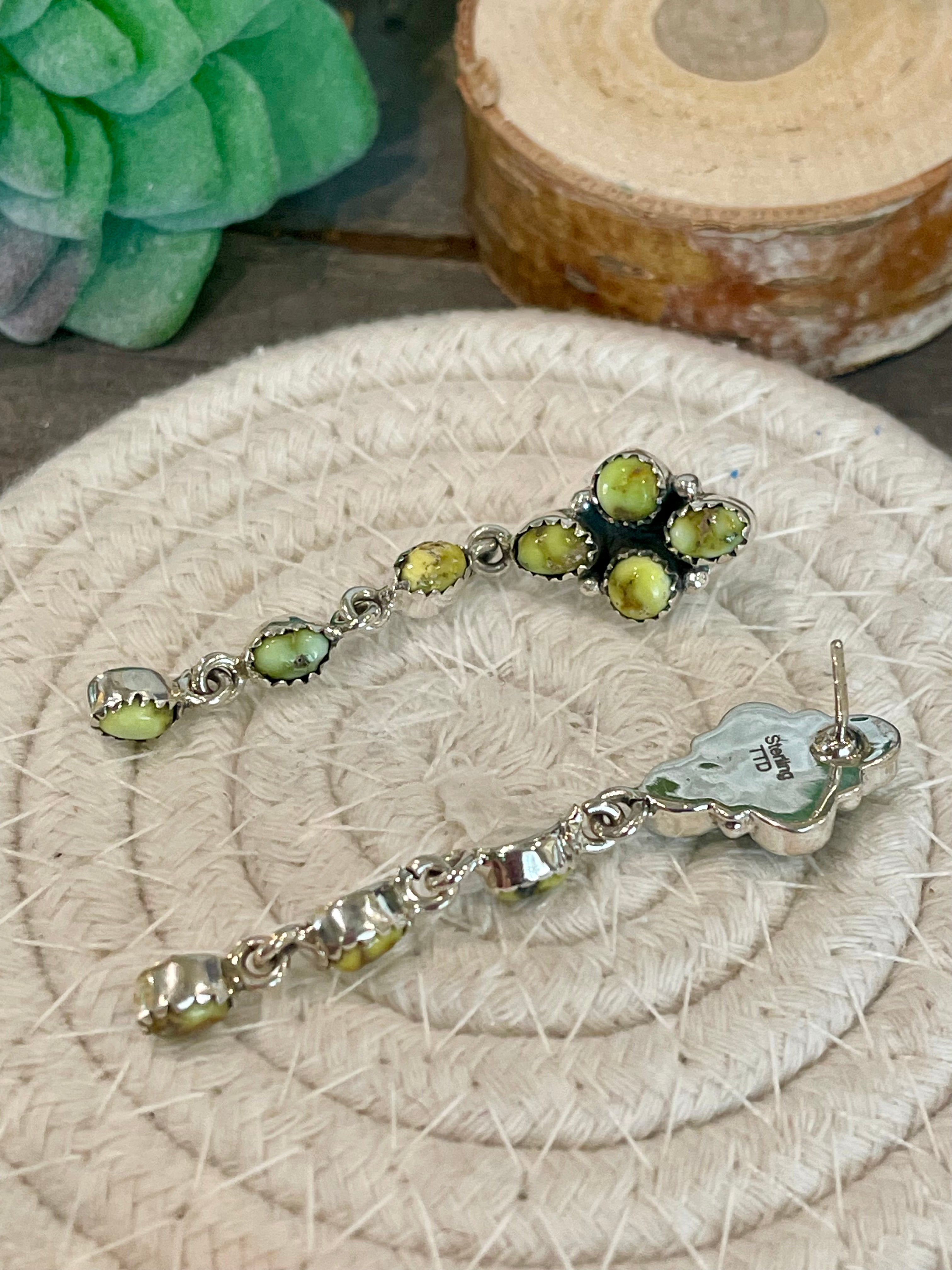 Southwest Handmade Palomino Variscite & Sterling Silver Post Dangle Earrings