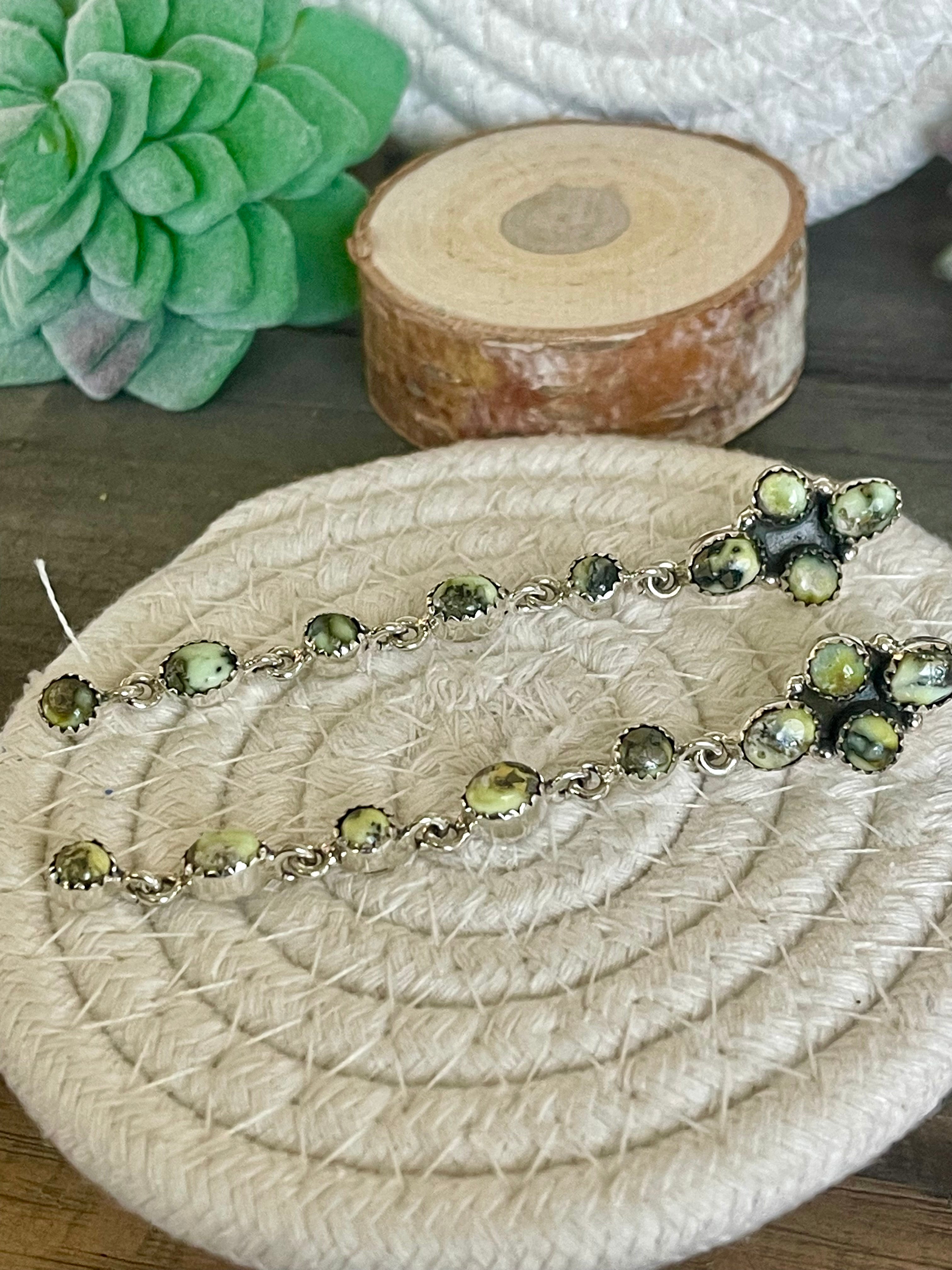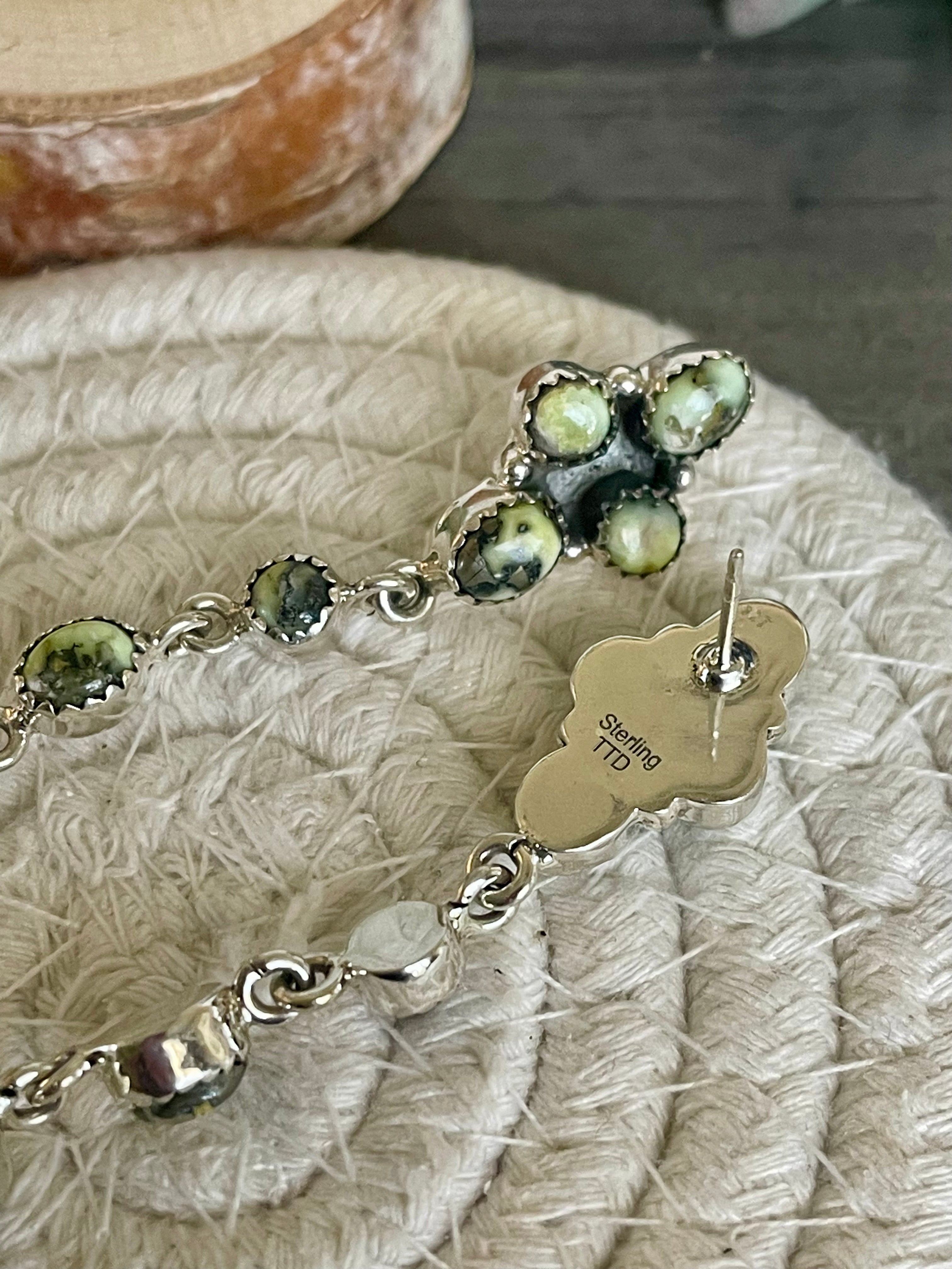 Southwest Handmade Palomino Variscite & Sterling Silver Post Dangle Earrings