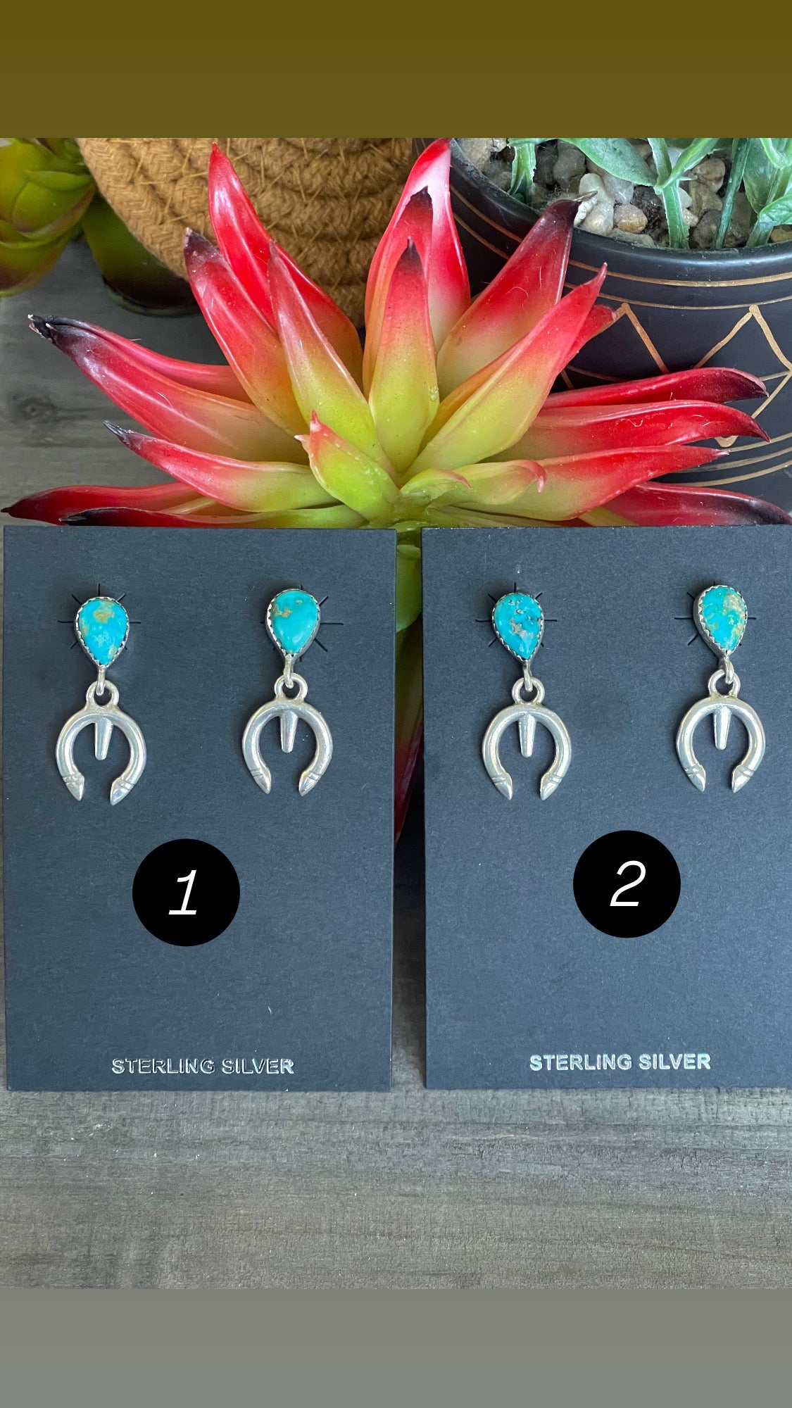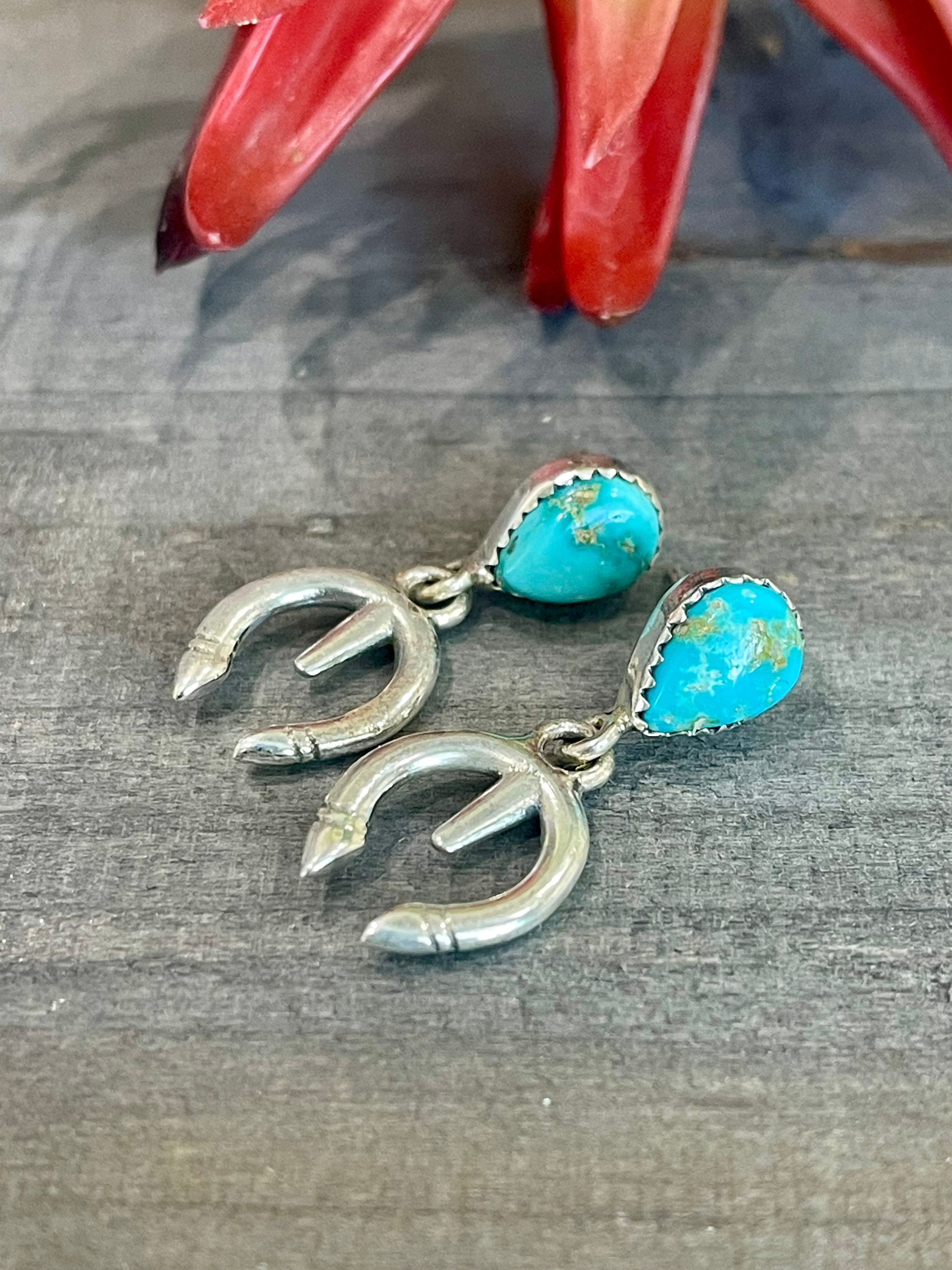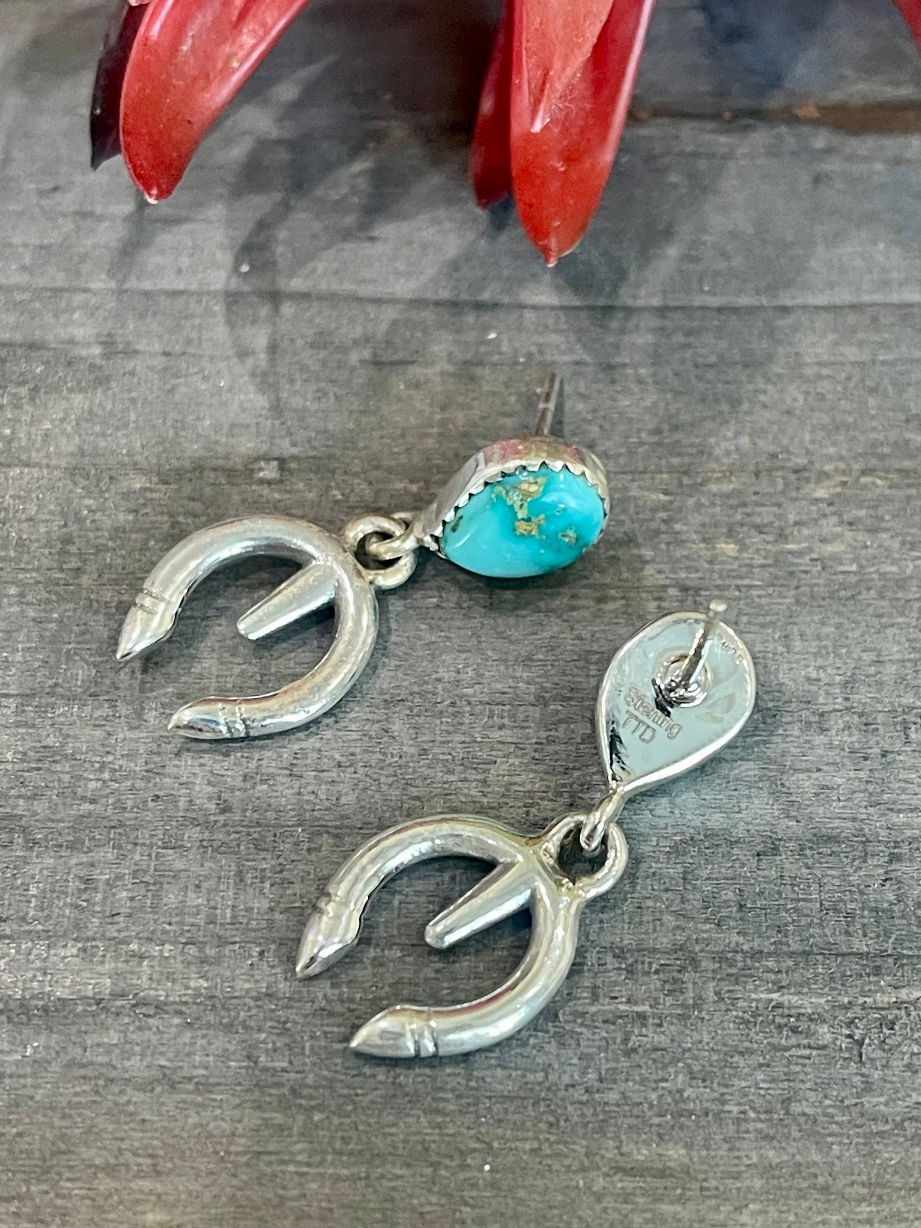 Southwest Handmade Kingman Turquoise & Sterling Silver Post Dangle Naja Earrings