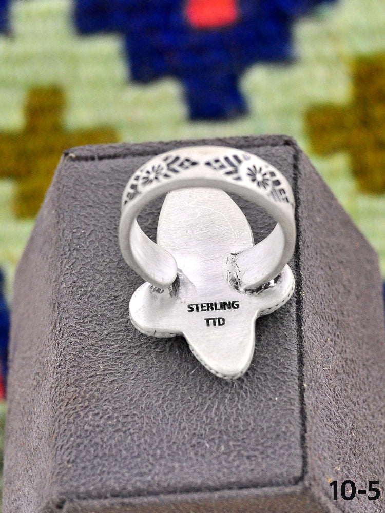 Southwest Handmade Peacock Dahlia & Sterling Silver Adjustable Ring