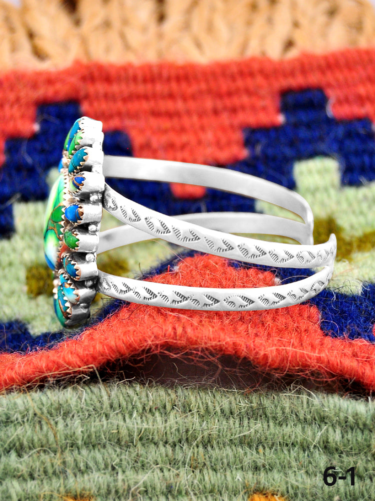 Southwest Handmade Peacock Dahlia & Sterling Silver Cuff Bracelet