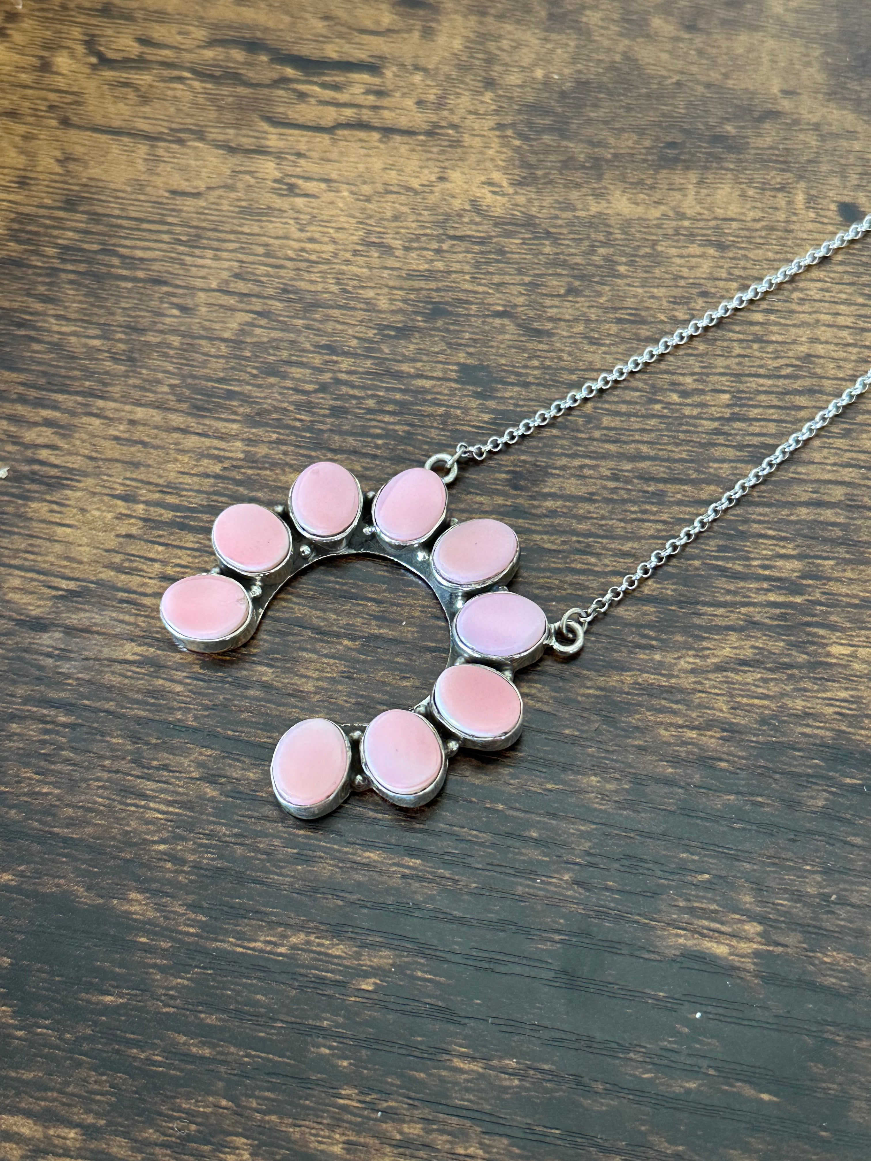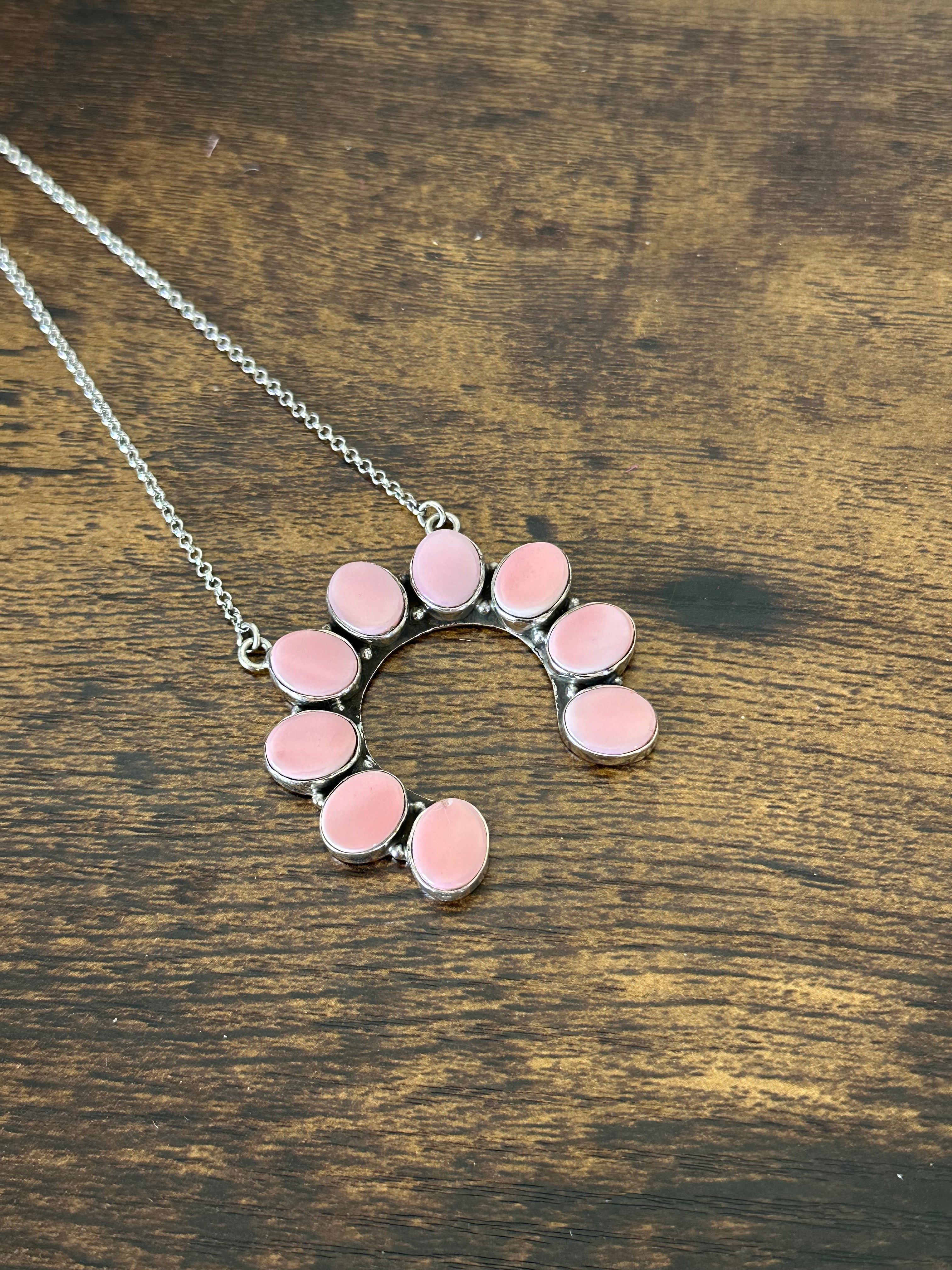 Southwest Handmade Pink Conch & Sterling Silver Naja Necklace
