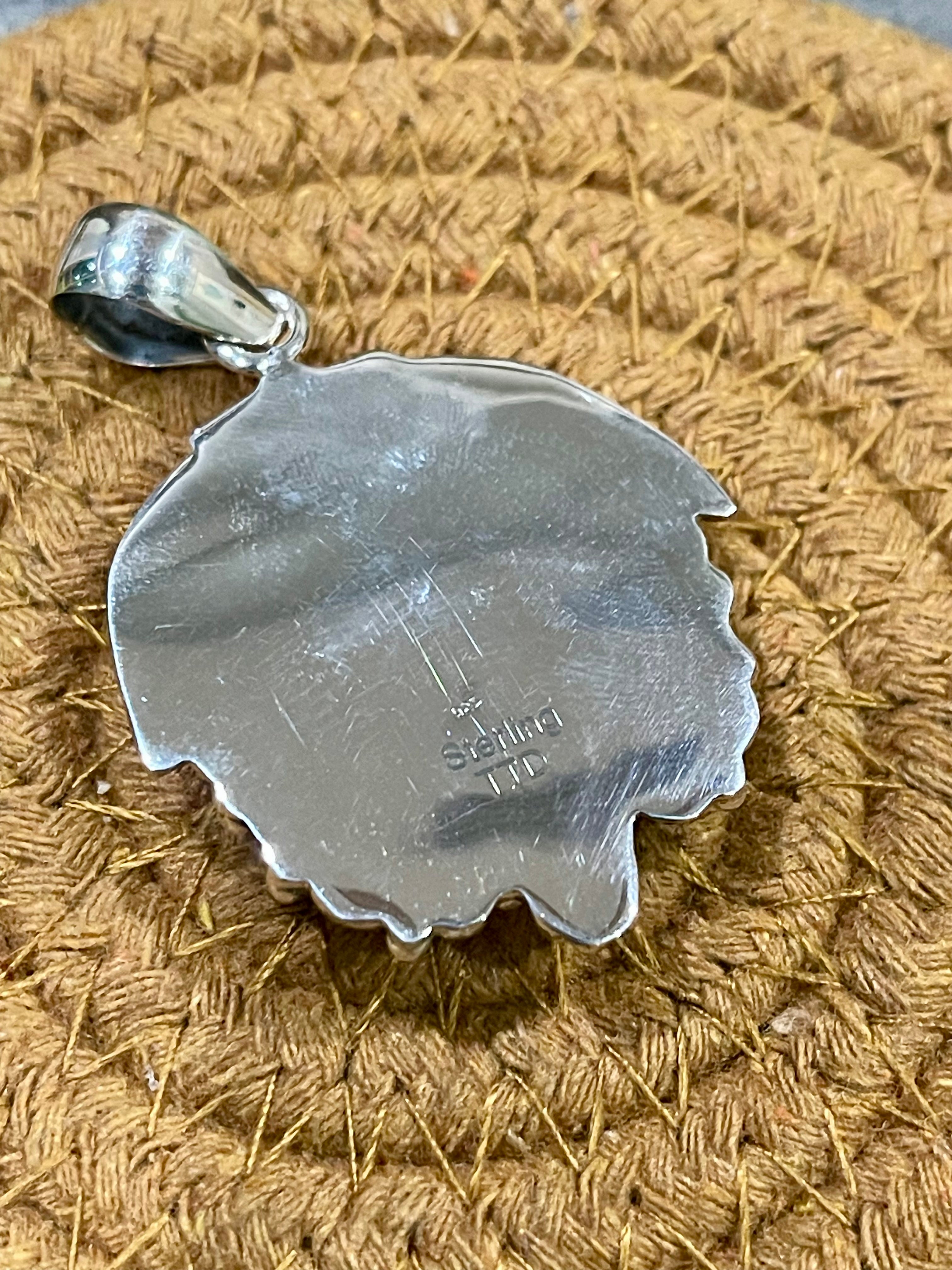 Beautiful craftsmanship. Southwest Handmade Pink Larimar & Sterling Silver Pendant. It measures 2 1/8 inches long and 1 3/8 inches wide. Pendant Only. Signed by the artist and stamped sterling silver.