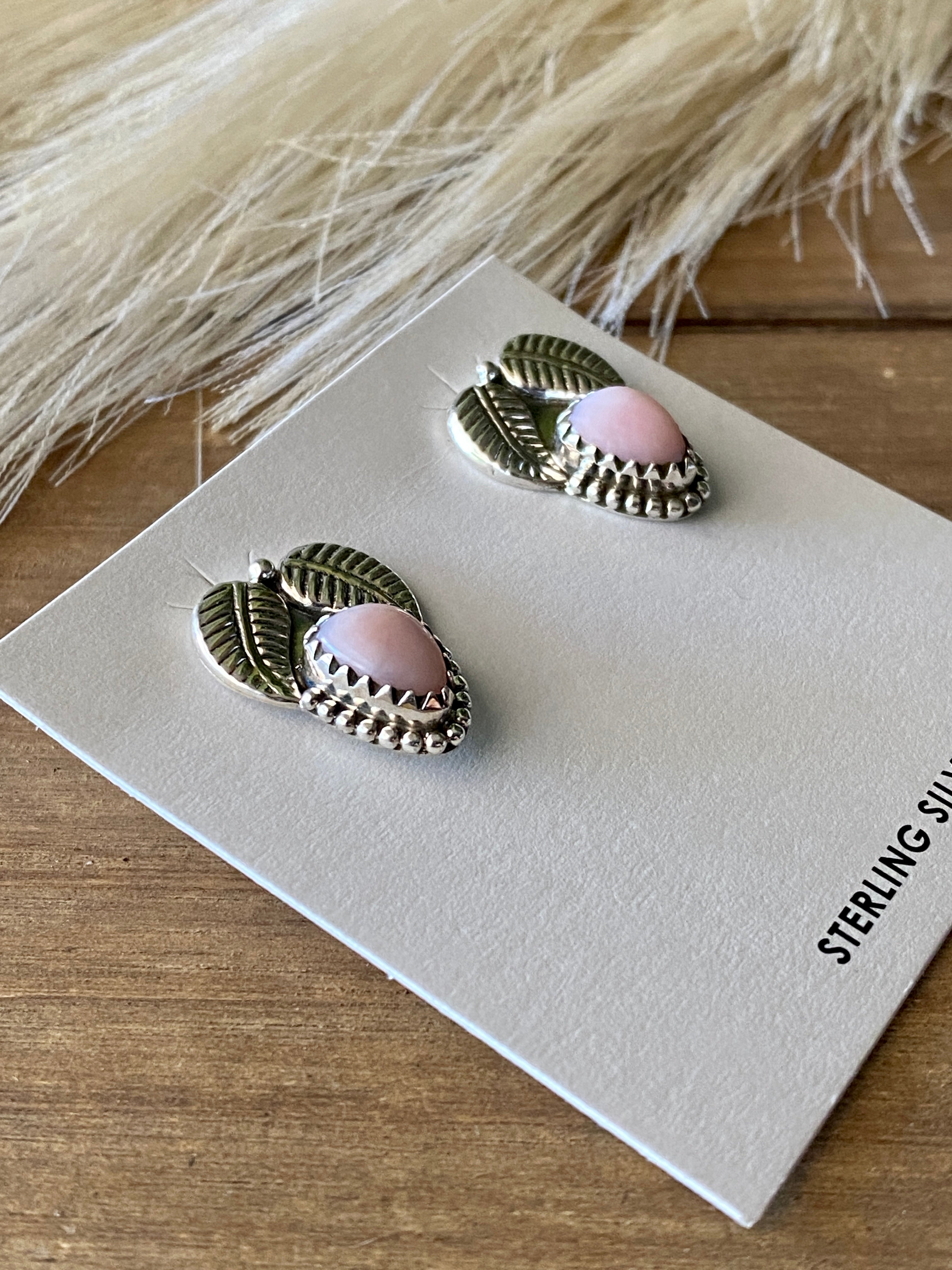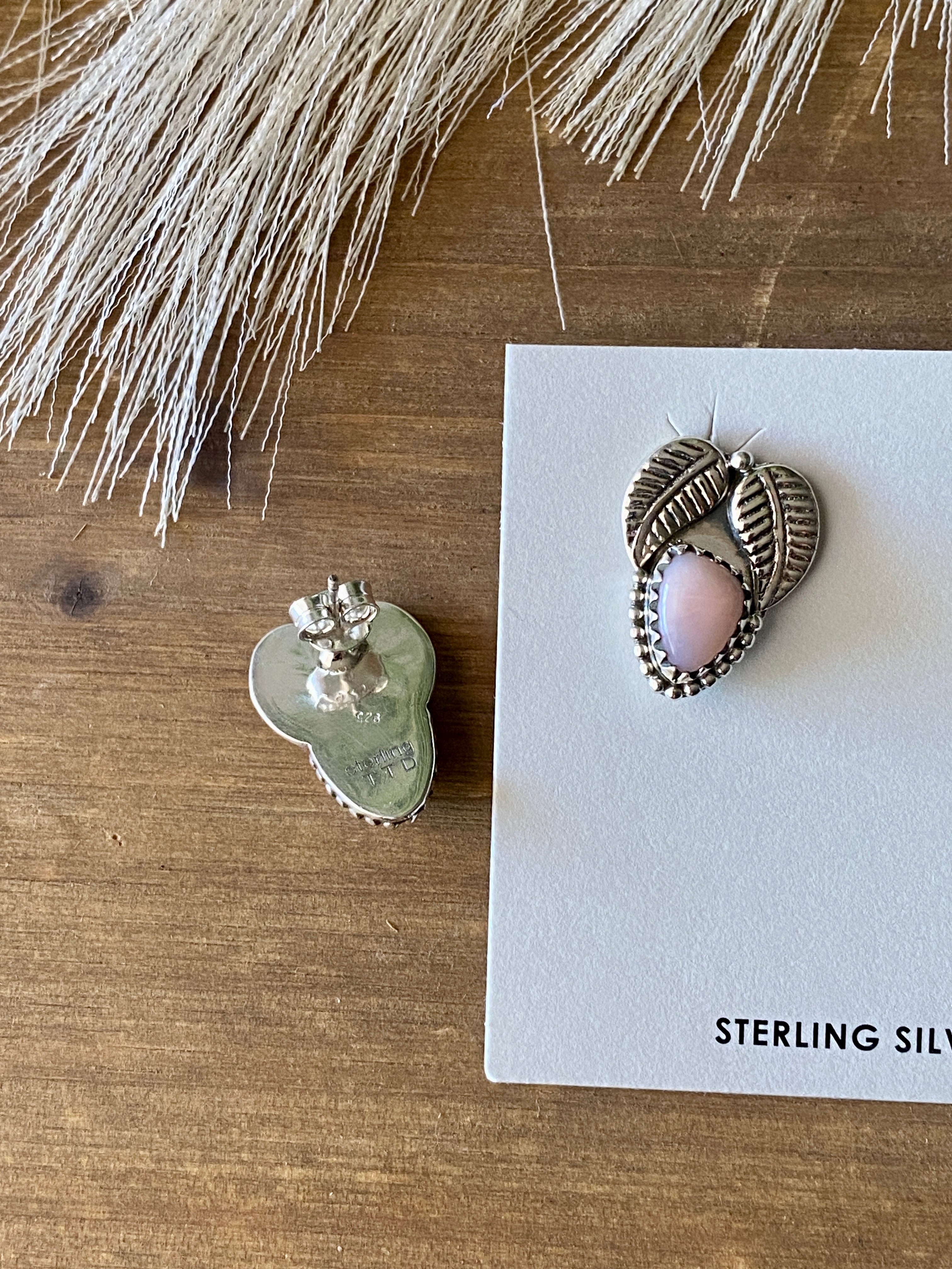 Southwest Handmade Pink Opal & Sterling Silver Post Earrings