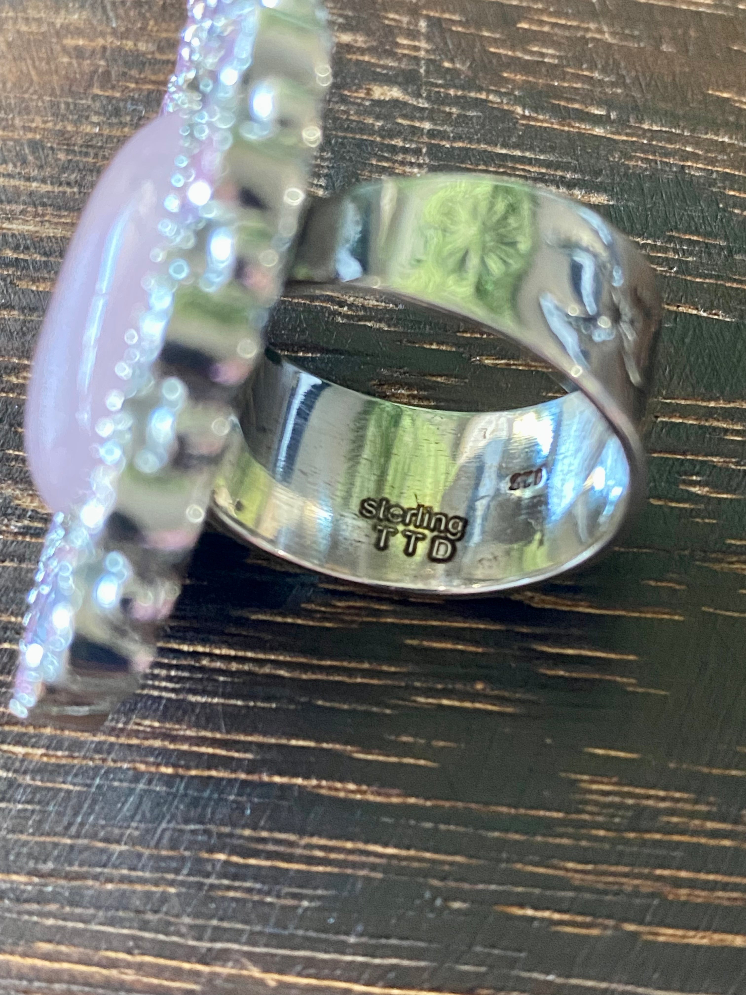 Southwest Handmade Rose Quartz & Tourmaline Sterling Silver Cluster Adjustable Ring Size 5.5. It measures 1 1/2 inches long and 1 3/8 inches wide. Signed by the artist and stamped sterling silver.
