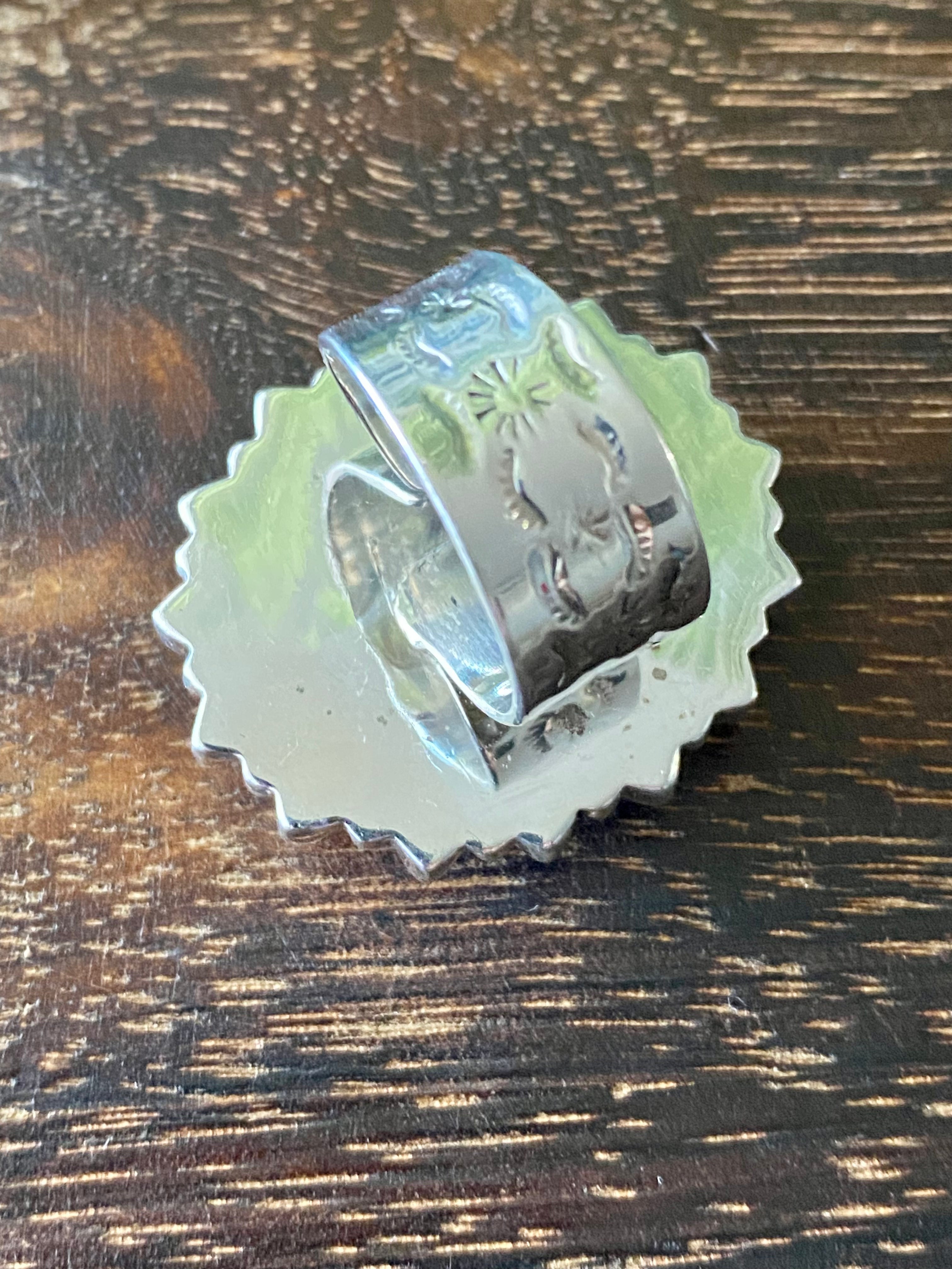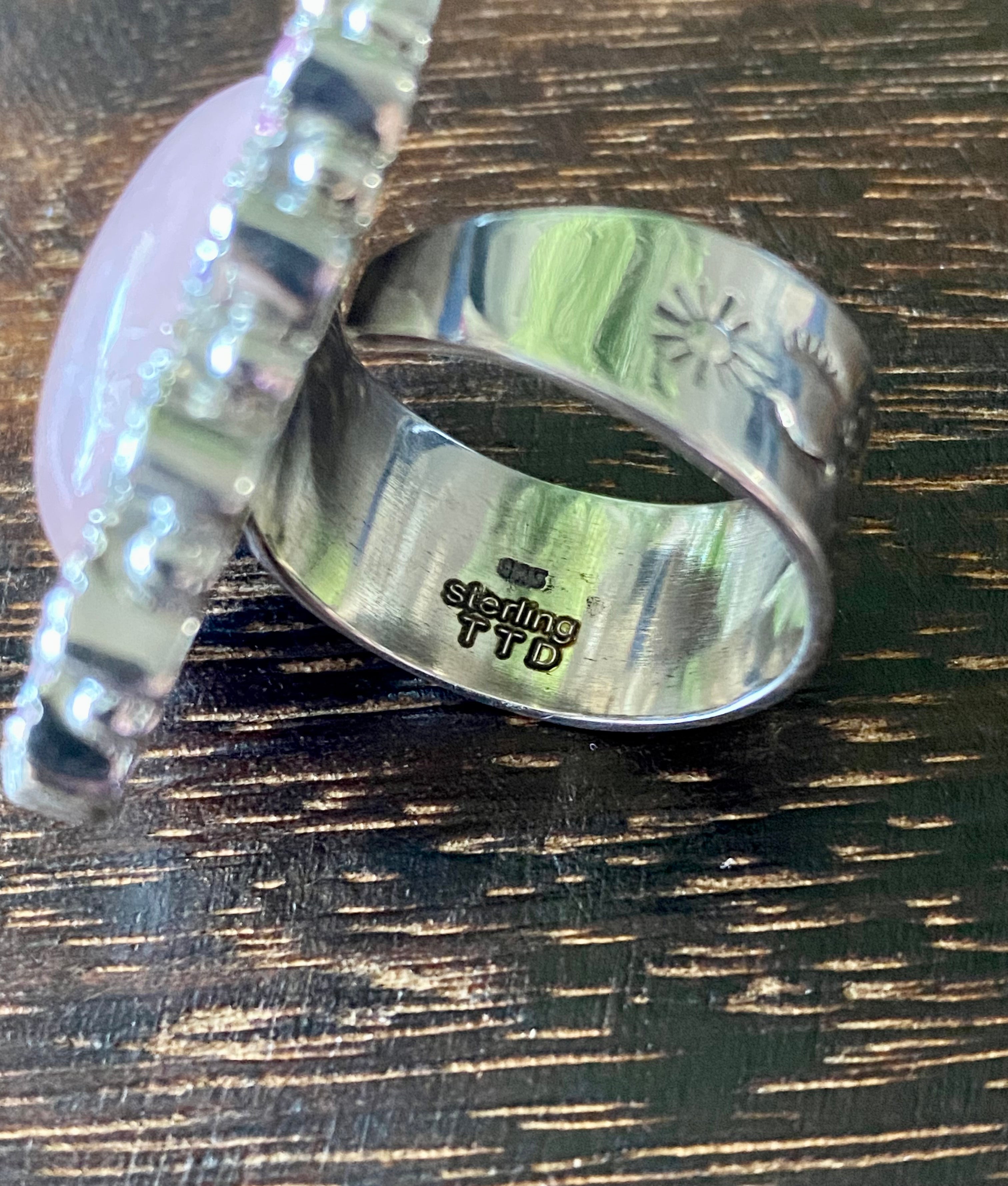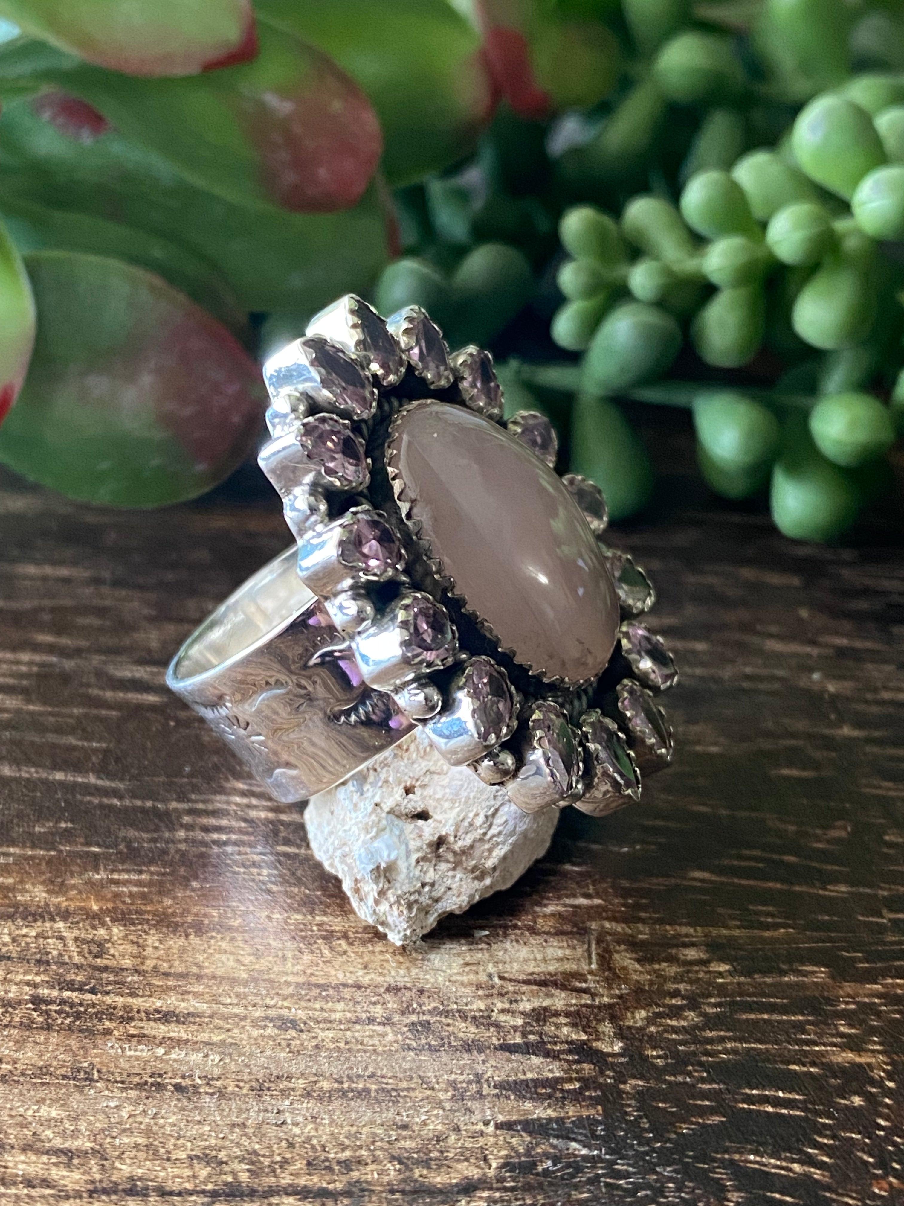 Southwest Handmade Rose Quartz & Tourmaline Sterling Silver Cluster Adjustable Ring Size 8.5
