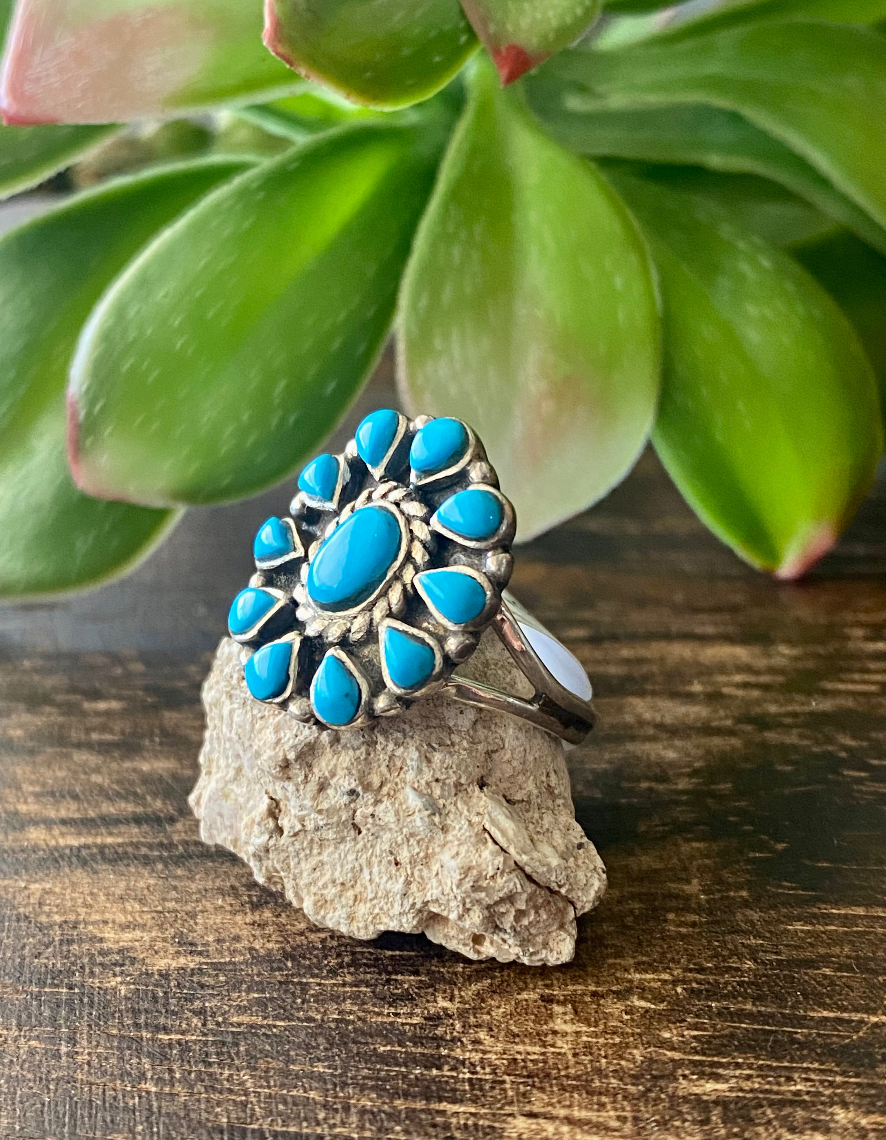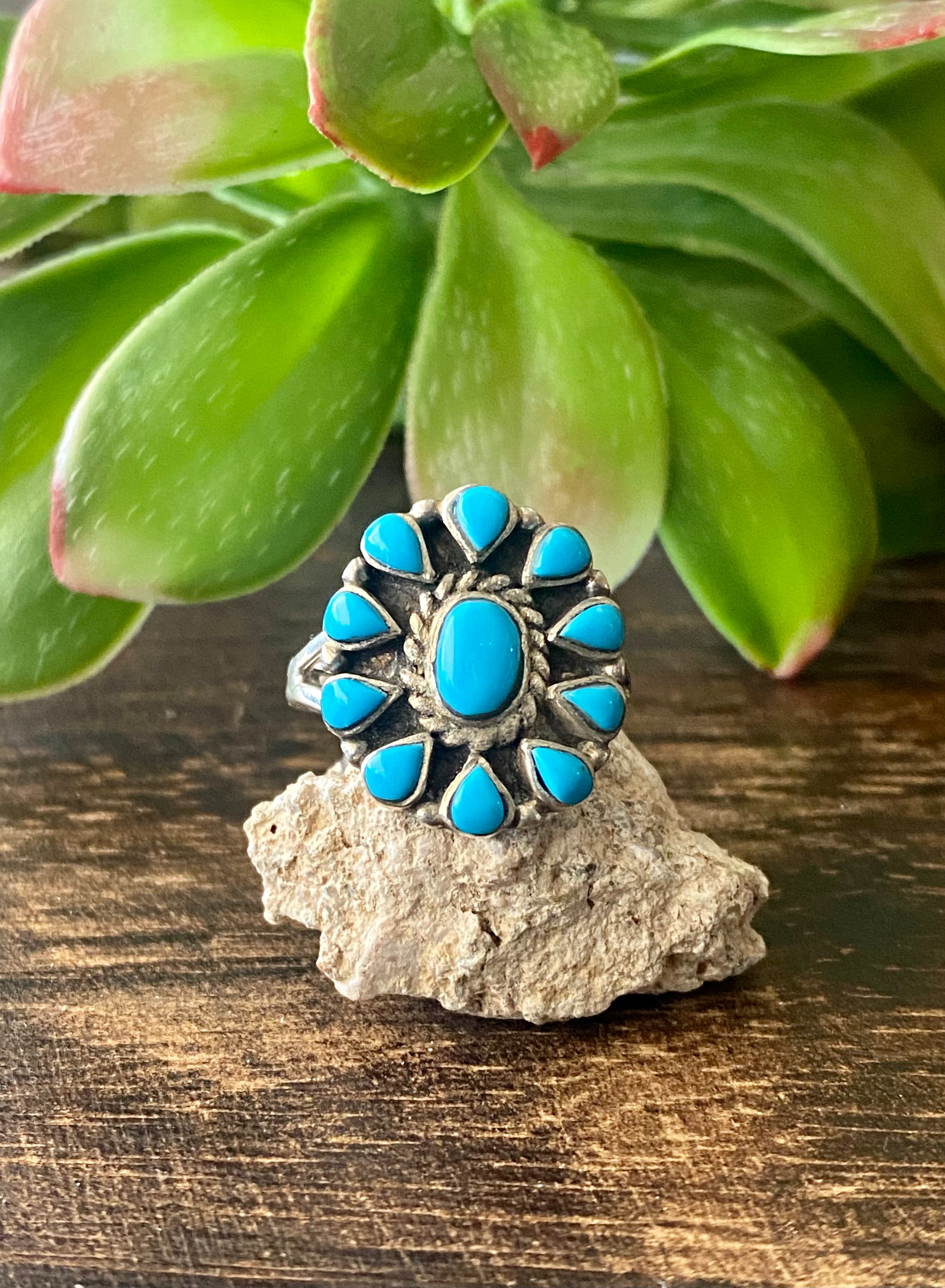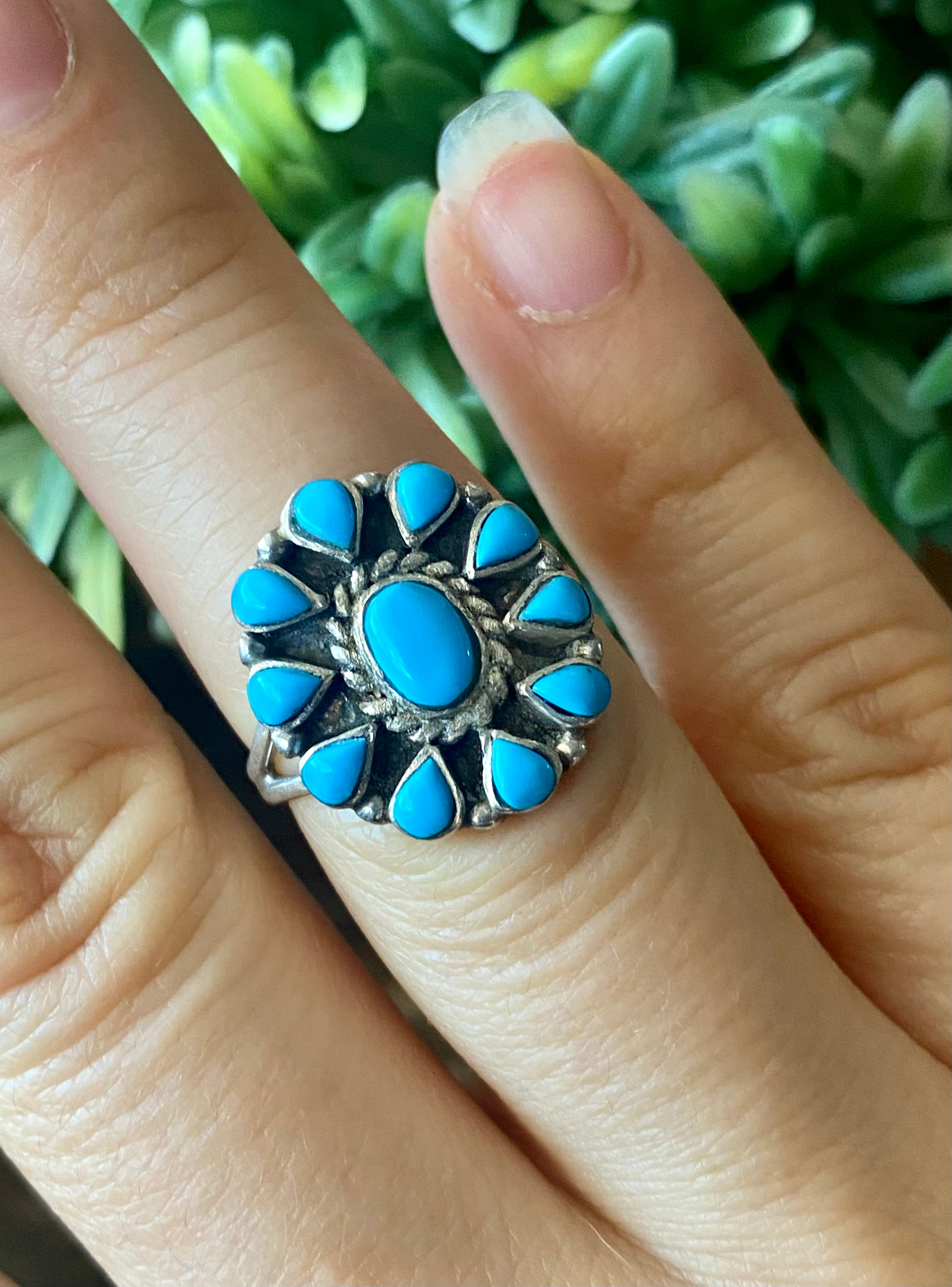 Southwest Handmade Sleeping Beauty Turquoise & Sterling Silver Ring Size 7