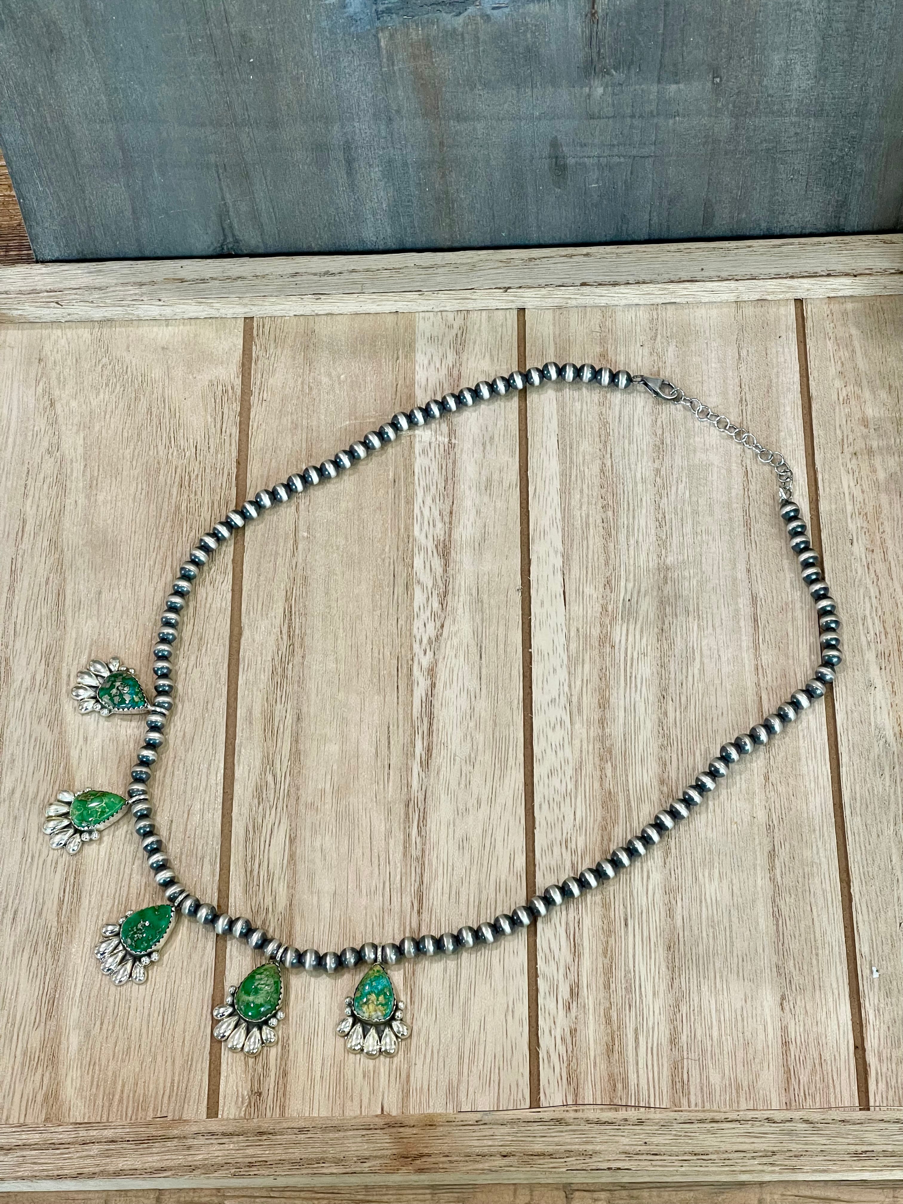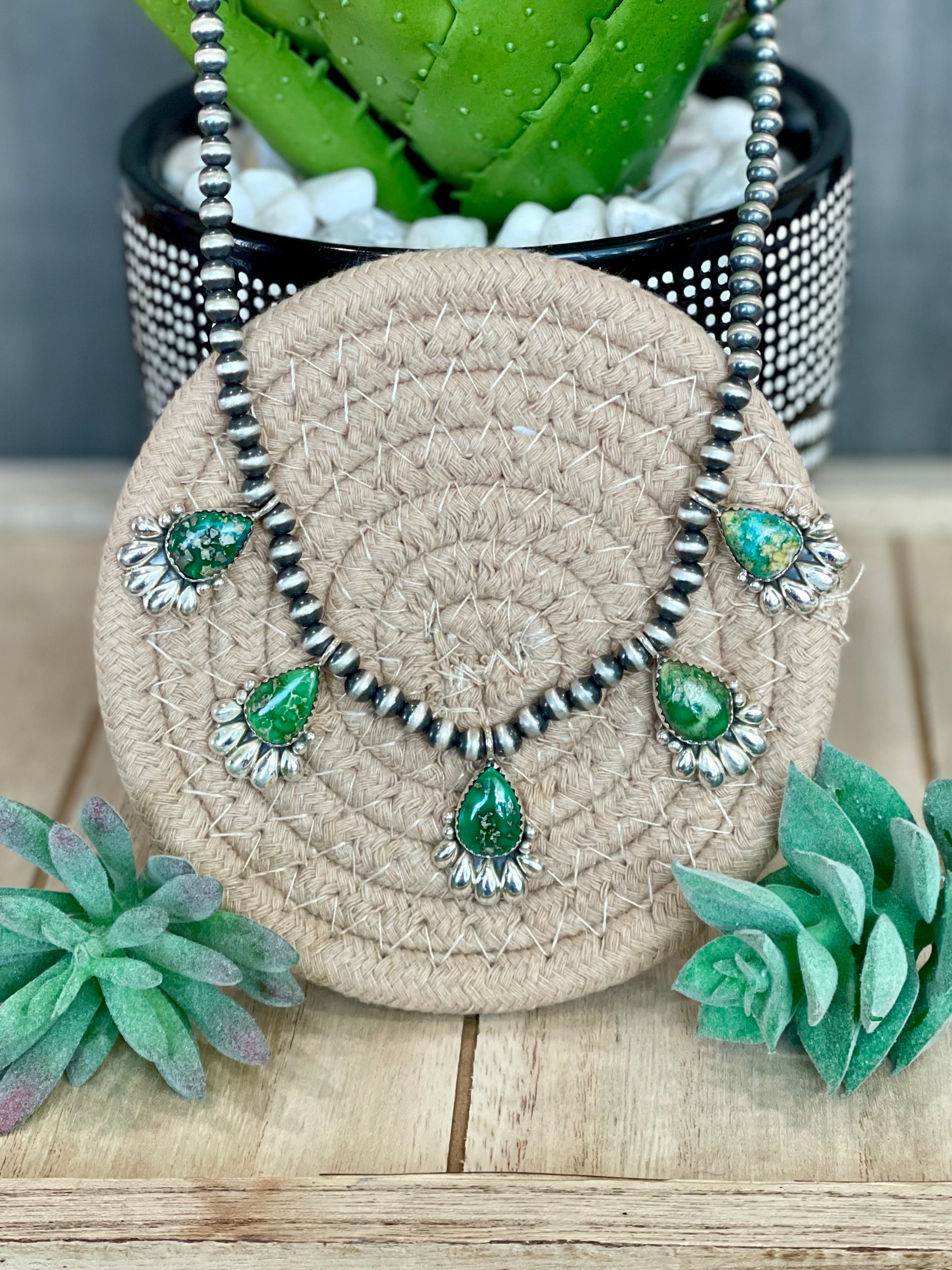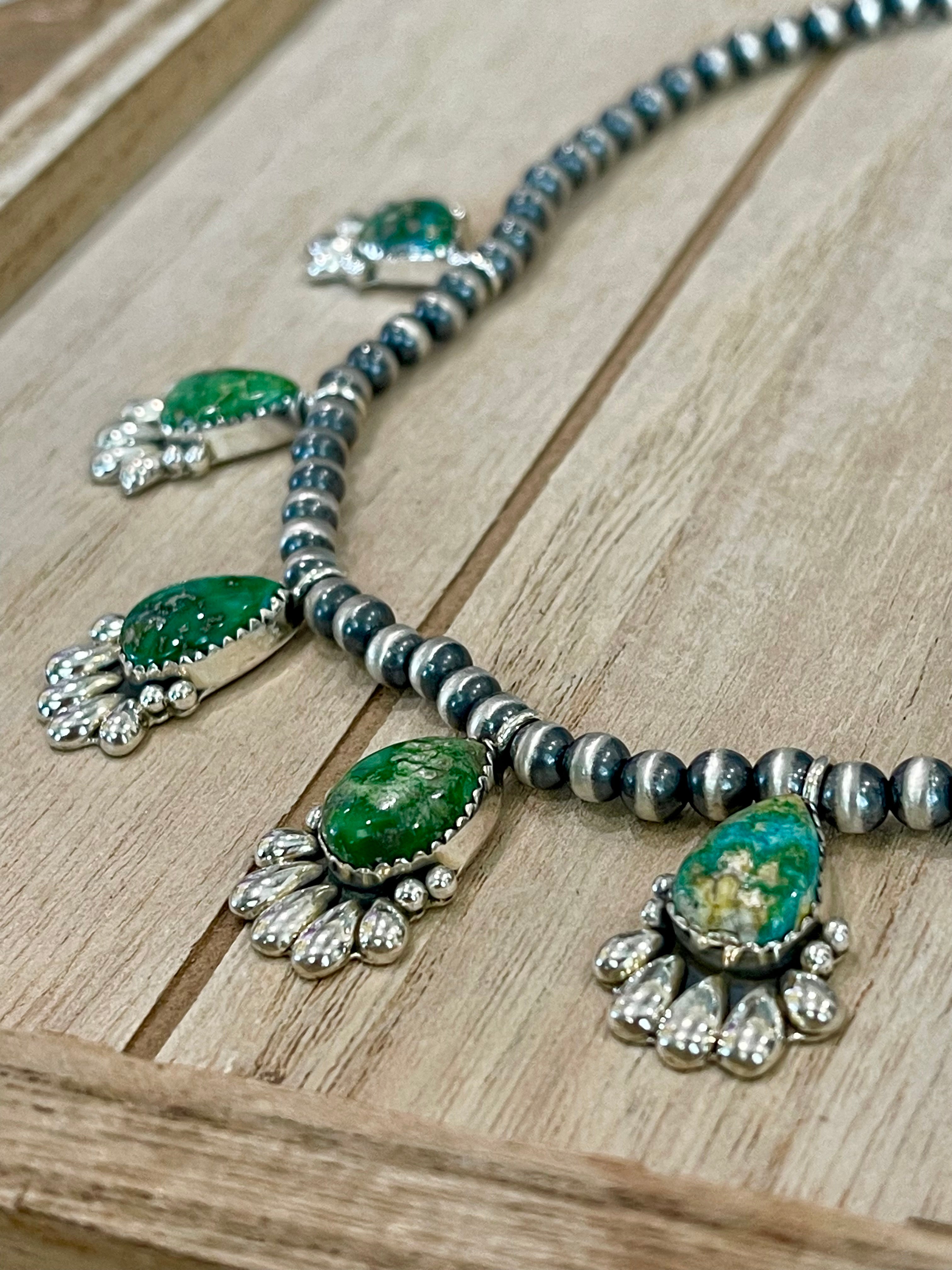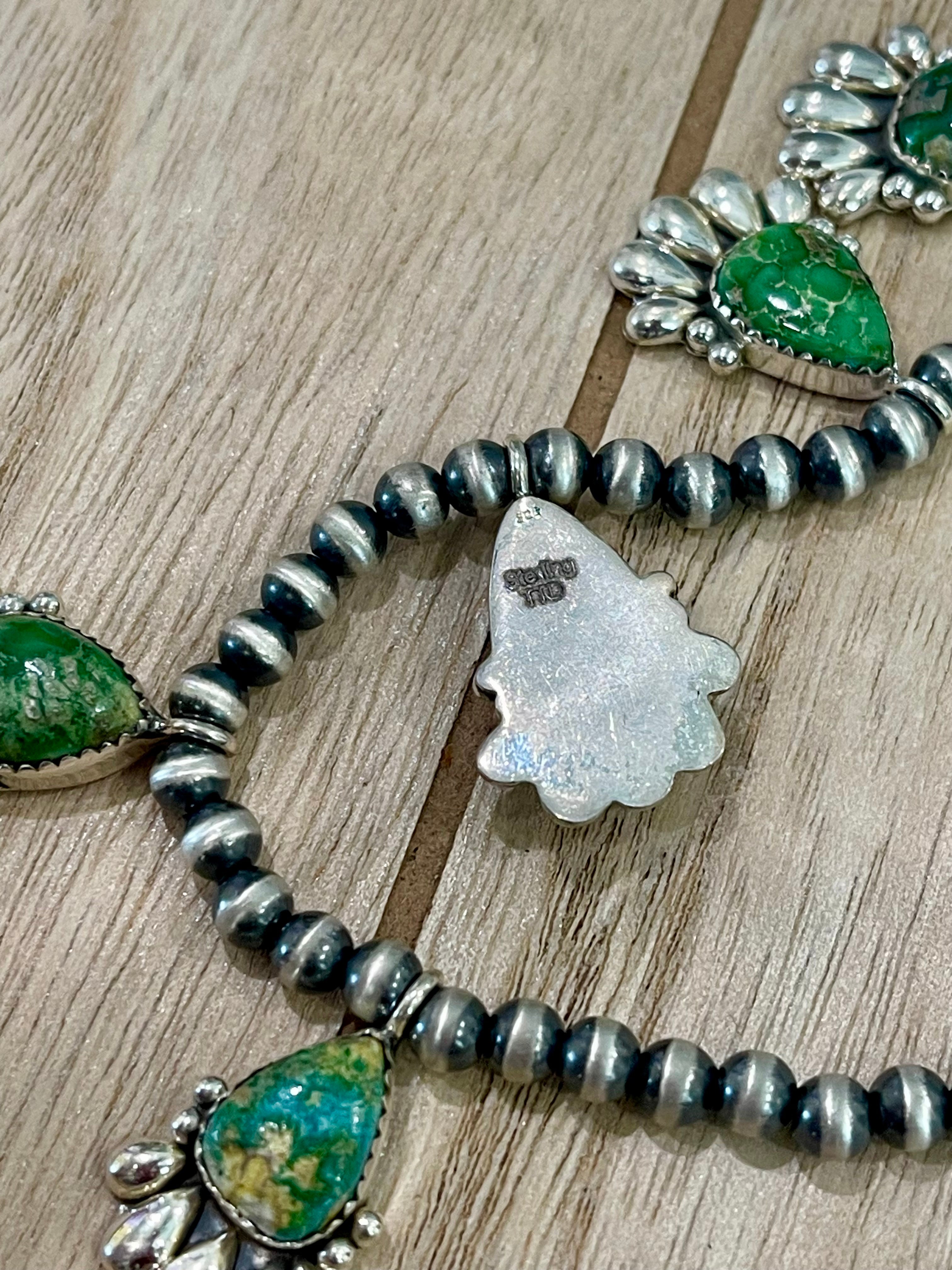 Southwest Handmade Sonoran Gold Turquoise & Sterling Silver 5 Stone Necklace