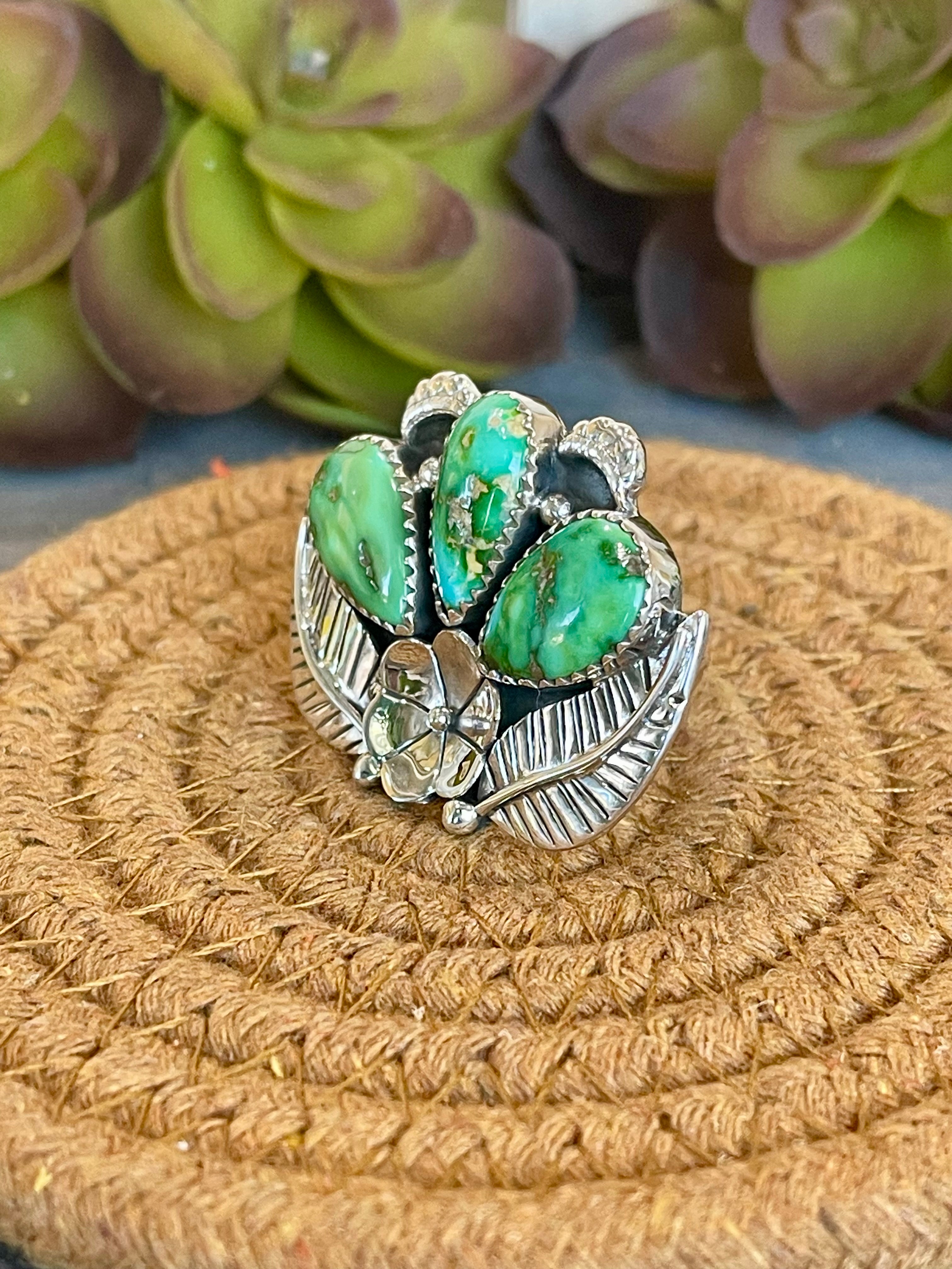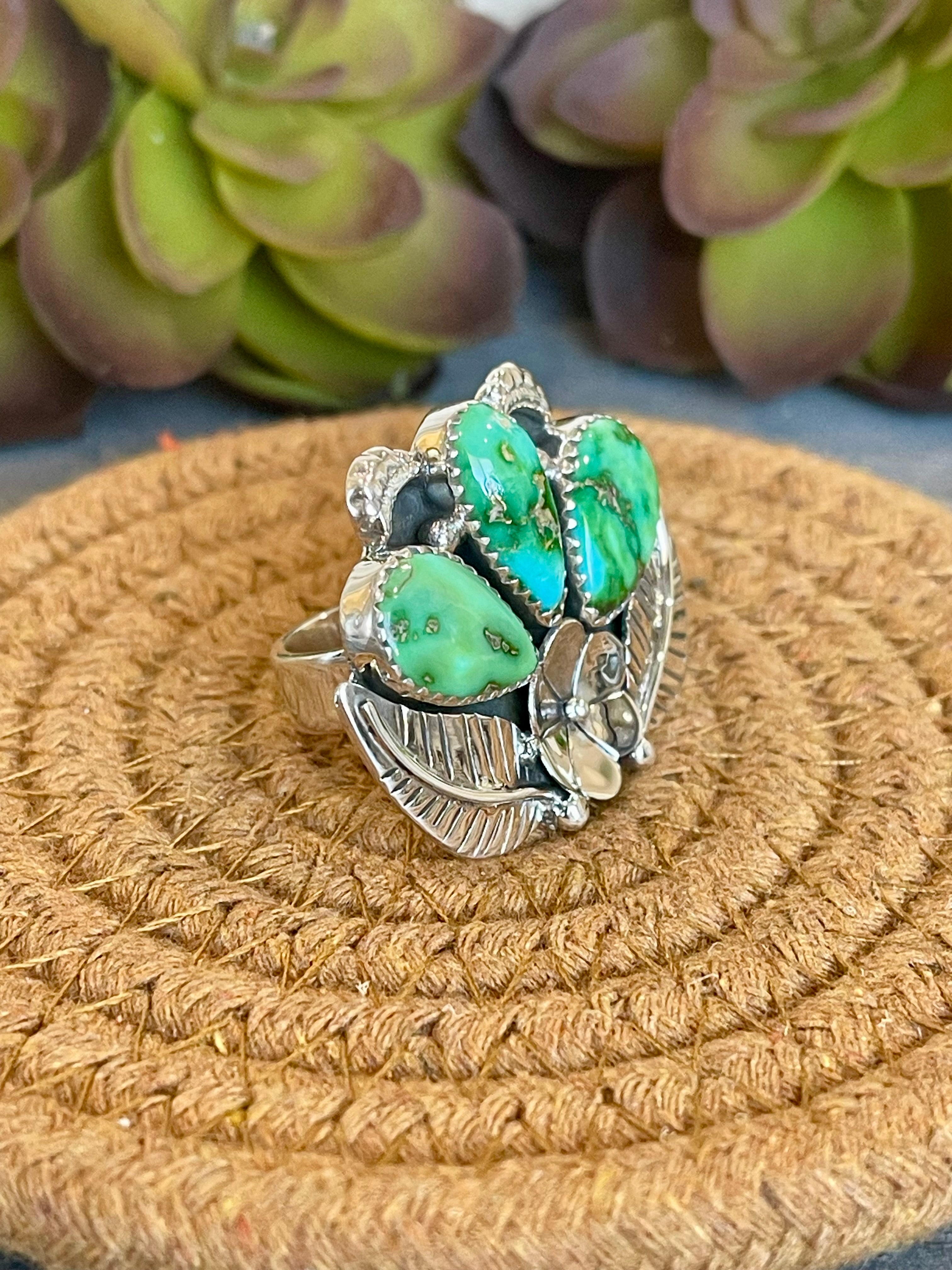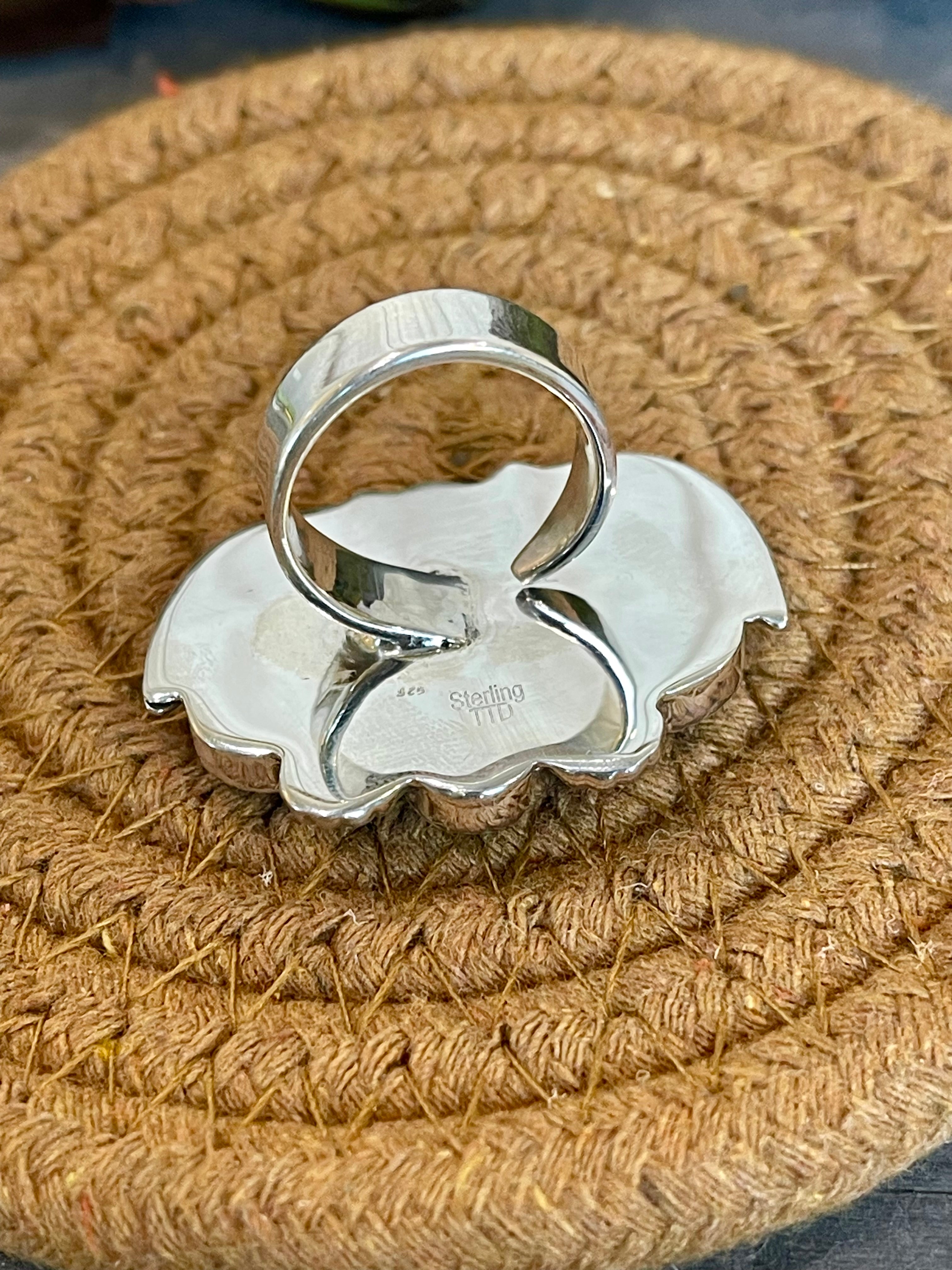Southwest Handmade Sonoran Mountain Turquoise & Sterling Silver Adjustable Flower Ring