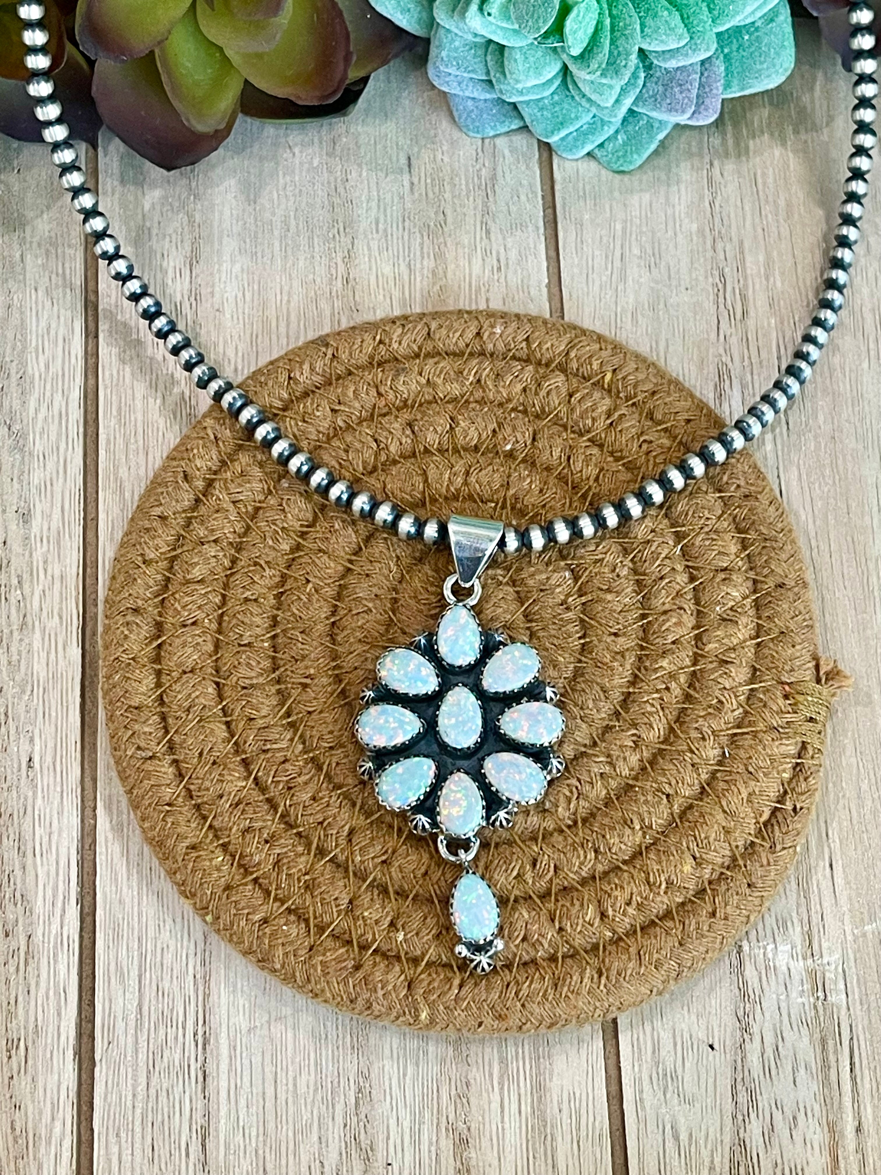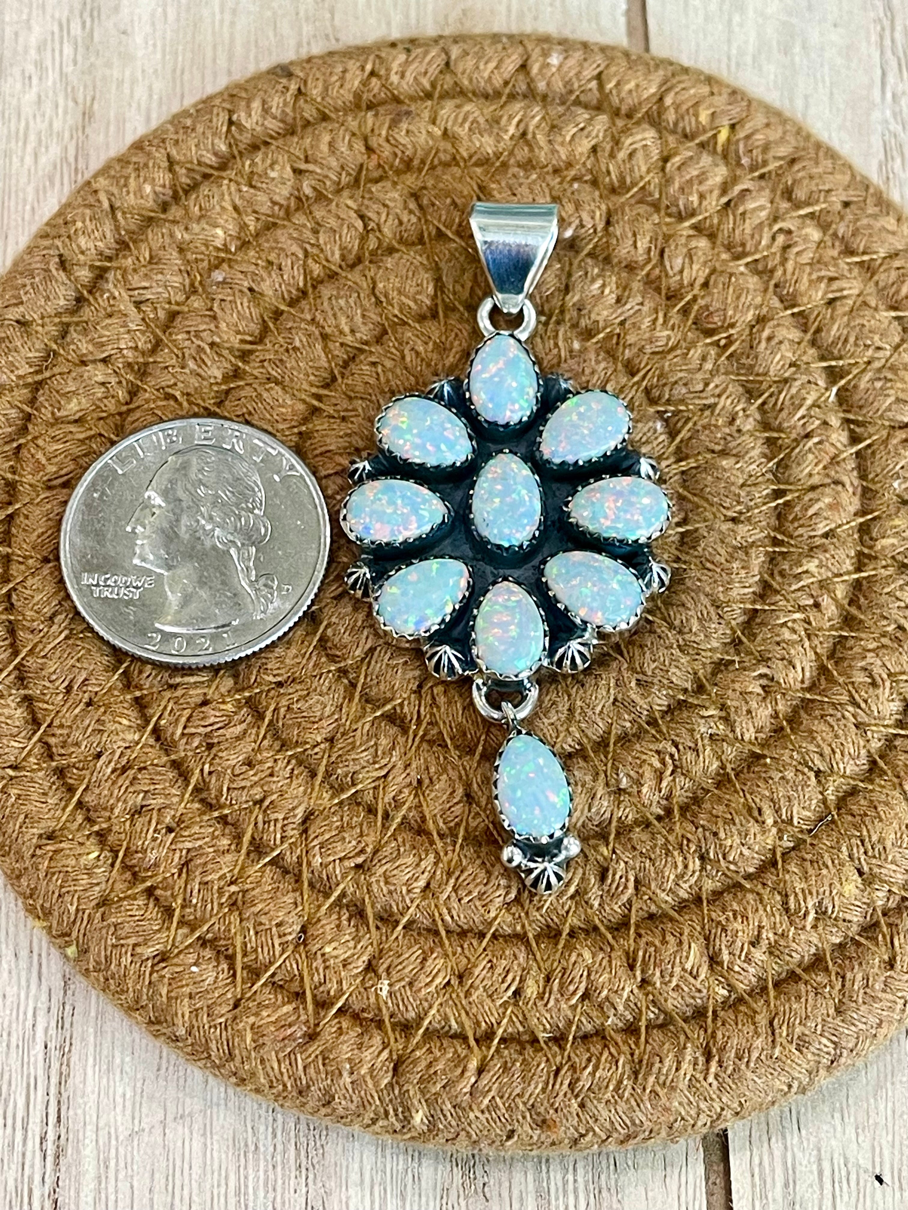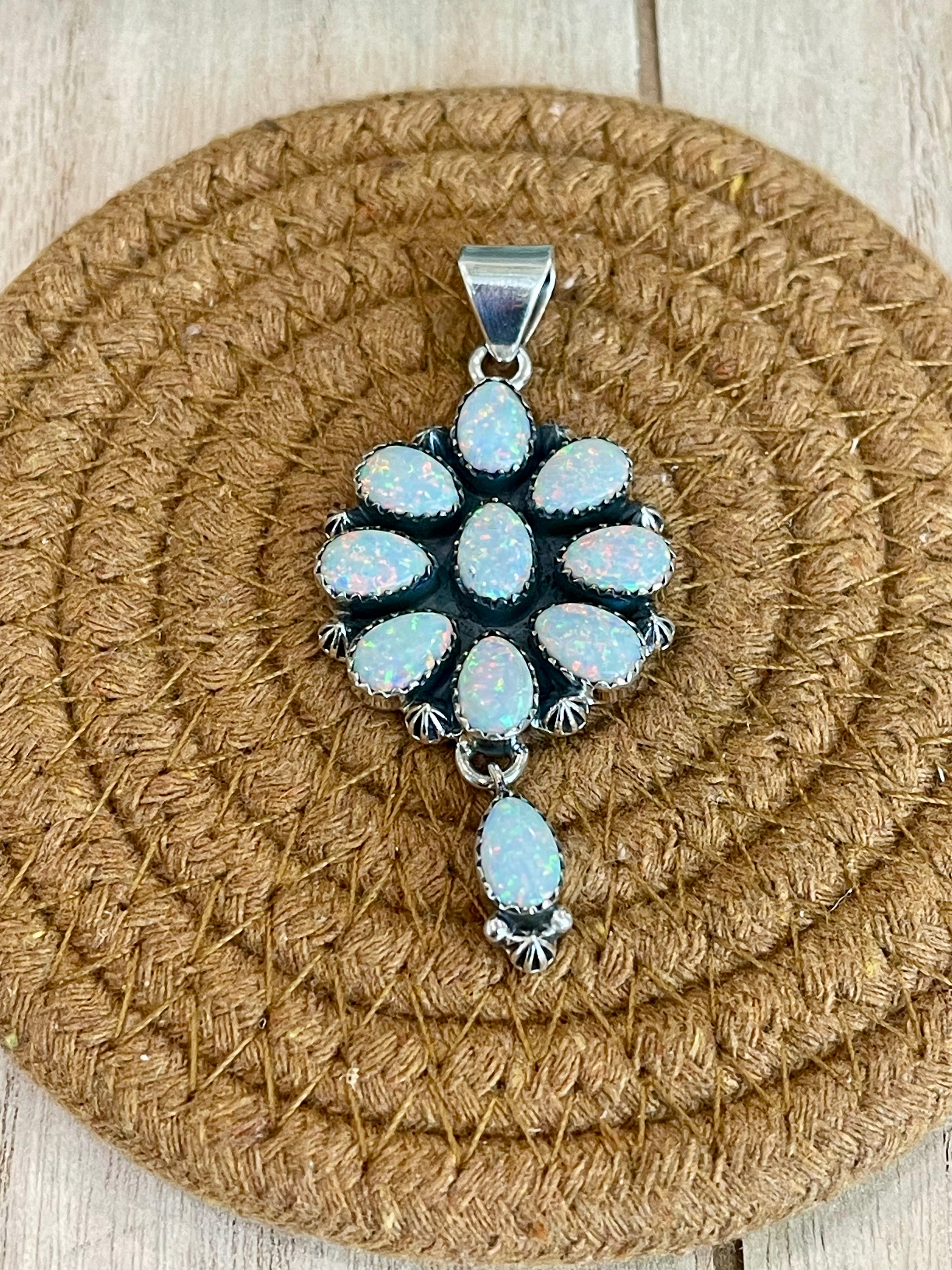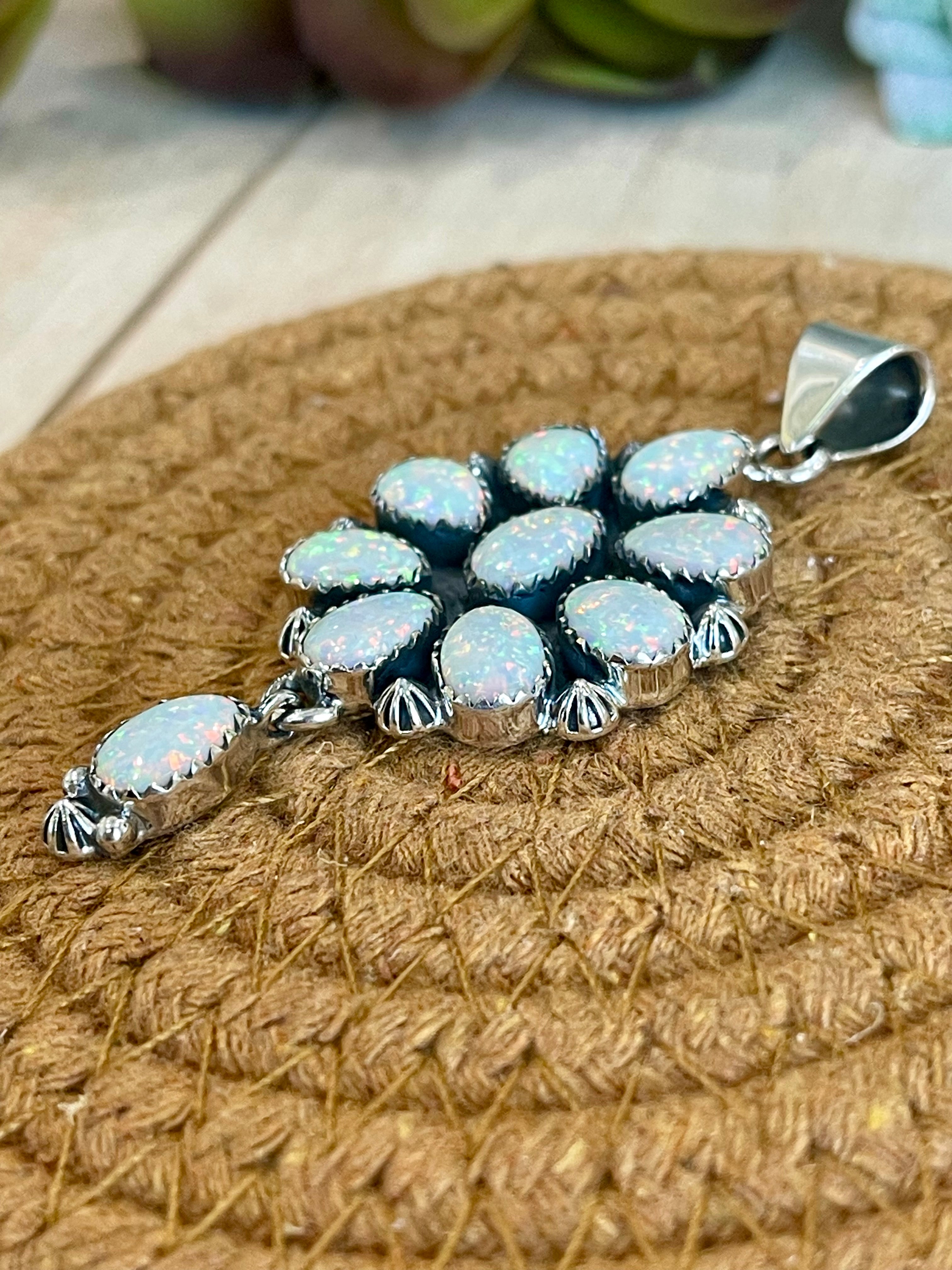 Southwest Handmade Opal & Sterling Silver Cluster Dangle Pendant