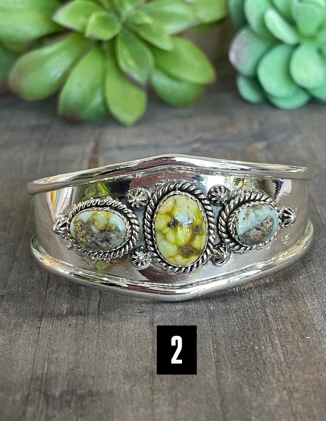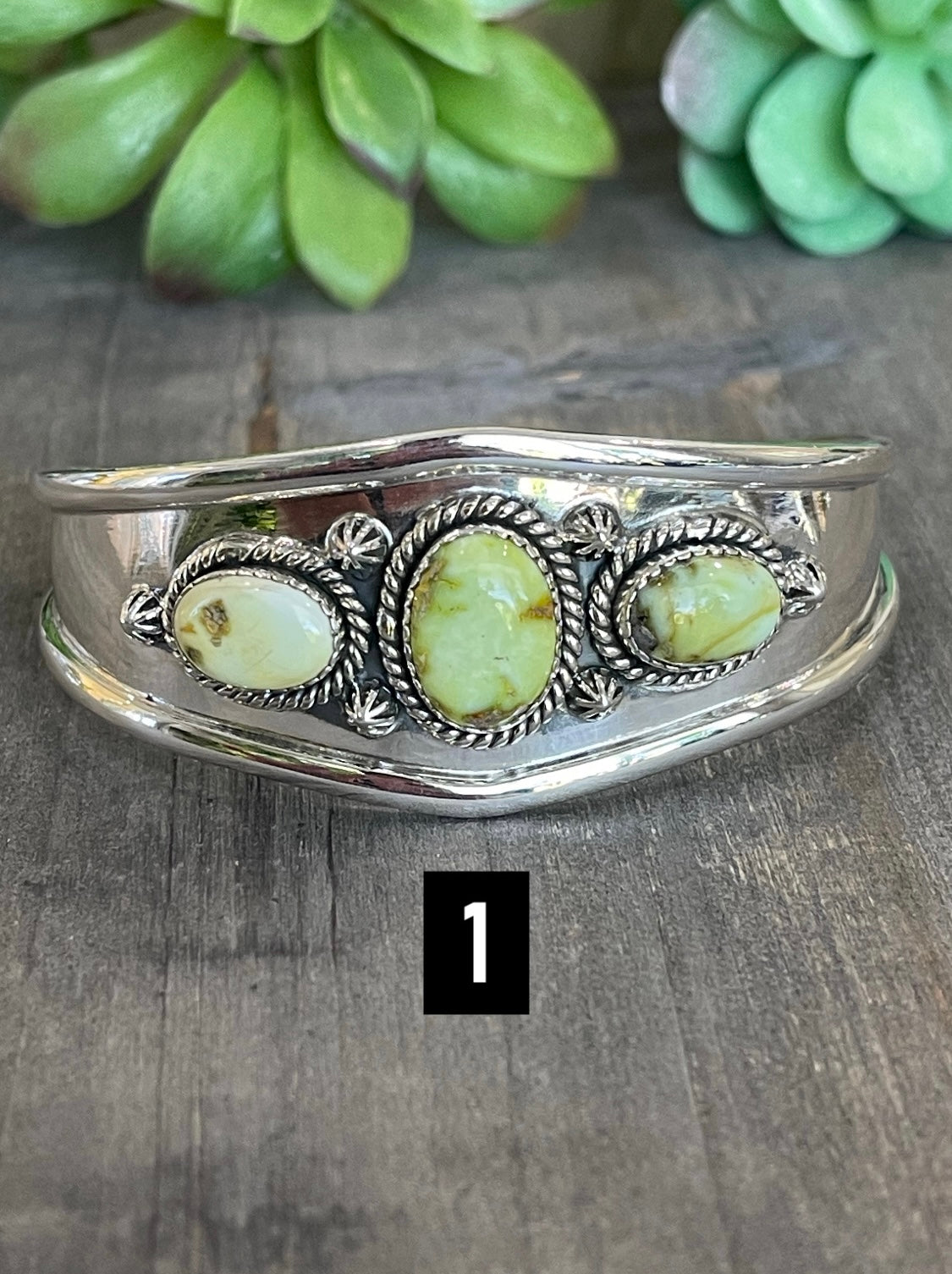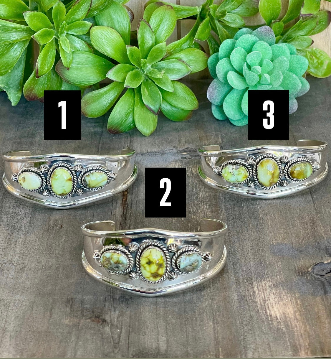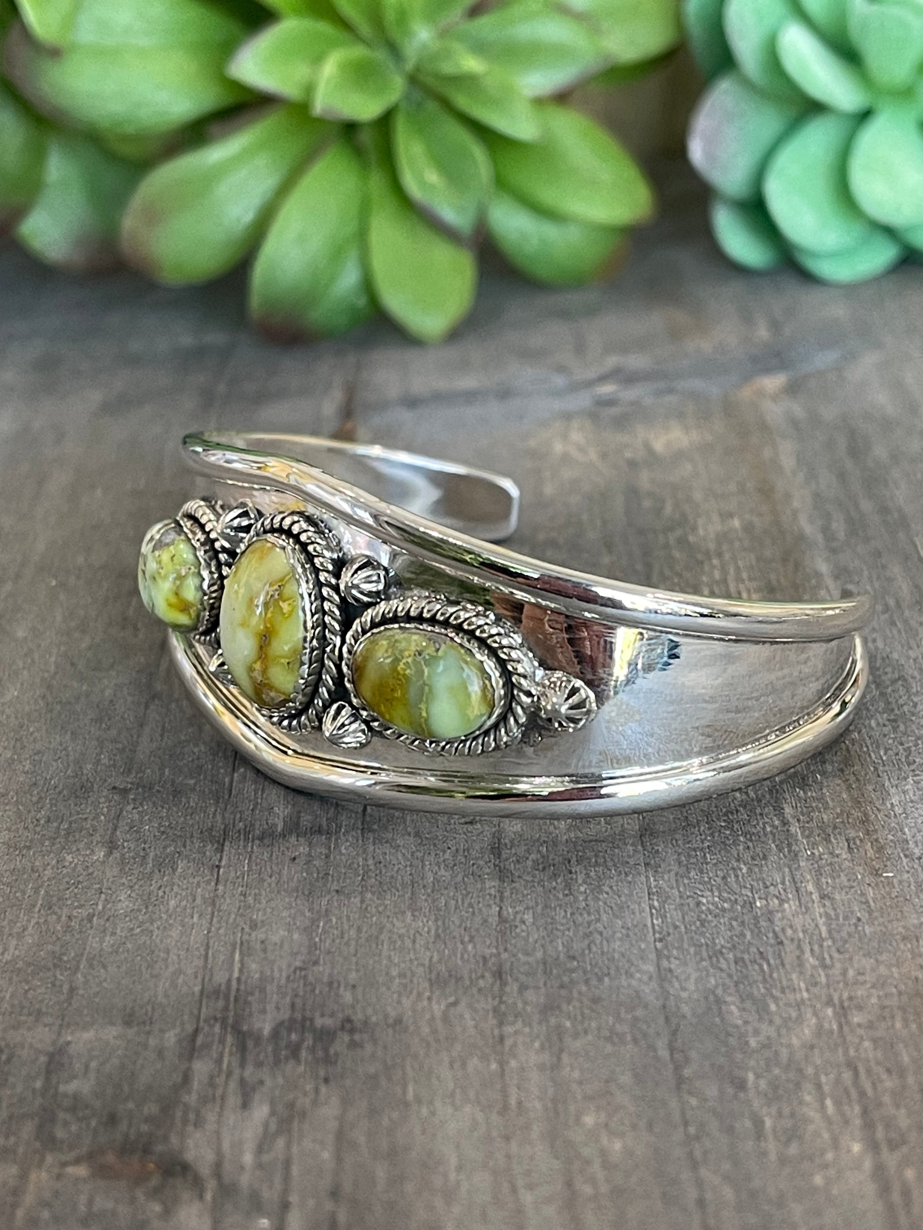 Southwest Handmade Palomino Variscite & Sterling Silver Cuff Bracelet