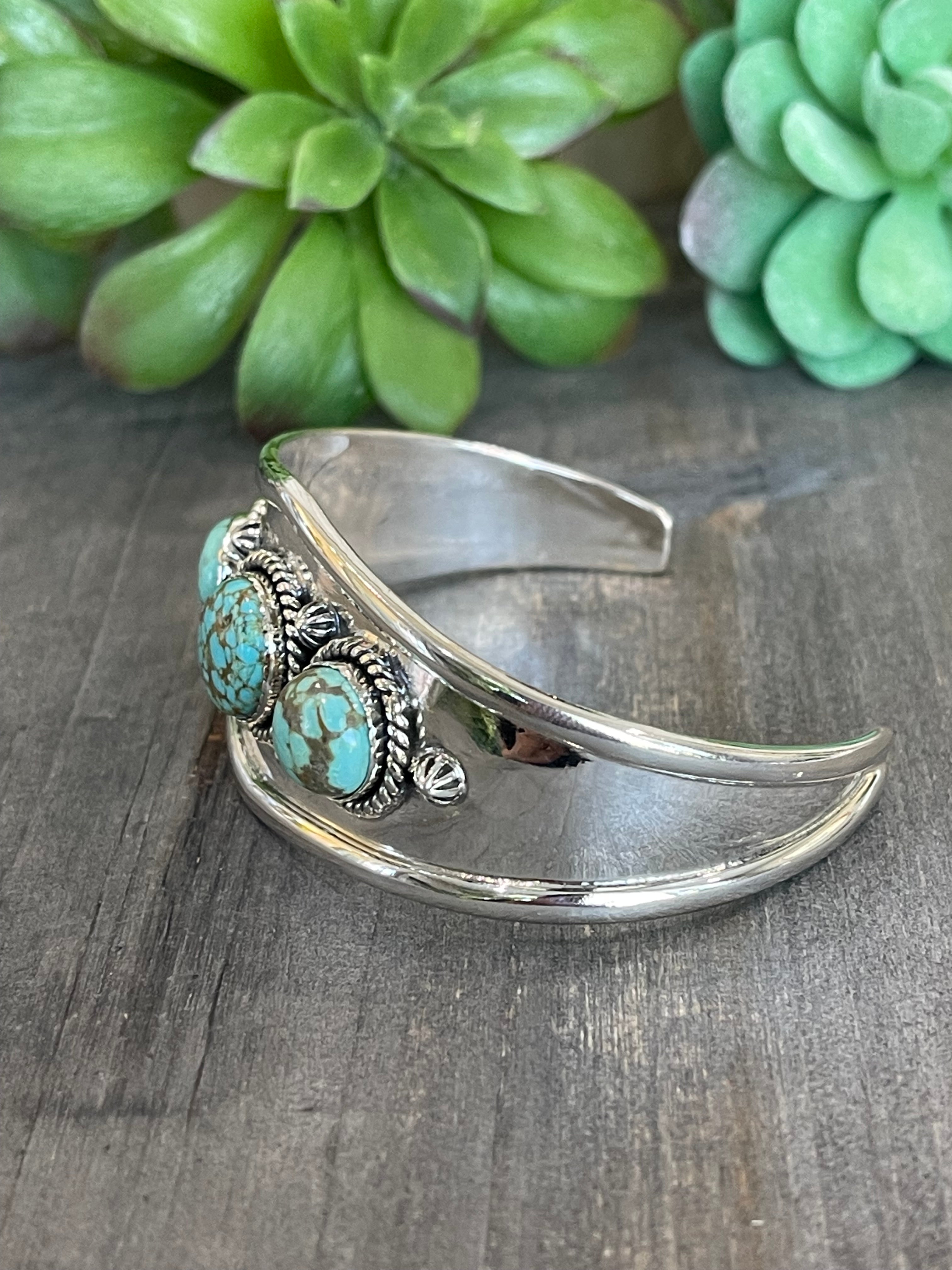 Southwest Handmade Number 8 Turquoise & Sterling Silver Cuff Bracelet
