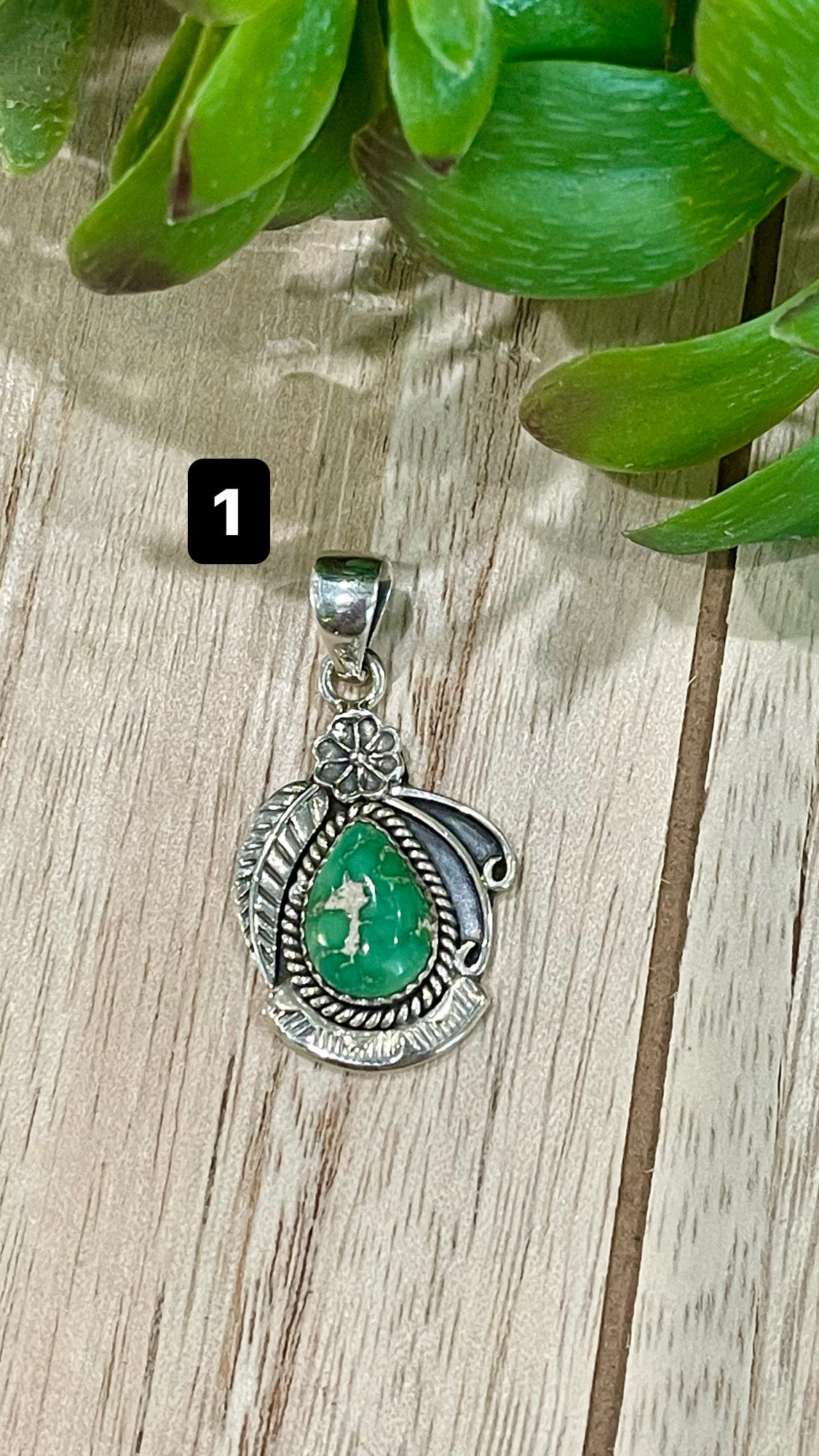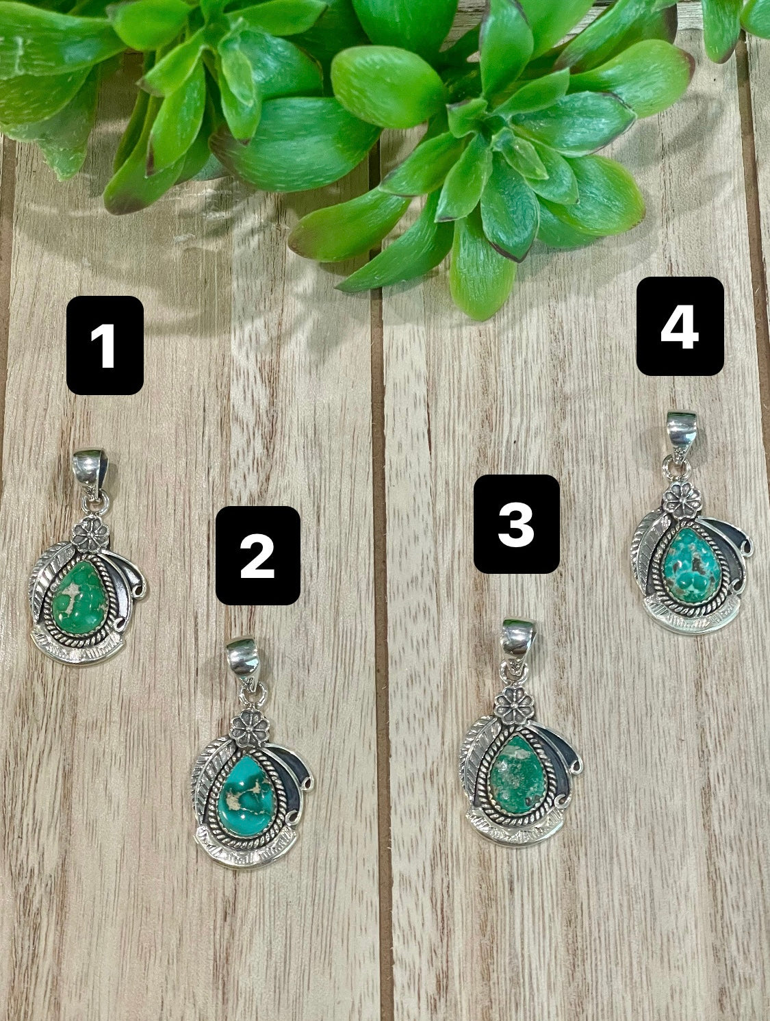 Beautiful Pendant. Southwest Made Sonoran Gold Turquoise & Sterling Silver Pendant. They measure just over 1 1/2 inches long and just under 7/8 of an inch wide. Signed by the artist and stamped sterling silver. Pendant Only. Thank you for checking out my store, if you have any questions please contact me!!