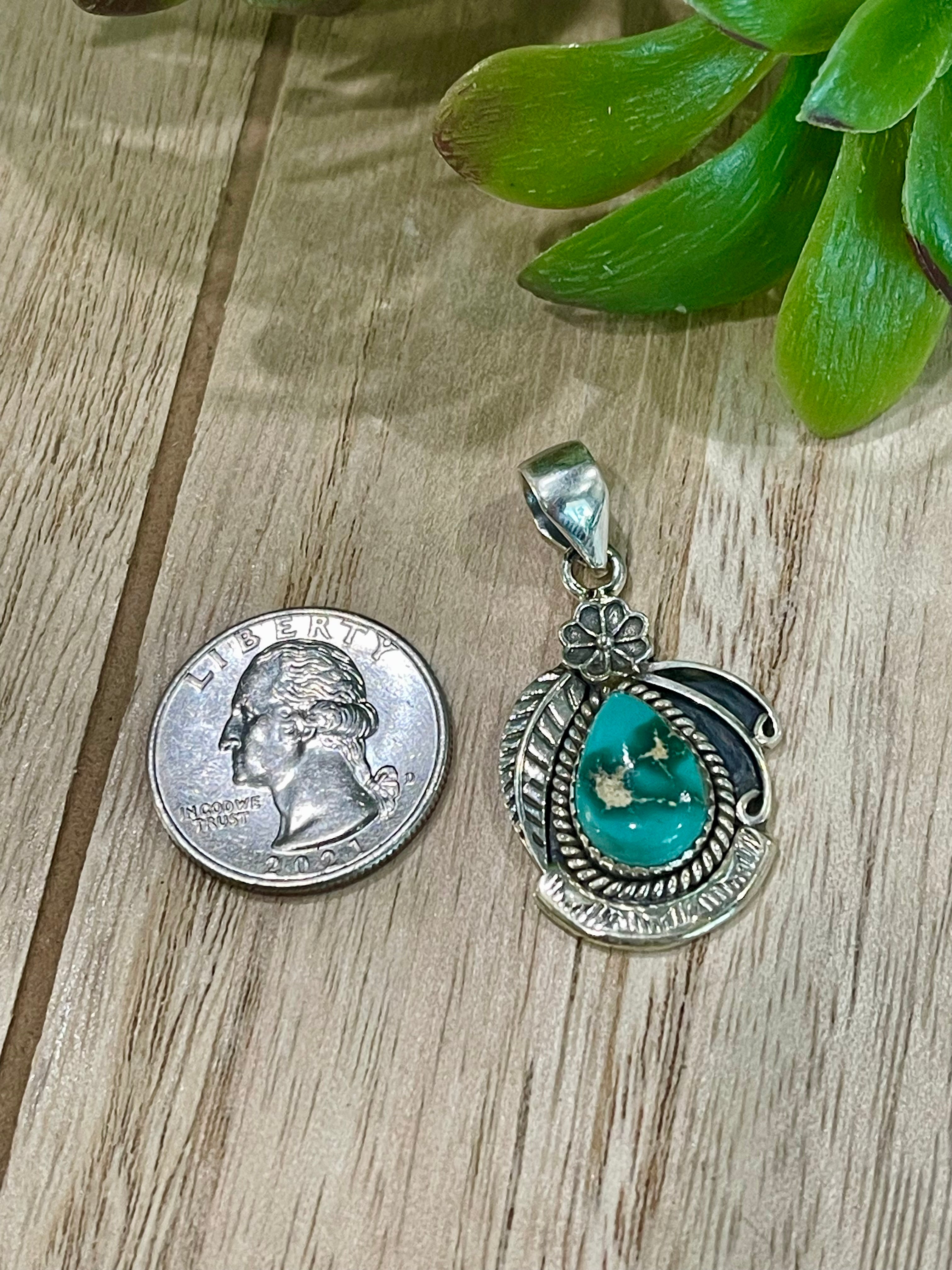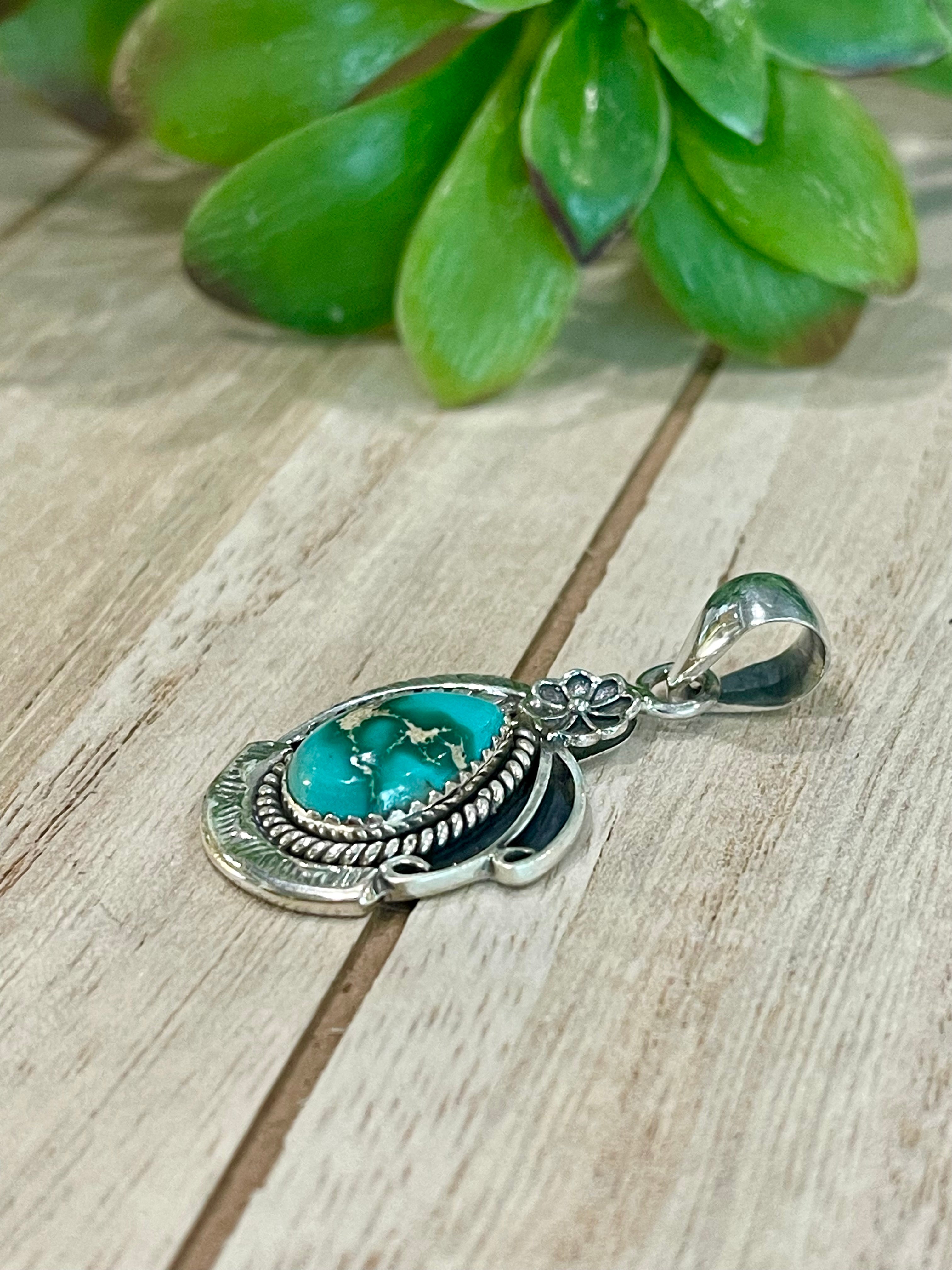 Southwest Handmade Sonoran Gold Turquoise & Sterling Silver Pendant