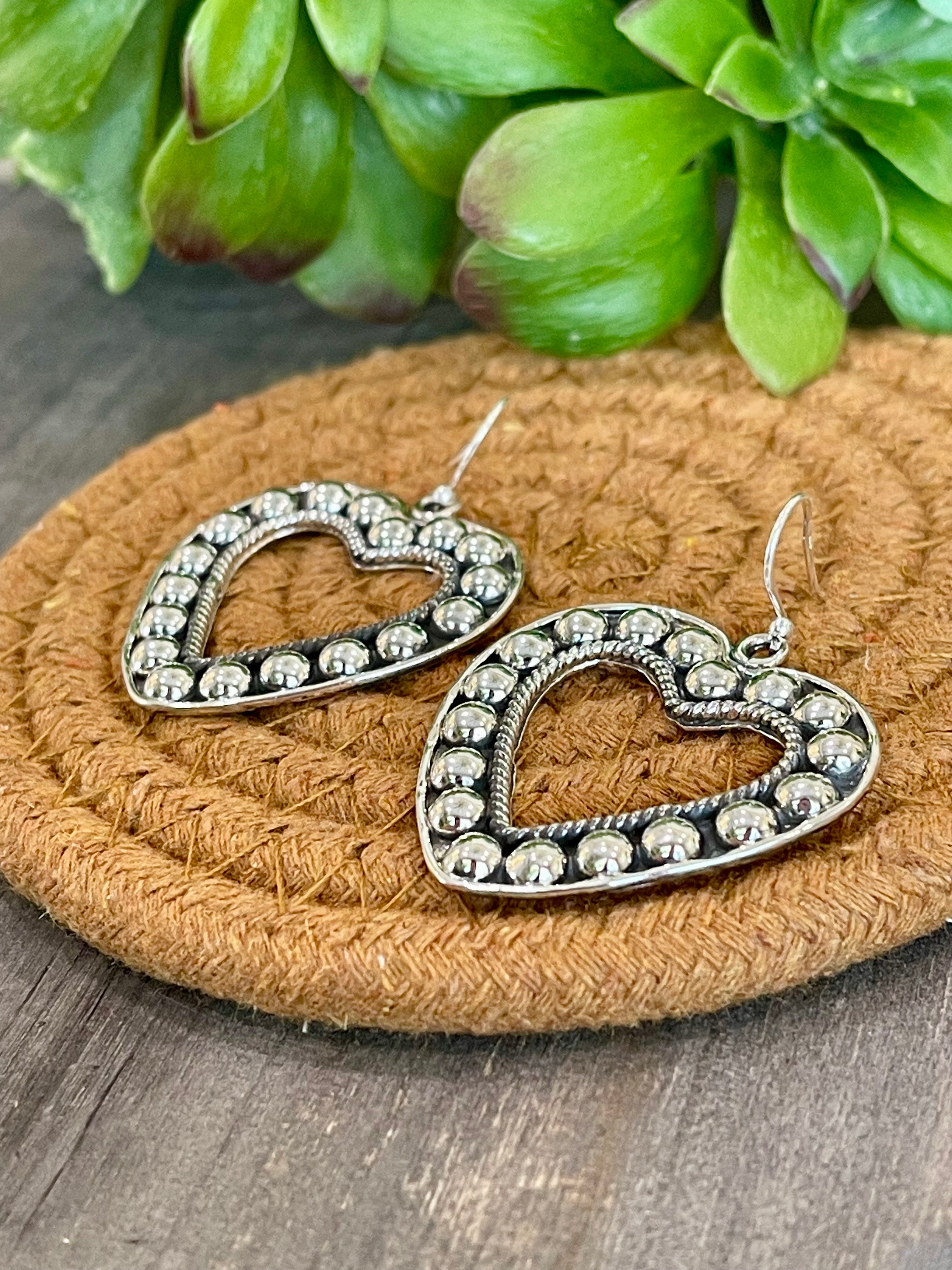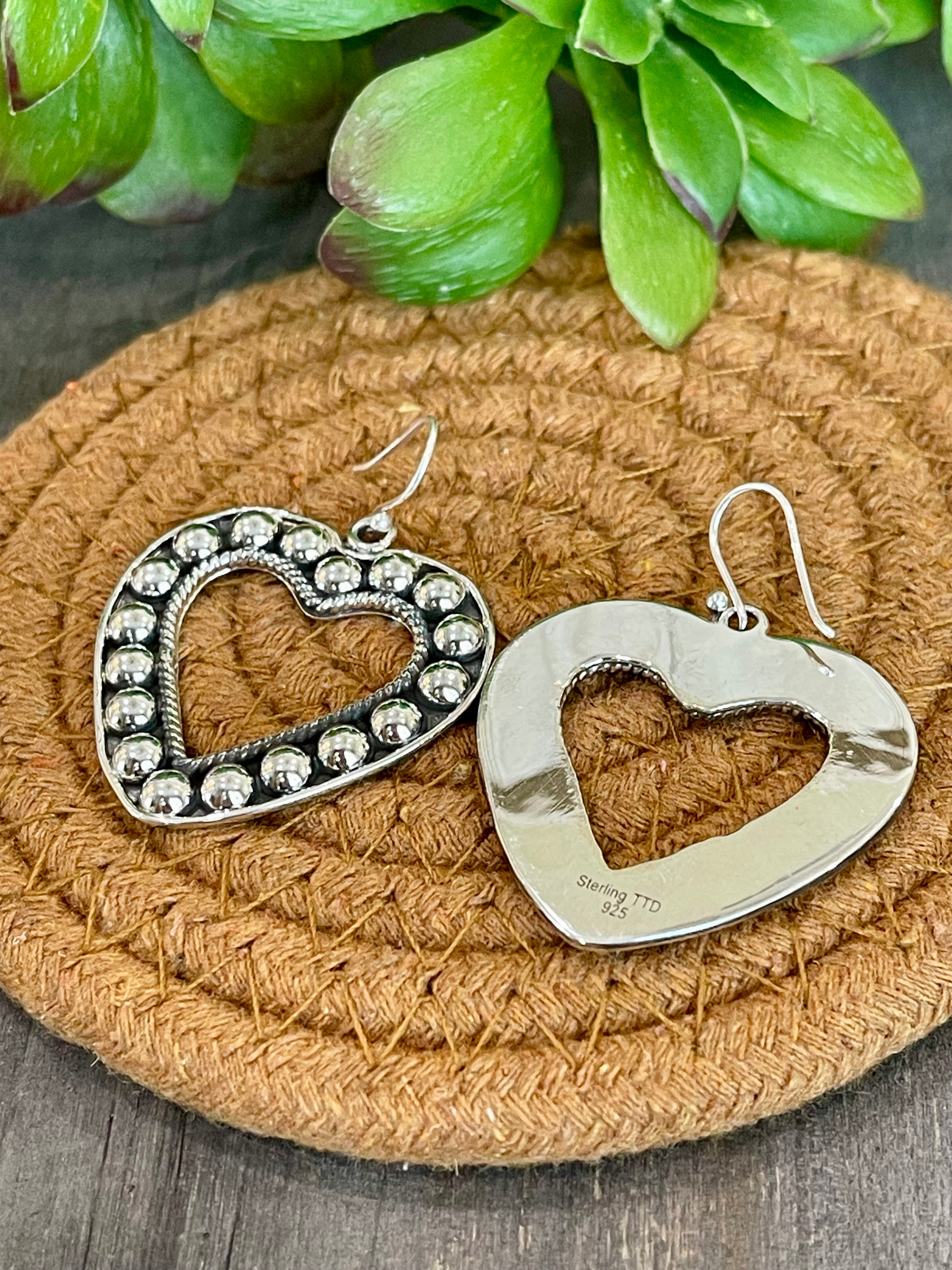 Southwest Handmade Sterling Silver Heart Dangle Earrings