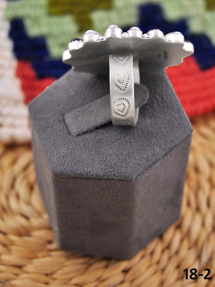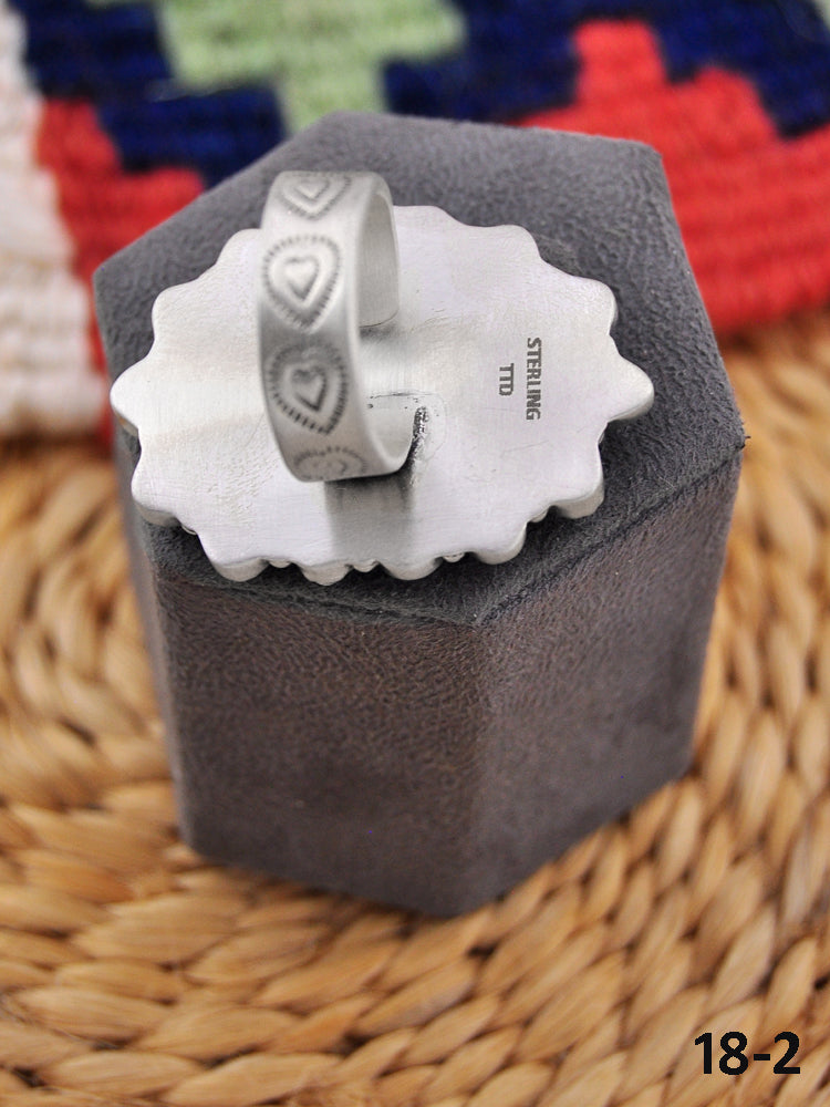 Southwest Made Multi Stone & Sterling Sliver Adjustable Ring. It measures 1 3/8 inch long and 1 1/8 inch wide.