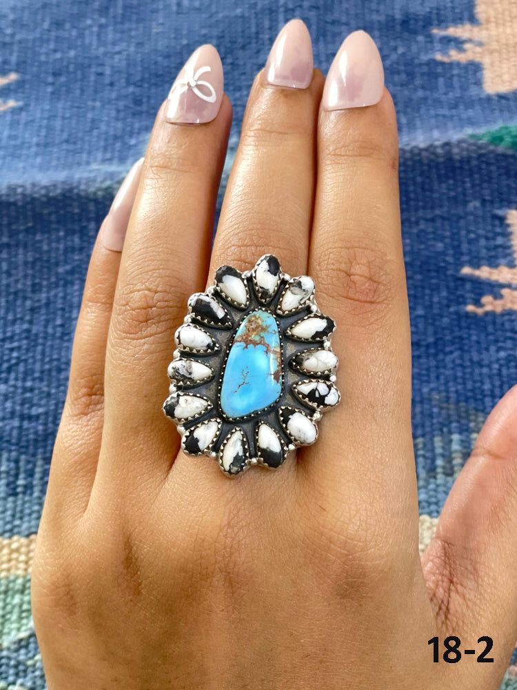 Southwest Handmade Multi Stone & Sterling Silver Adjustable Ring