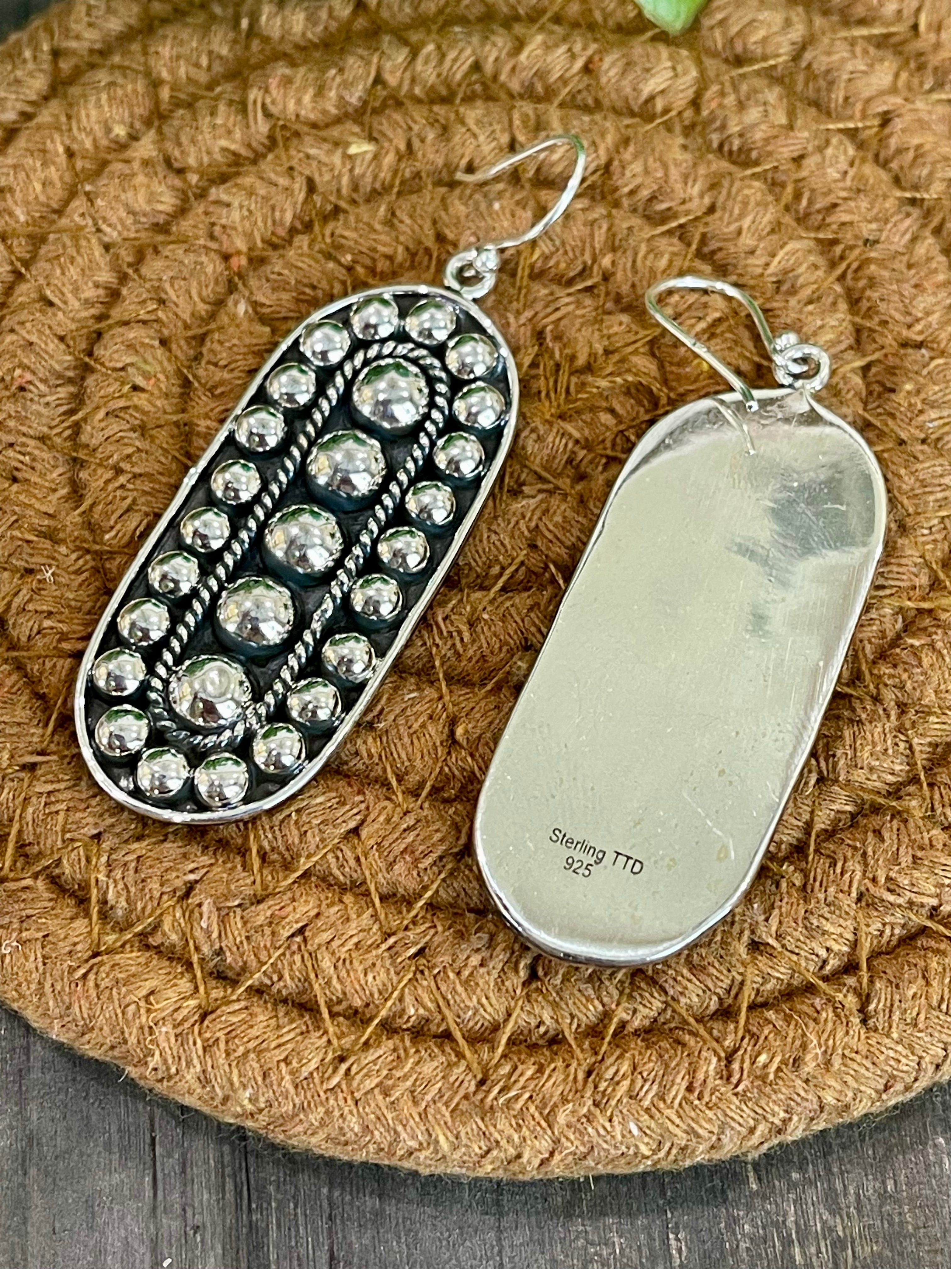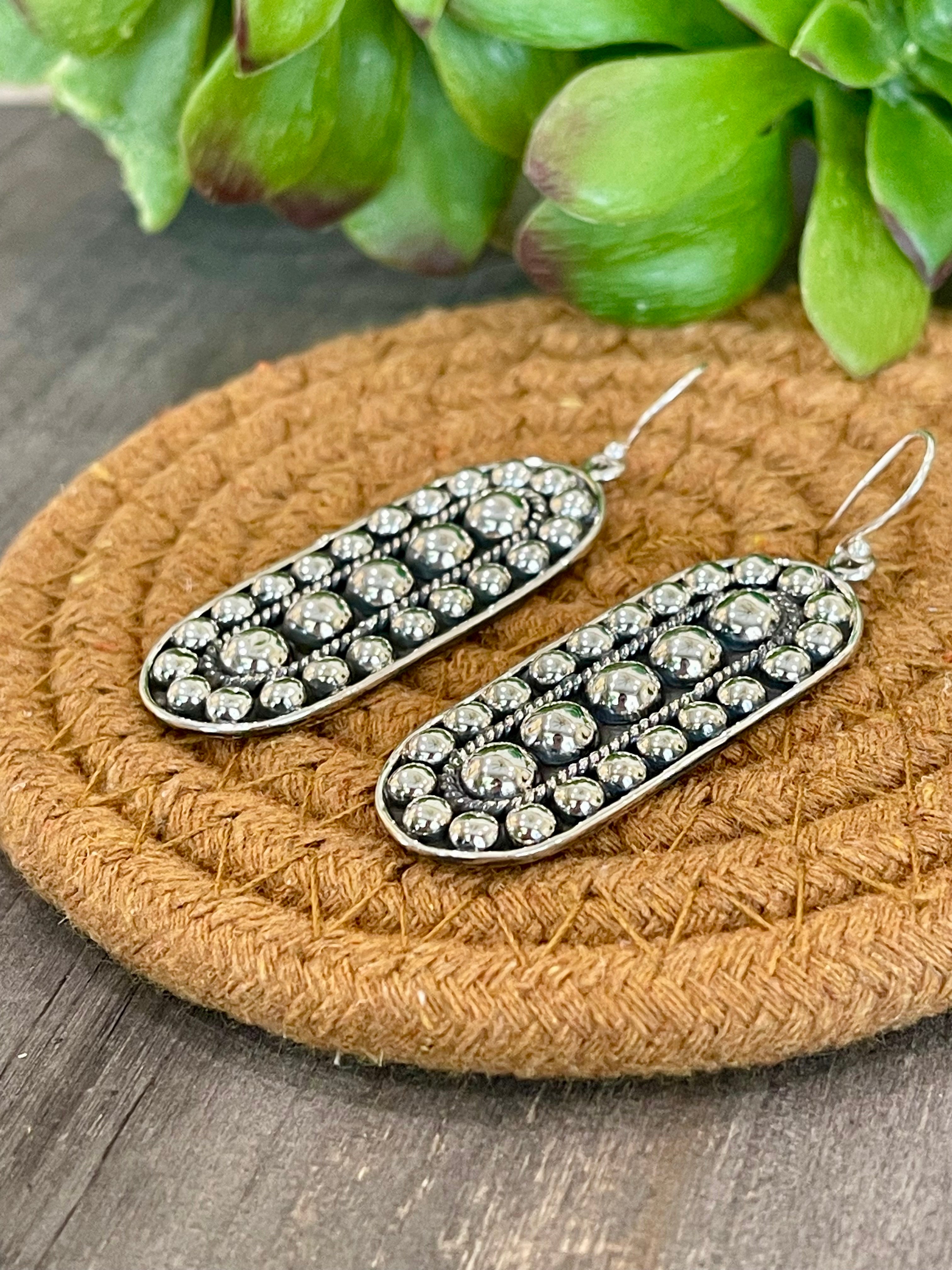 Southwest Handmade Sterling Silver Oval Dangle Earrings
