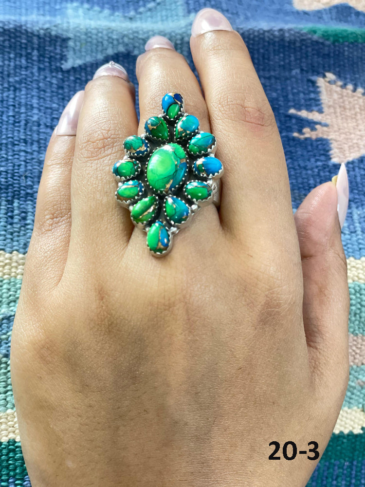 Southwest Handmade Peacock Dahlia & Sterling Silver Adjustable Ring