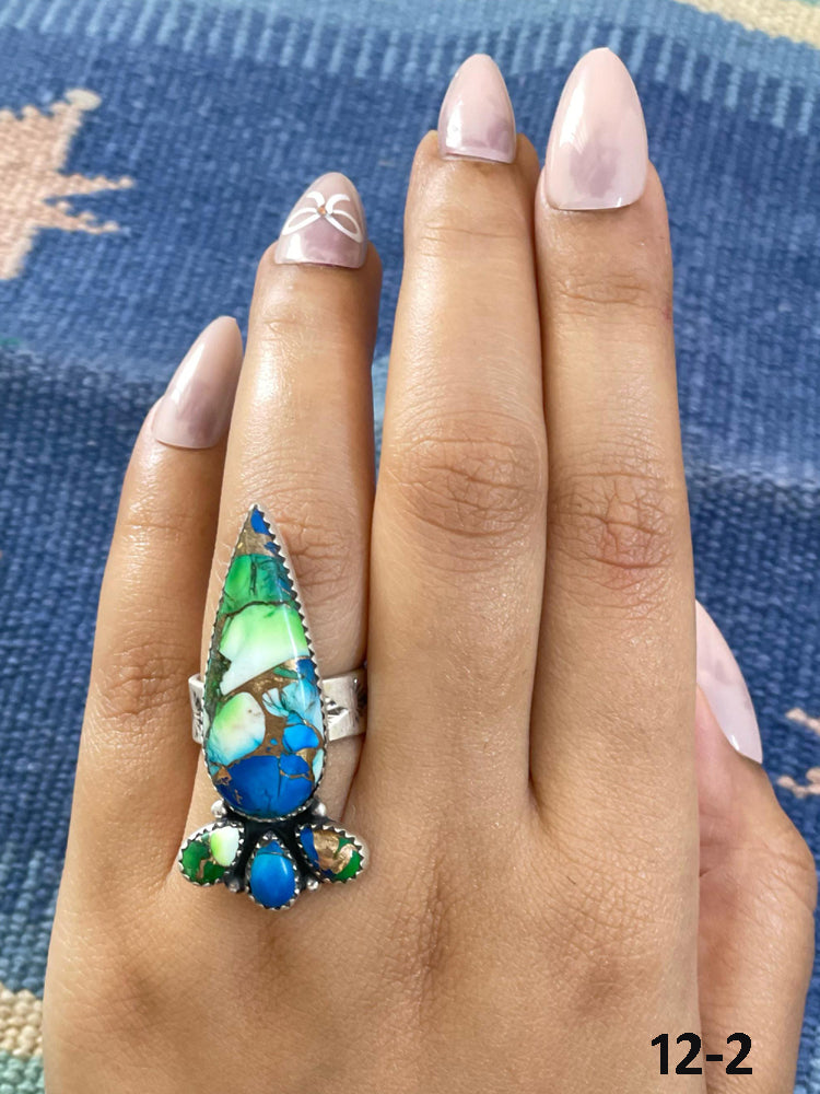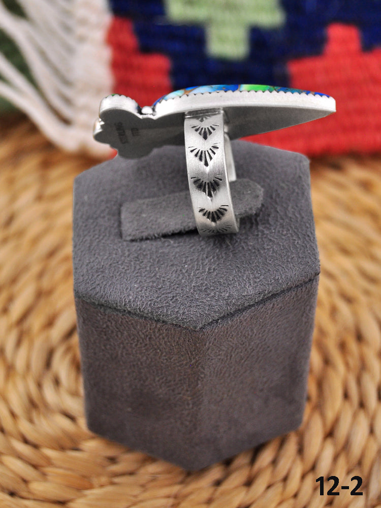 Southwest Handmade Peacock Dahlia & Sterling Silver Adjustable Ring