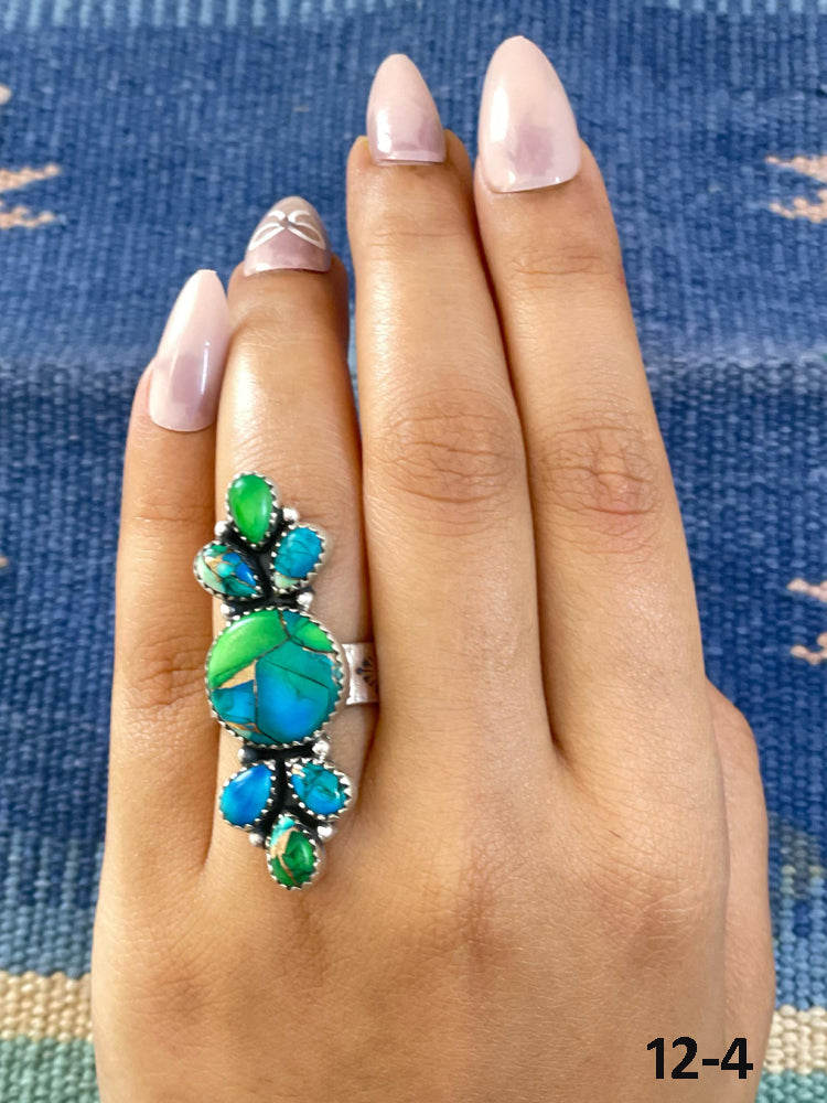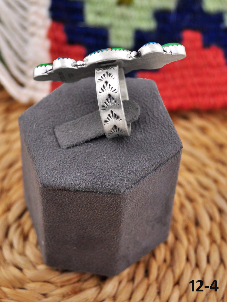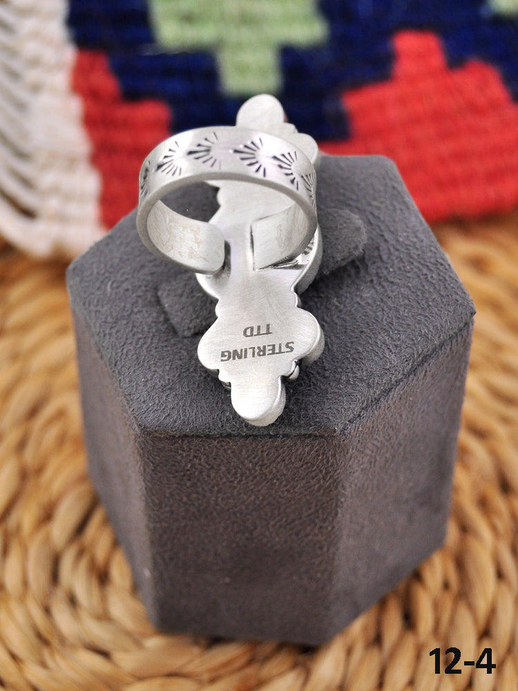 Southwest Handmade Peacock Dahlia & Sterling Silver Adjustable Ring