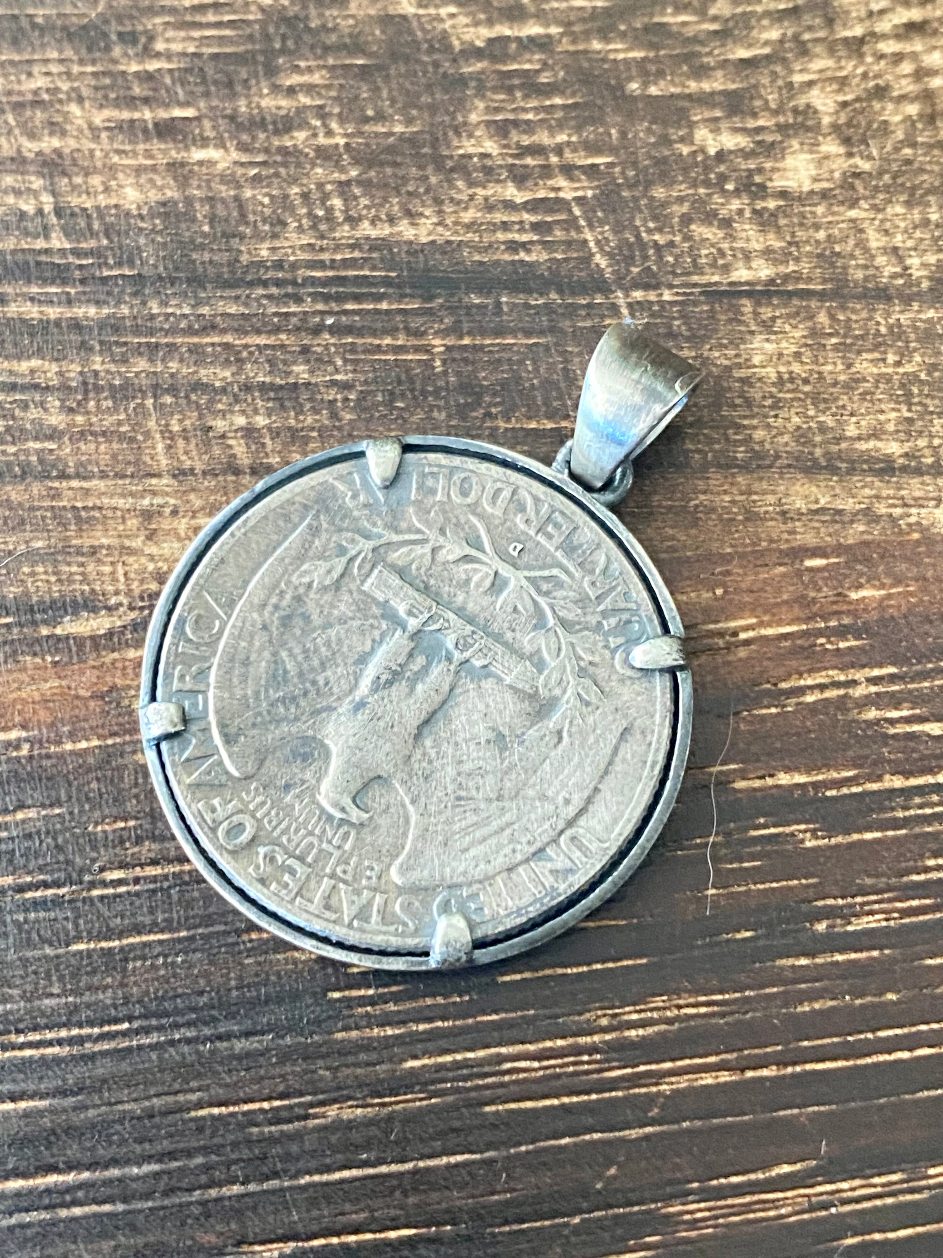 Southwest Handmade Sterling Silver Quarter Pendant. They measure 1 3/8 inches long and 1 inch wide. Pendant Only!! Stamped sterling silver.