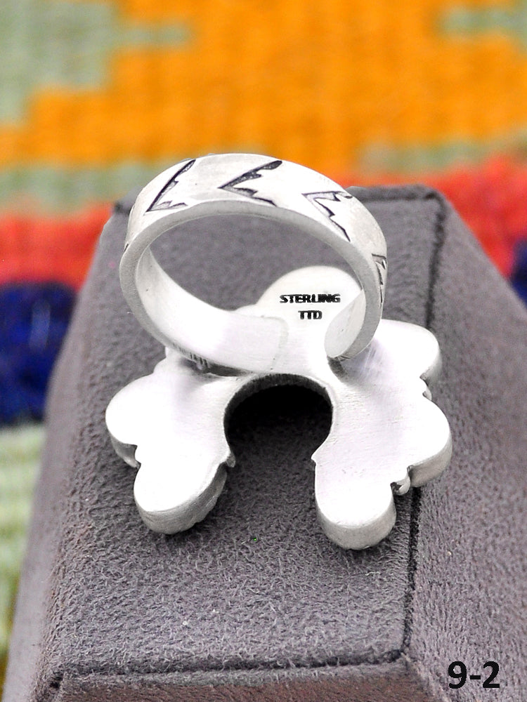 Beautiful rings! Southwest Handmade White Buffalo & Sterling Silver Adjustable Naja Ring. It measures 1 inches long and just under 1 inch wide. Signed by the artist and stamped sterling silver.
