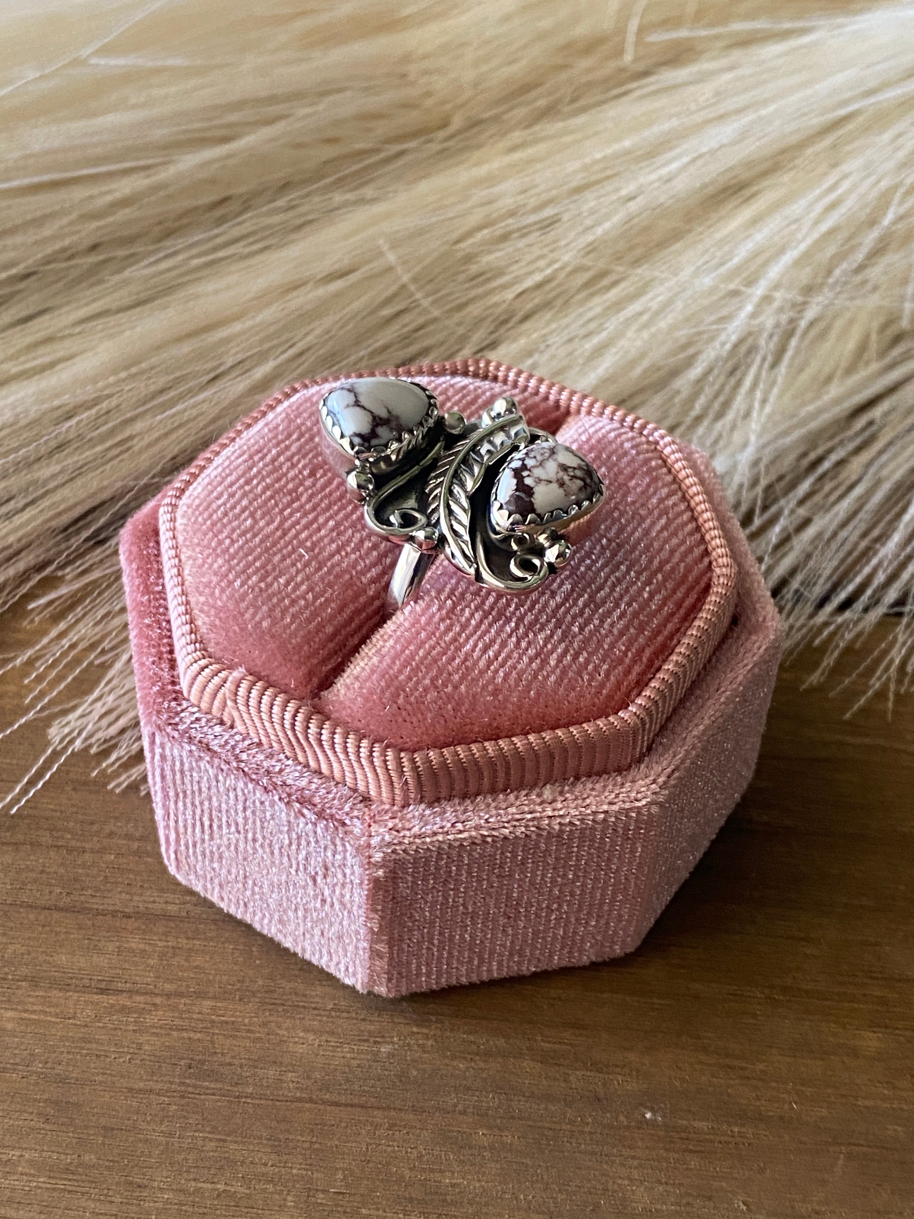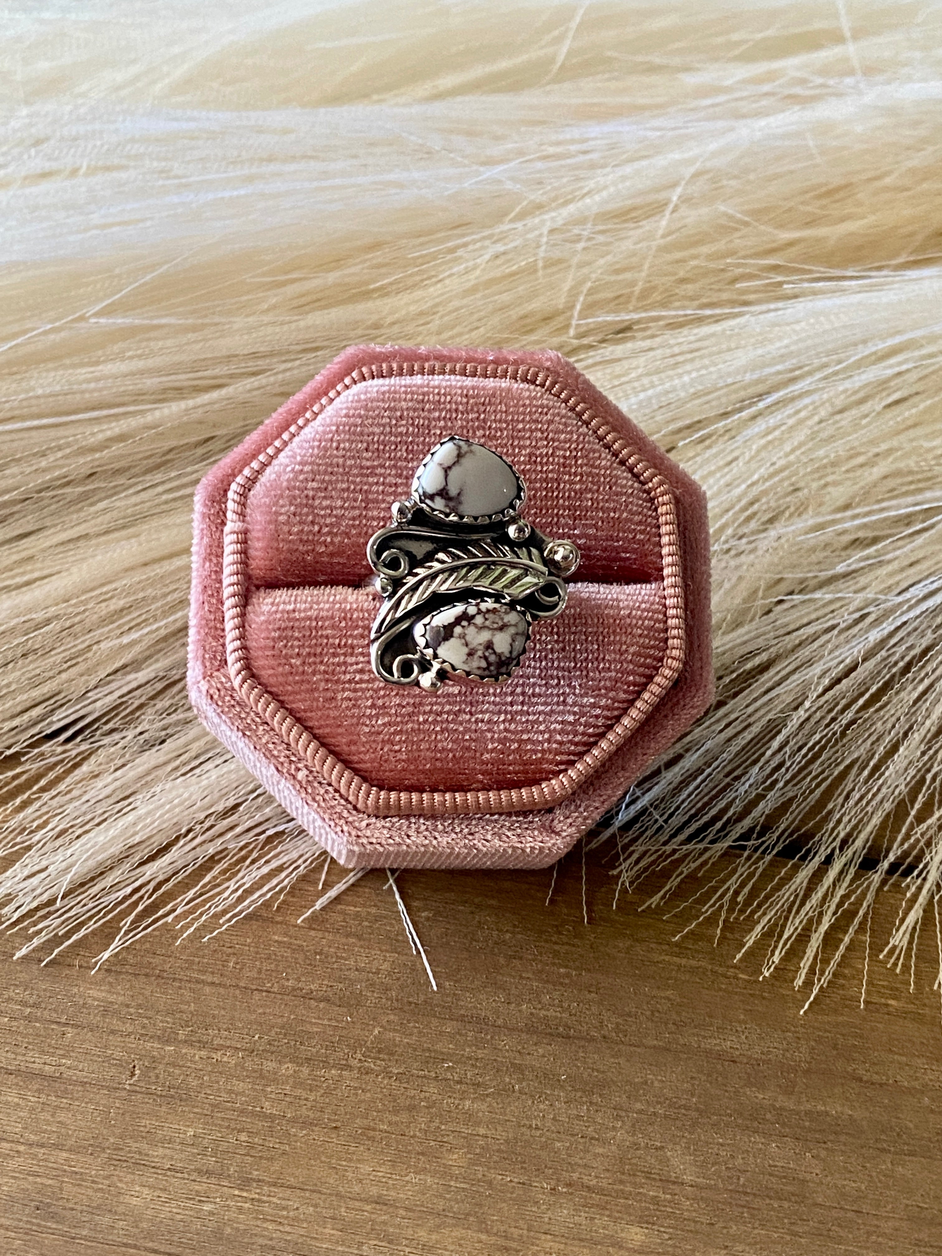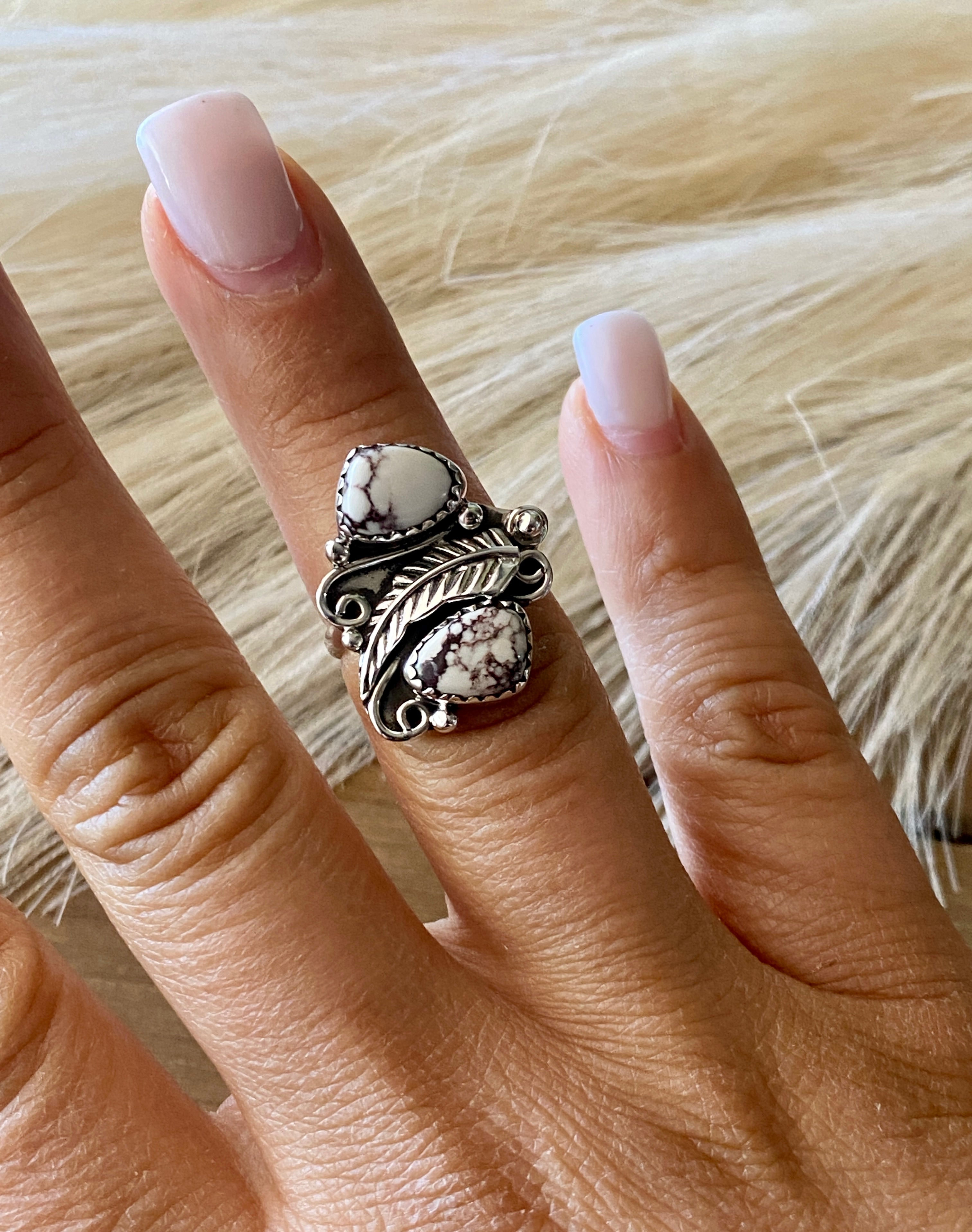 Beautiful feather ring. Southwest Handmade Wild Horse & Sterling Silver Ring Size 6. It measures 7/8 of an inch long and 3/4 of an inch wide. Signed by the artist and stamped sterling silver.