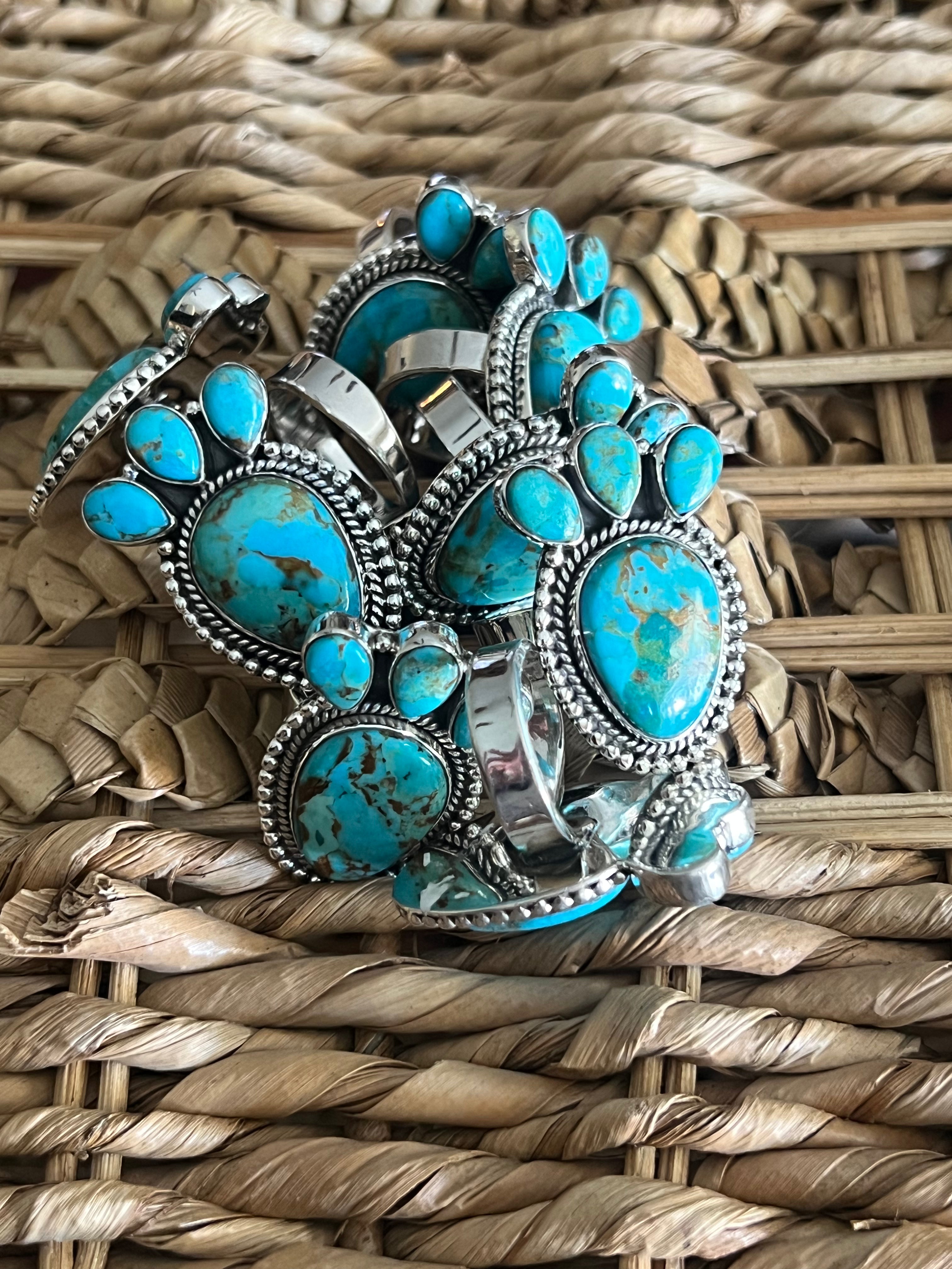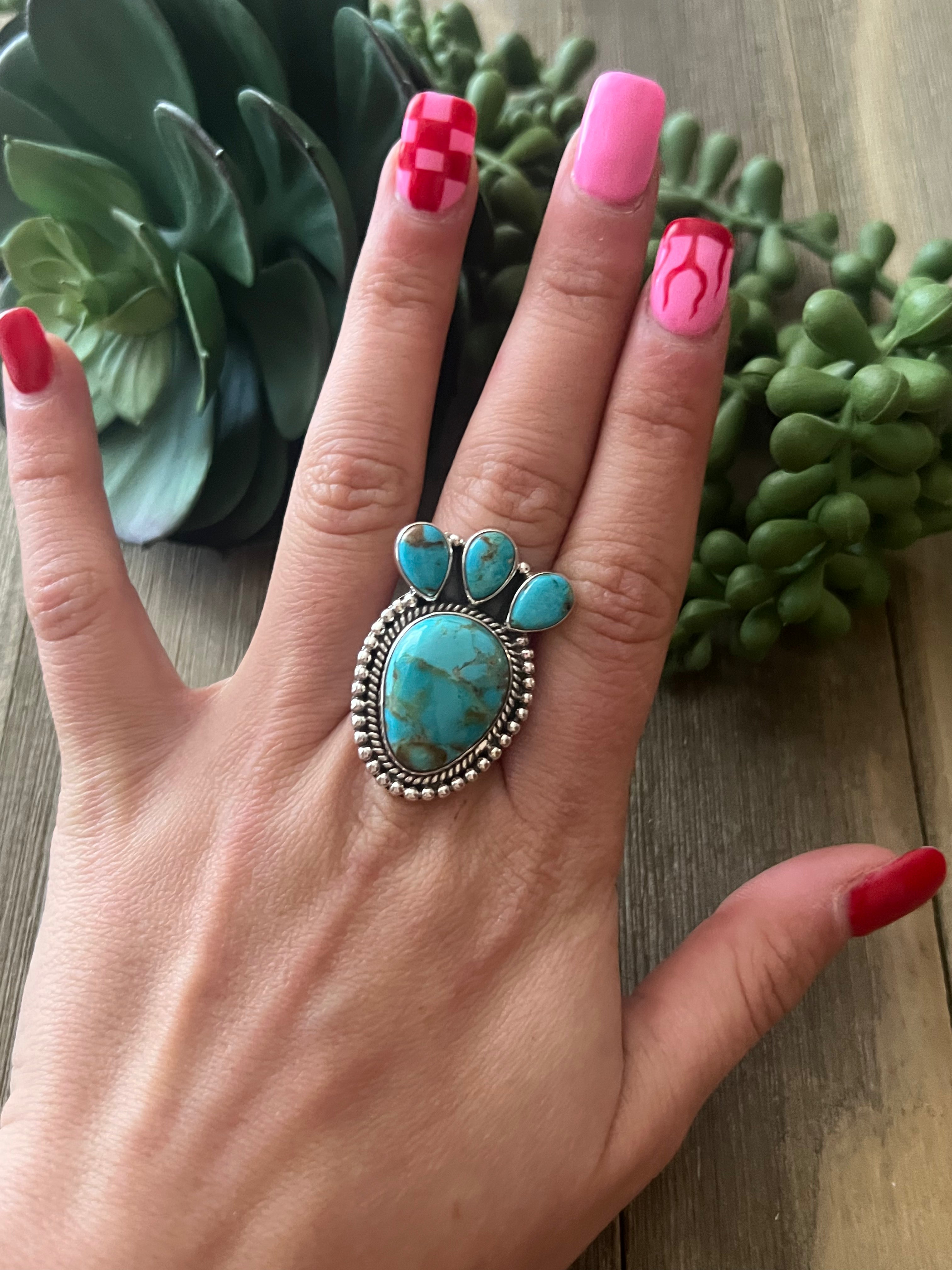 Southwest Kingman Turquoise & Sterling Silver Adjustable Ring