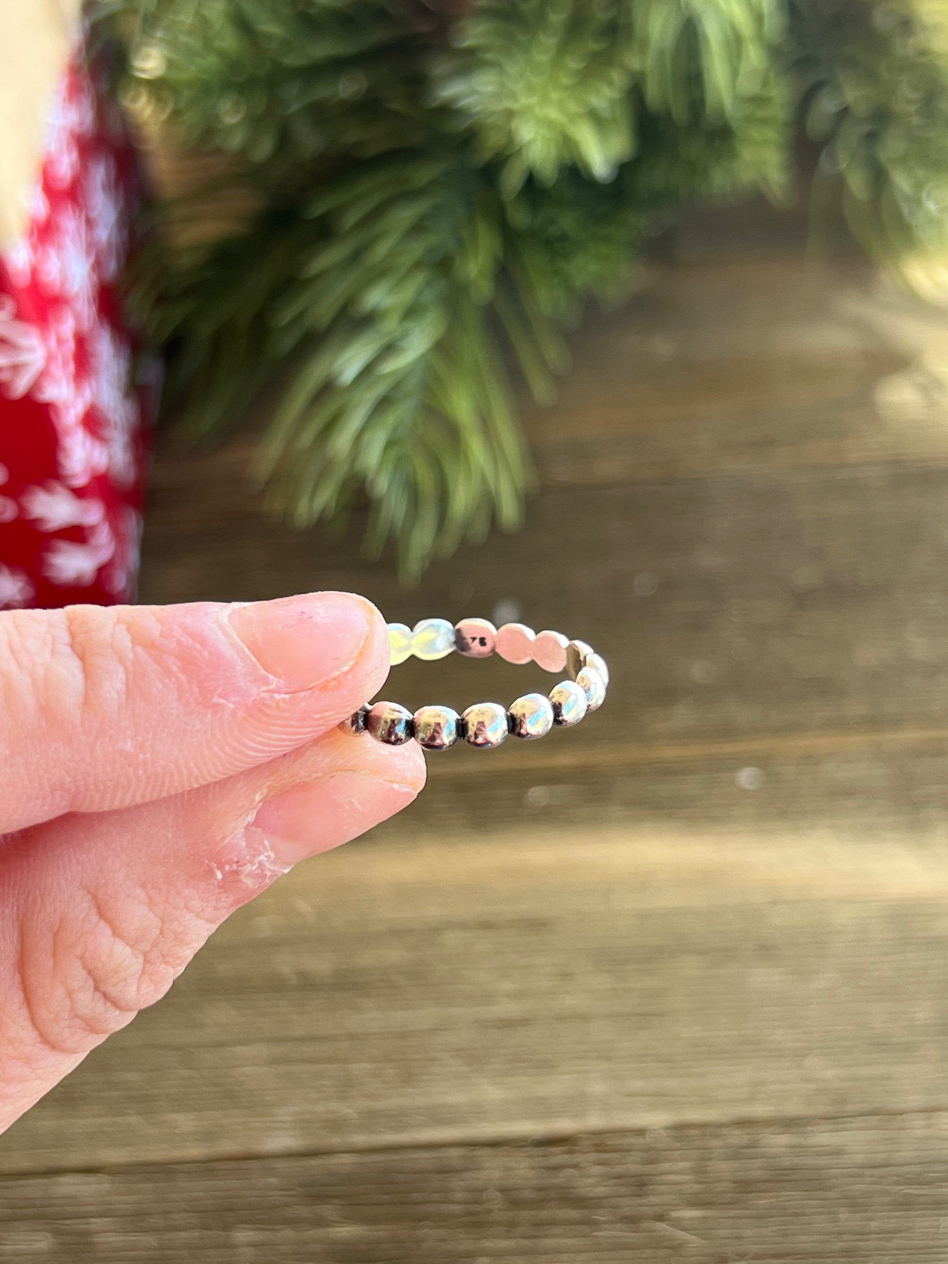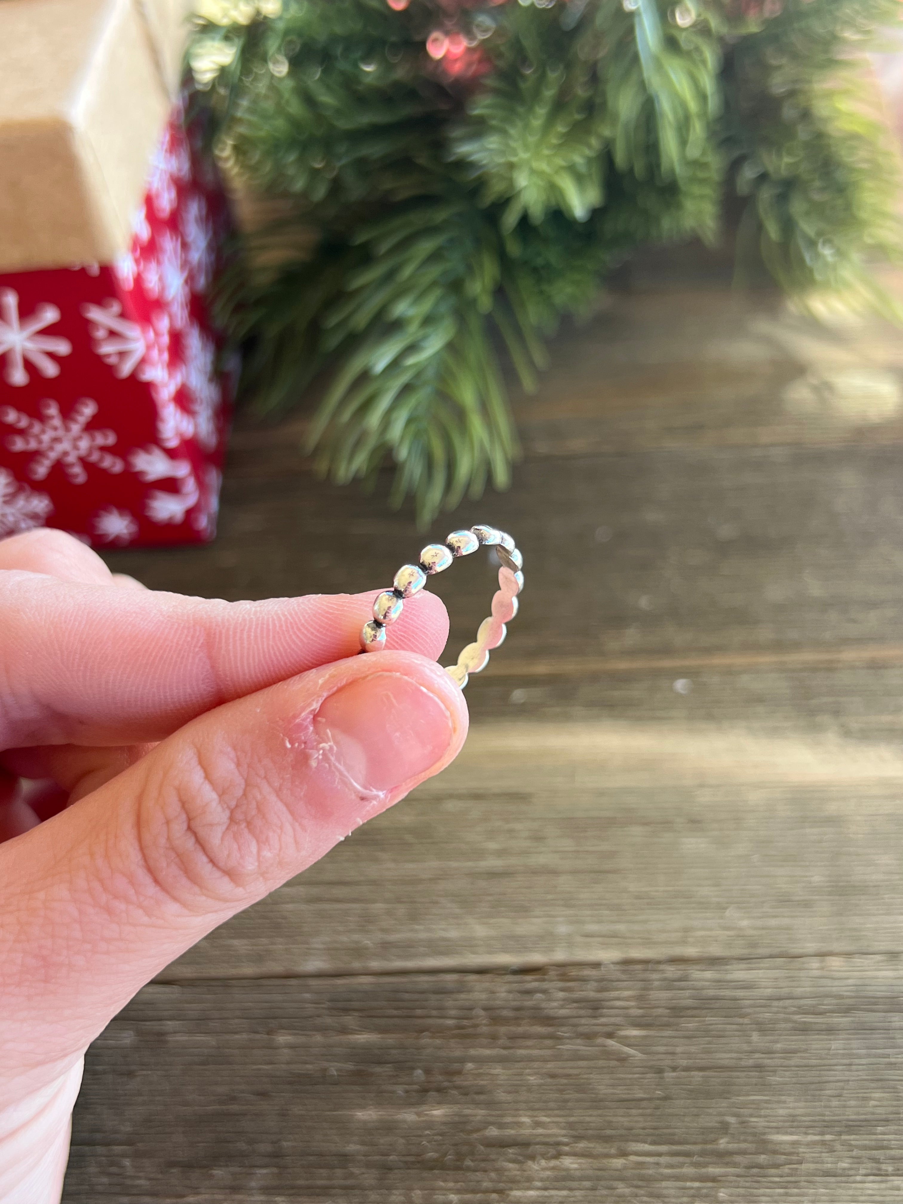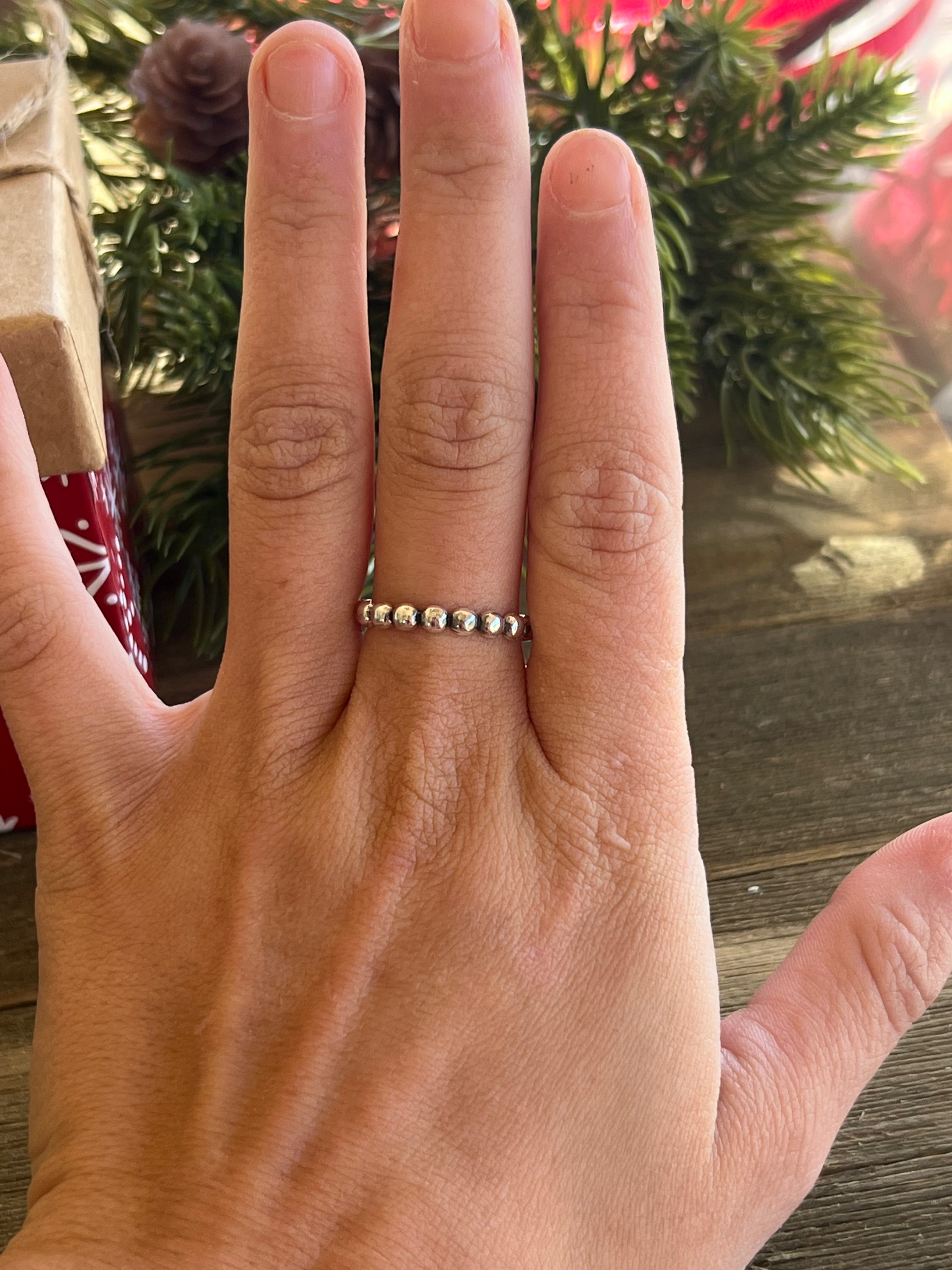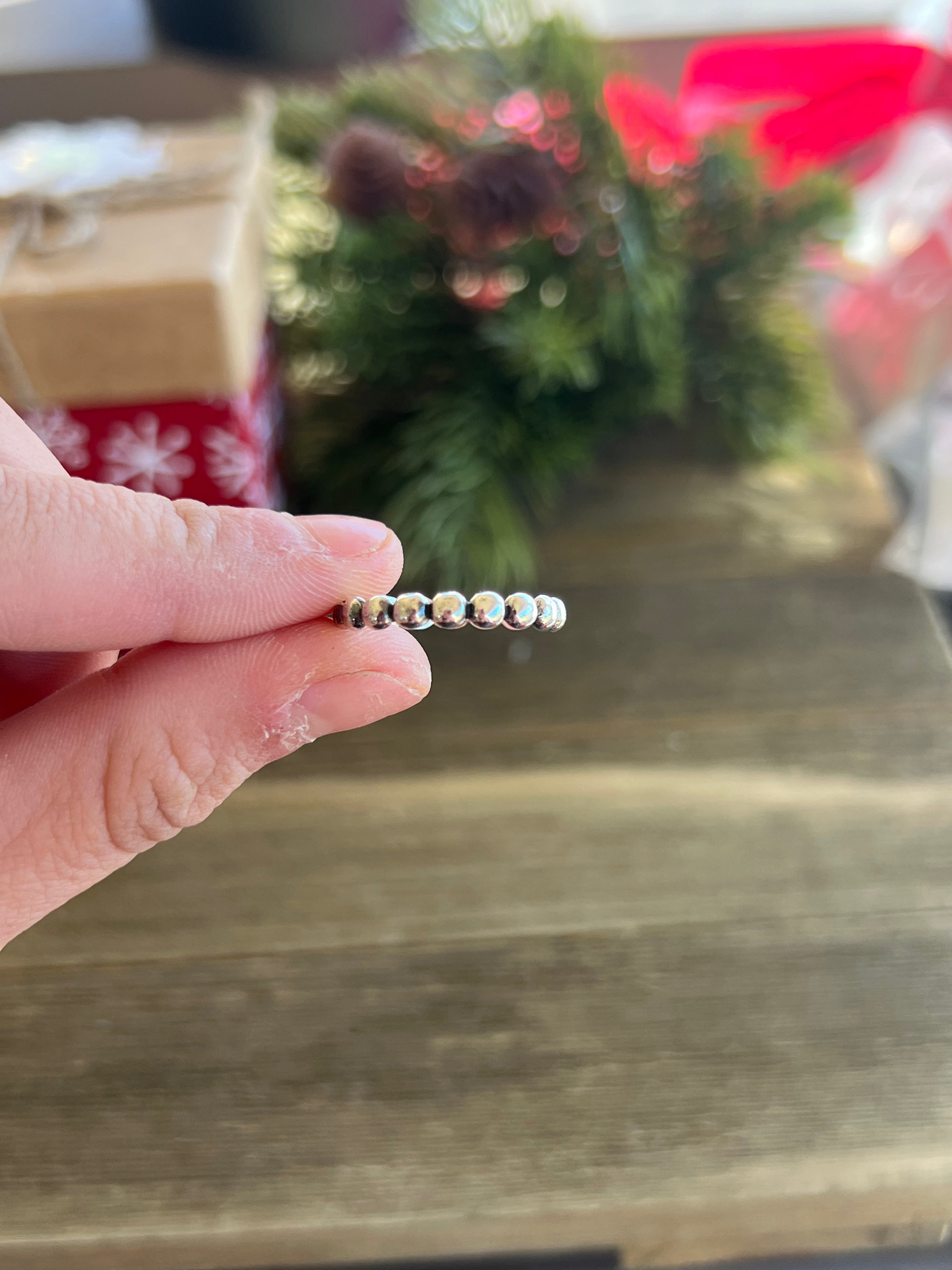Southwest Made 3 MM Sterling Silver Stacker Ring. It measures just under 1/8 of inch long.