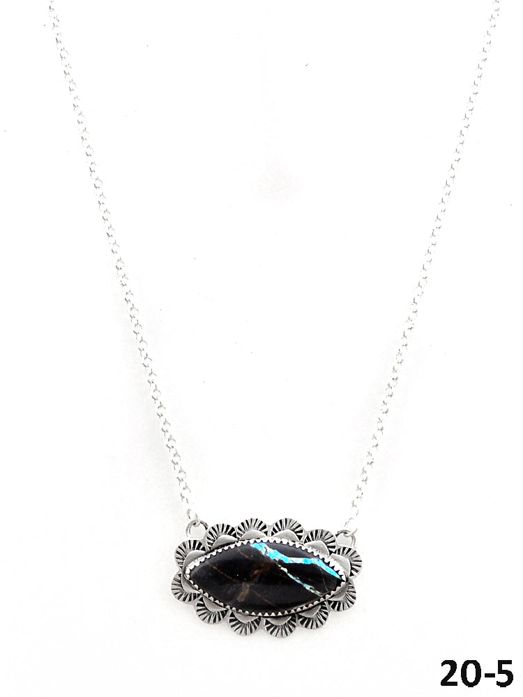 Southwest Made Black Jack Turquoise & Sterling Silver Necklace