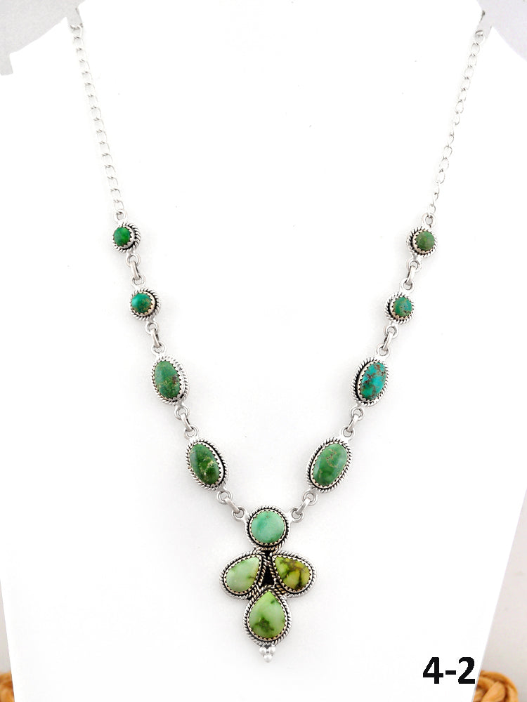 Southwest Made Emerald Valley Turquoise & Sterling Silver Necklace