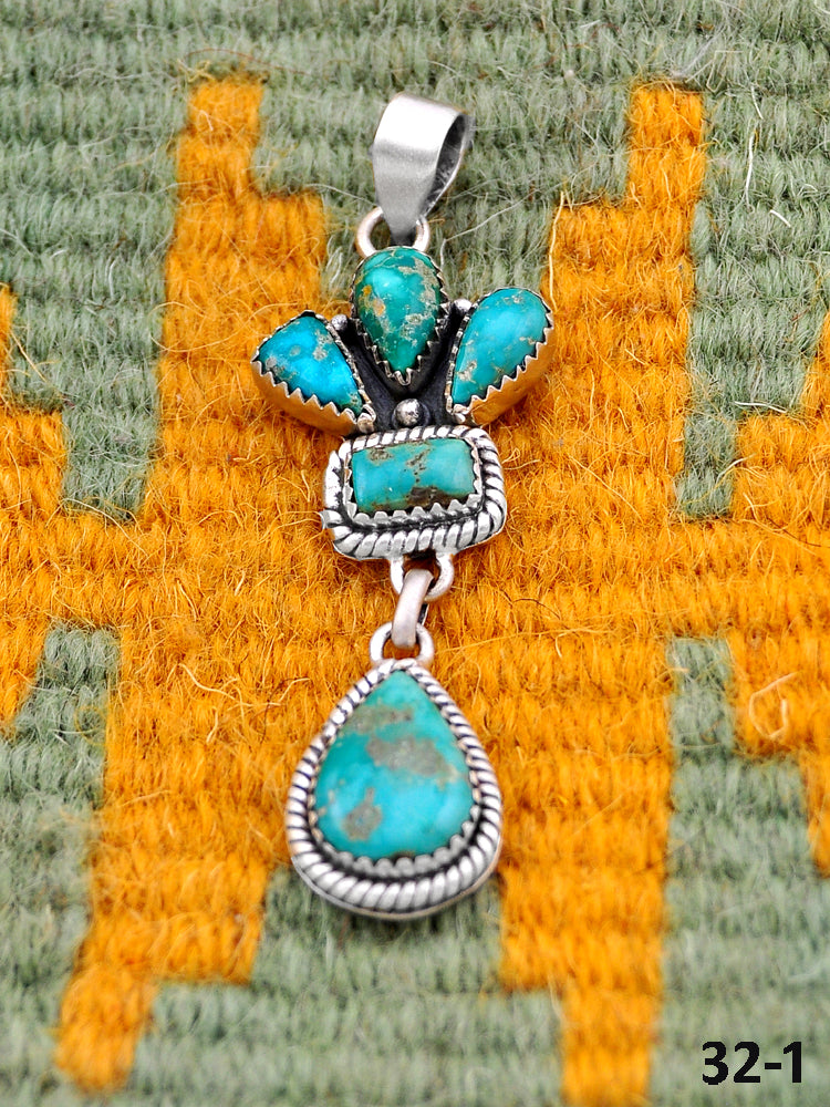 Southwest Made Emerald Valley Turquoise & Sterling Silver Pendant