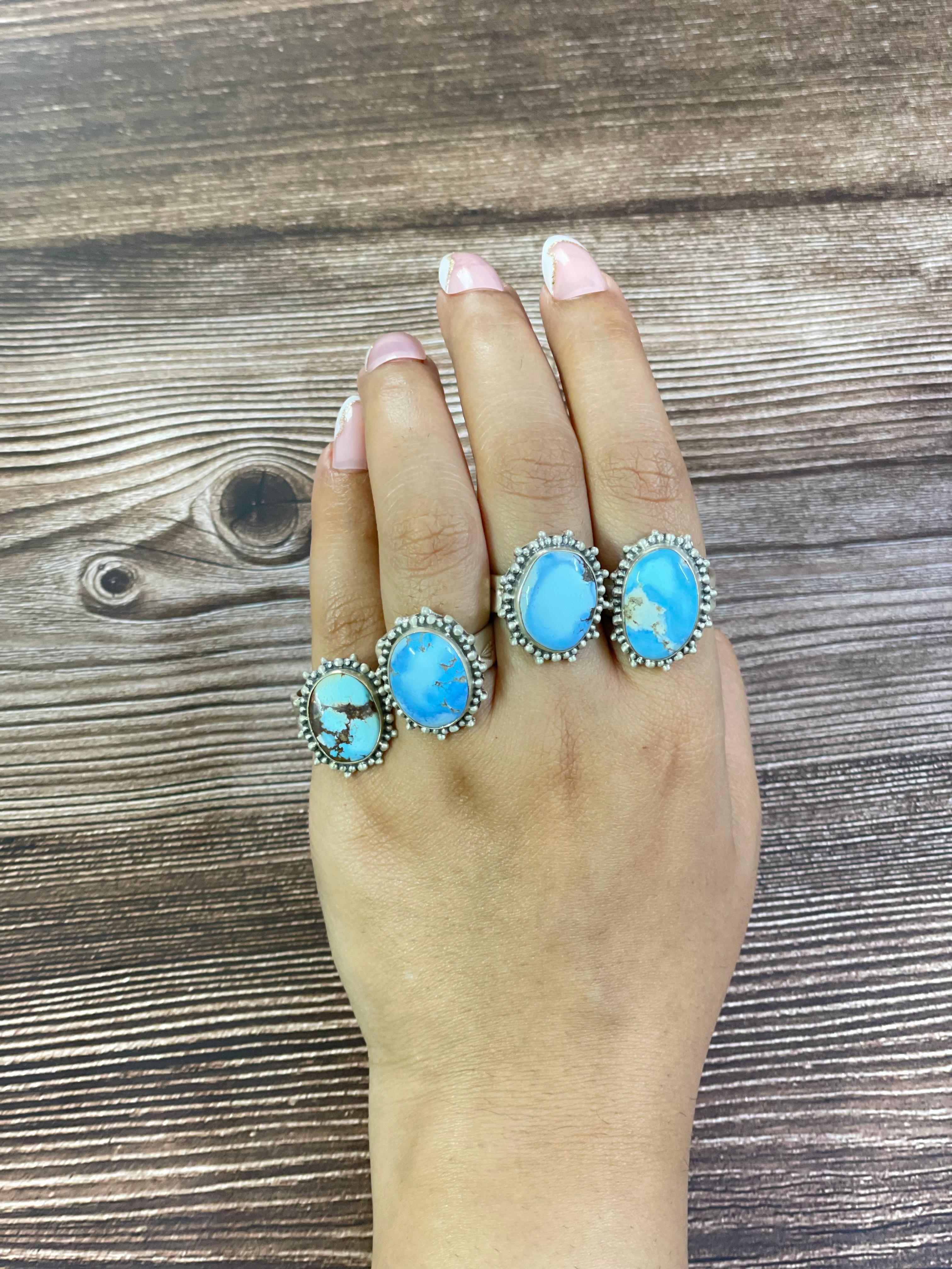 Southwest Made Golden Hills Turquoise & Sterling Silver Adjustable Ring