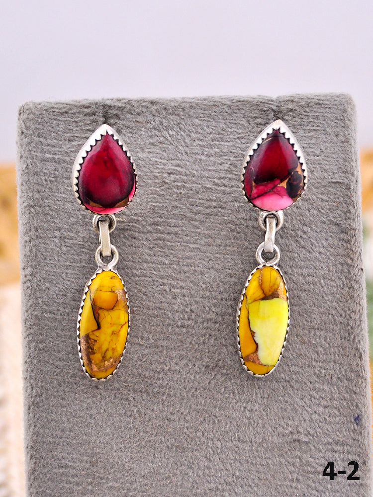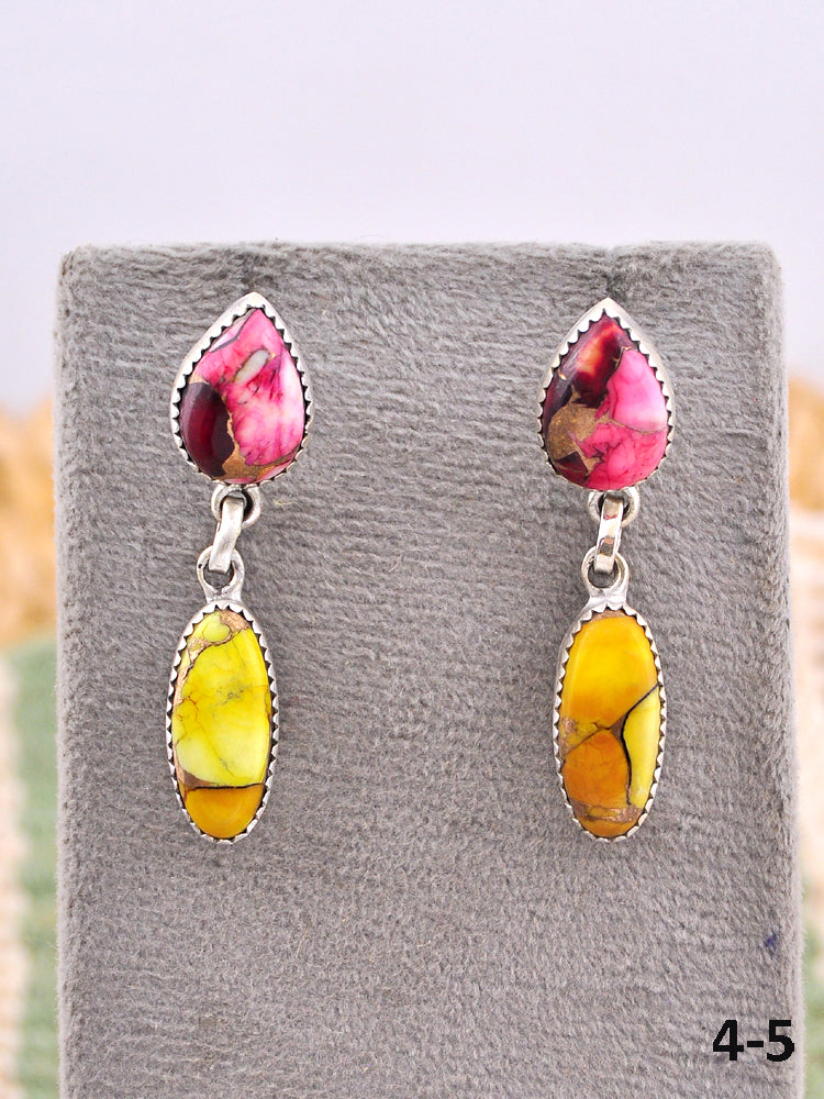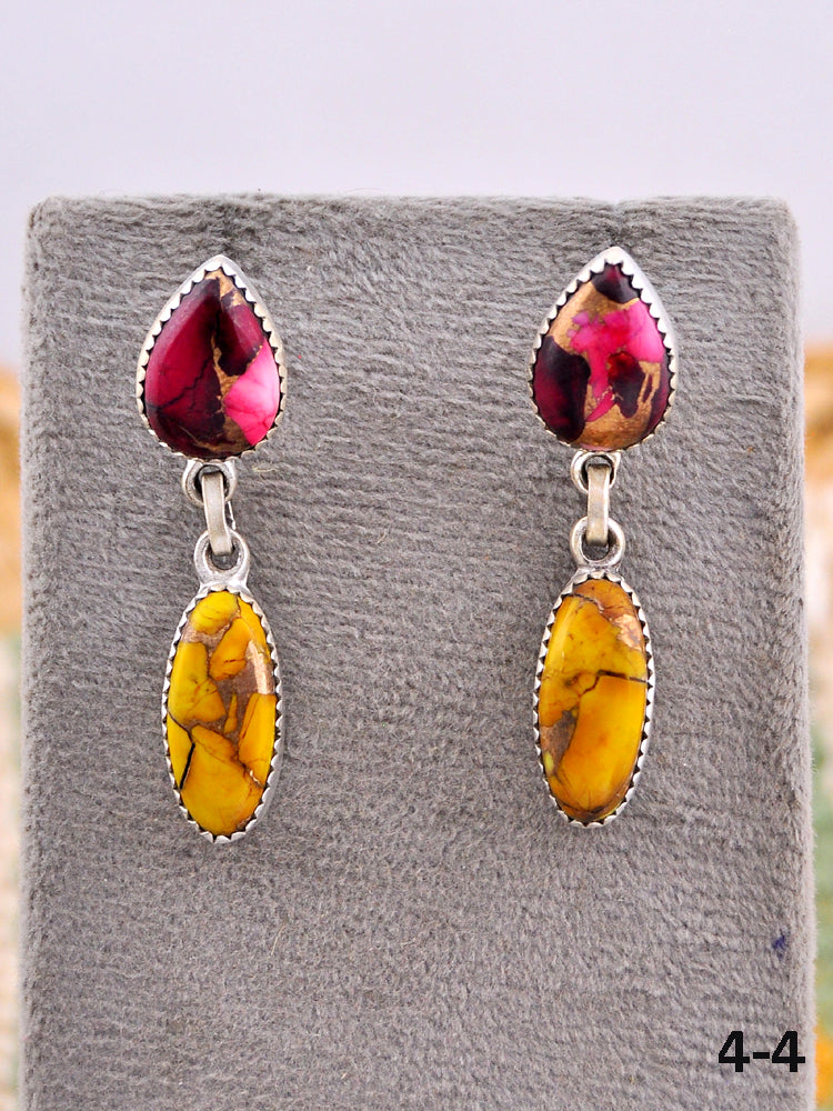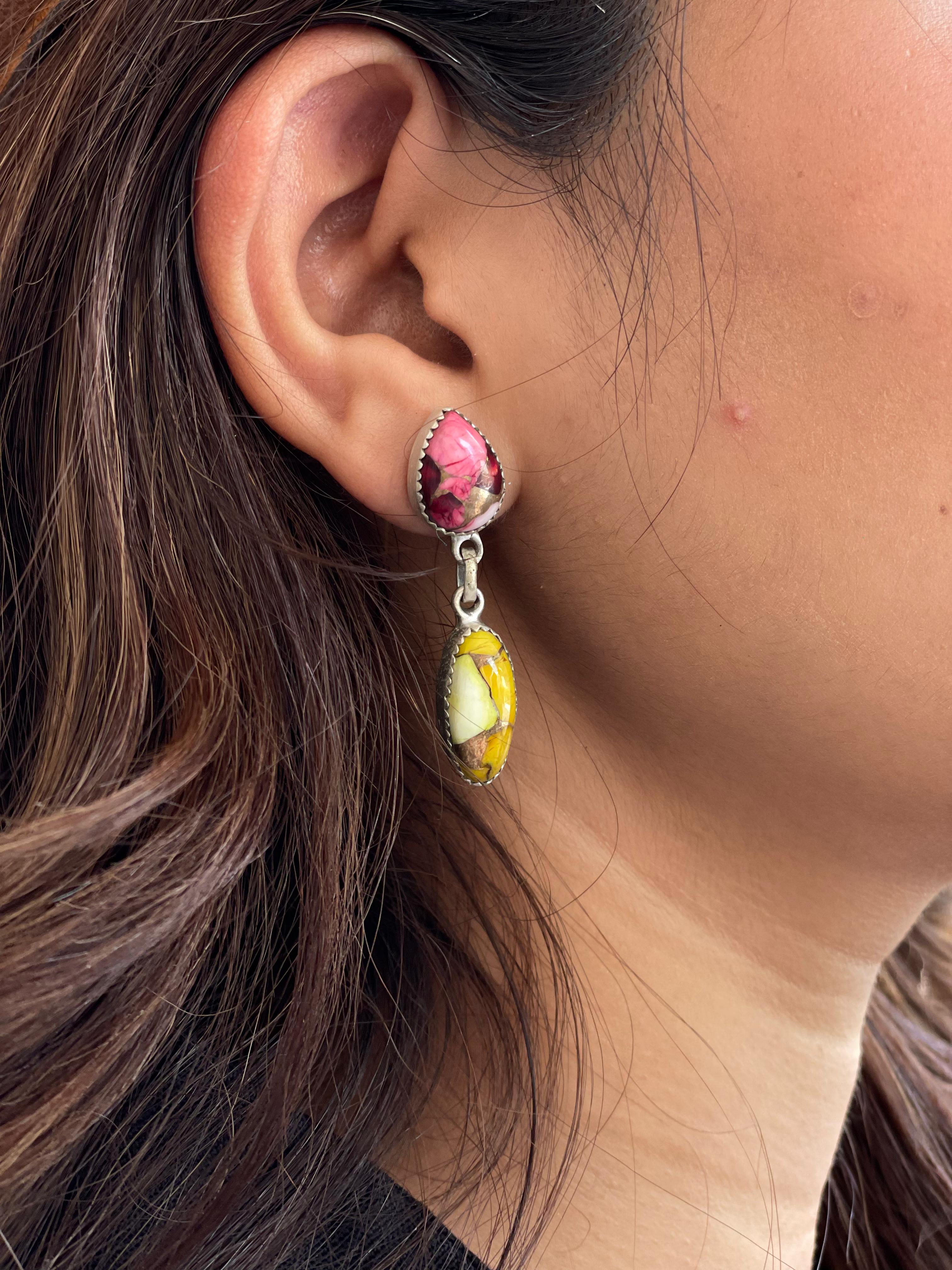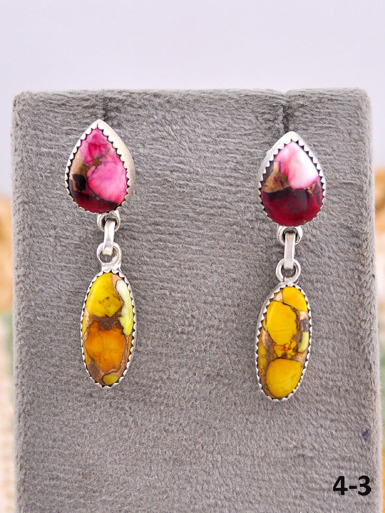Southwest Made Rose and Honey Dahlia & Sterling Silver Post Earrings. It measures 1 3/8 inches long and 3/8 of an inch wide. Stamped and signed.