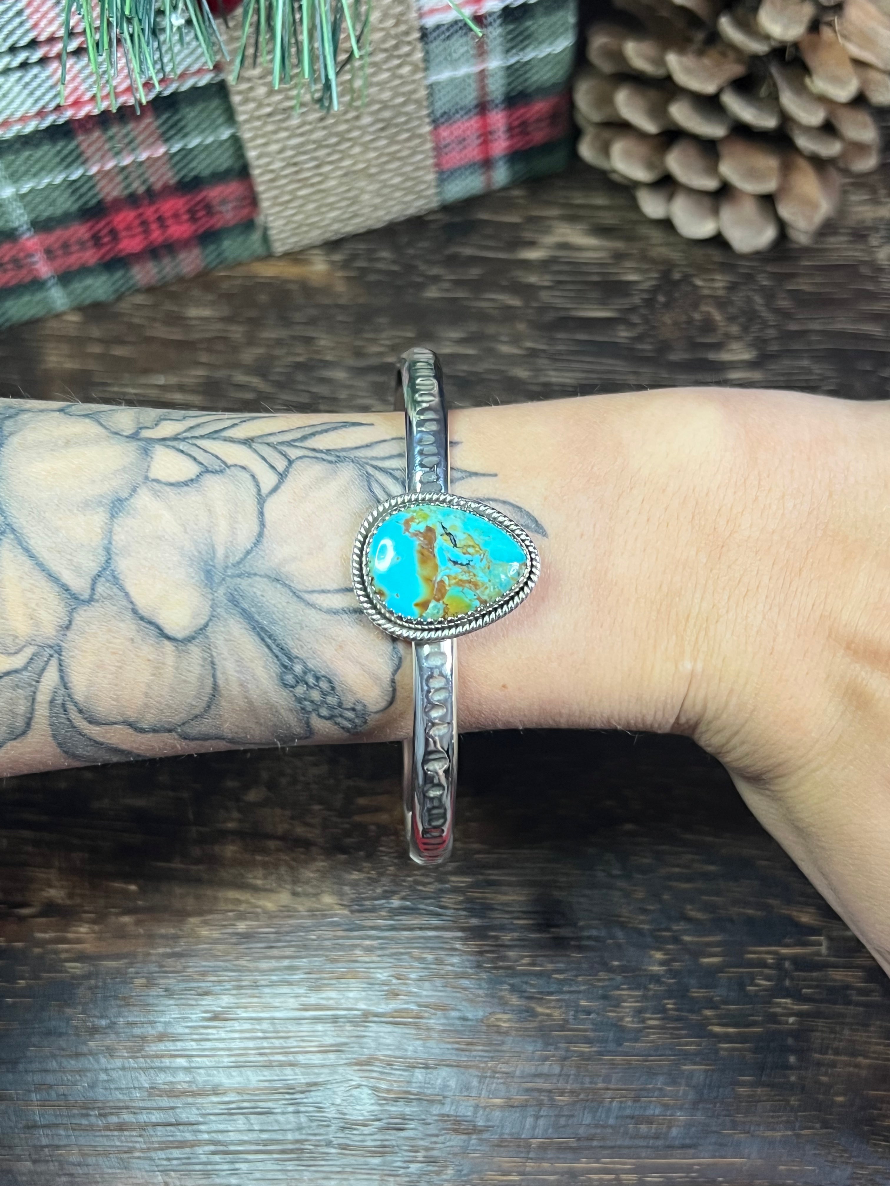 #9 Southwest Made Kingman Turquoise & Sterling Silver Cuff Bracelet